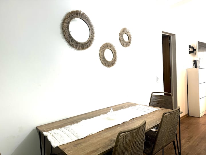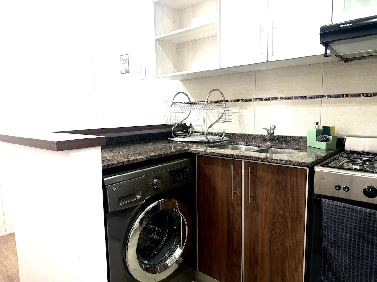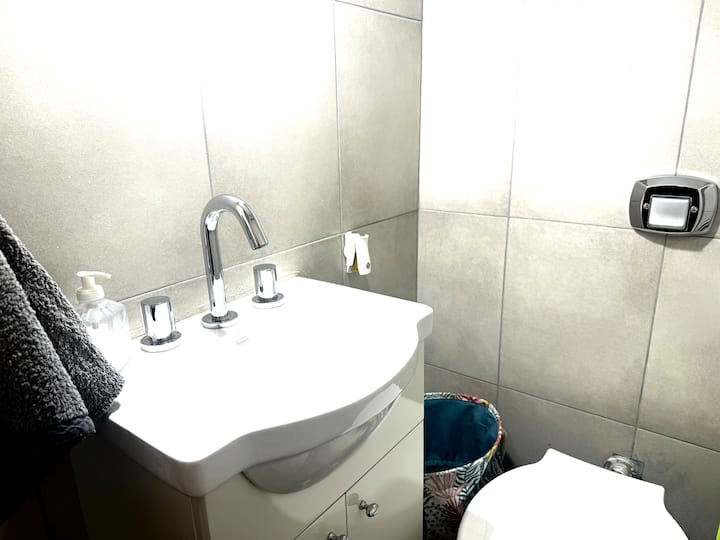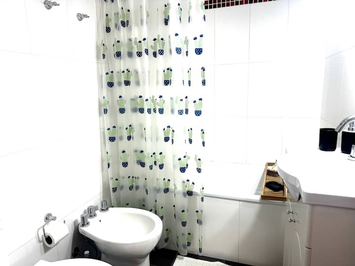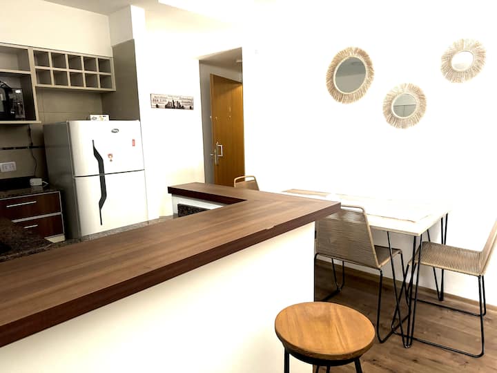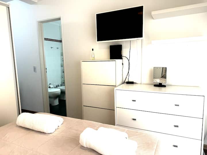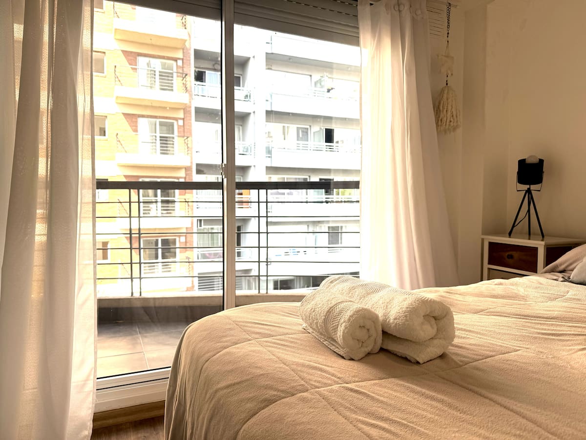 Fully equipped one-bedroom apartment in Buenos Aires, a few blocks from Movistar Arena. Includes a full kitchen, private bathroom, air conditioning, high-speed Wi‑Fi, and a bedroom setup for short stays. Location provides access to public transport, shops and dining.