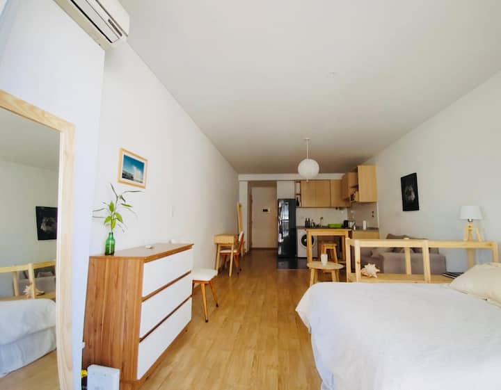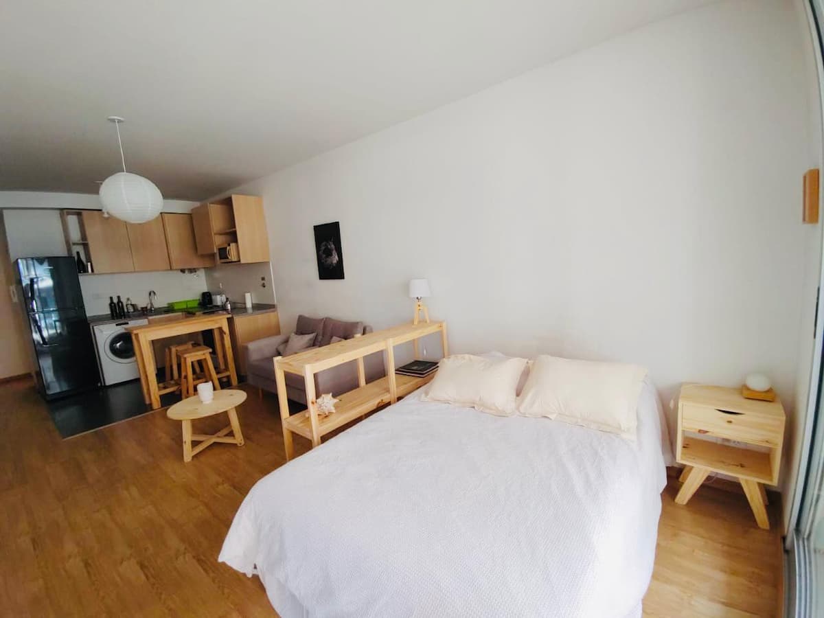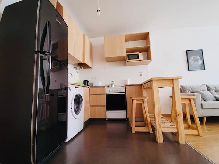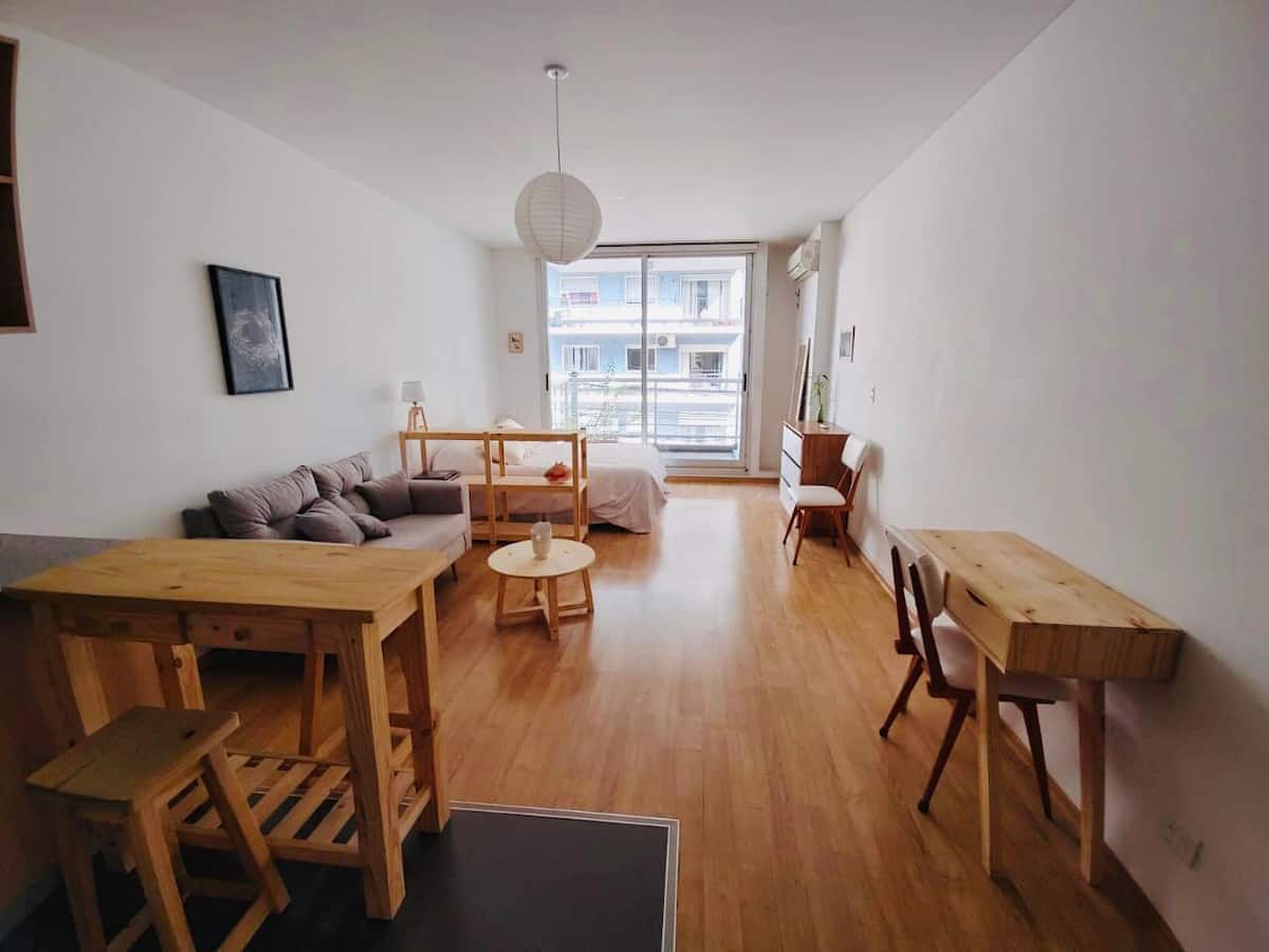 One-bedroom apartment with a living room, a dedicated work space, a full kitchen and a bathroom. Includes a large balcony and air conditioning. In Villa Crespo, about 5 blocks from Palermo.
