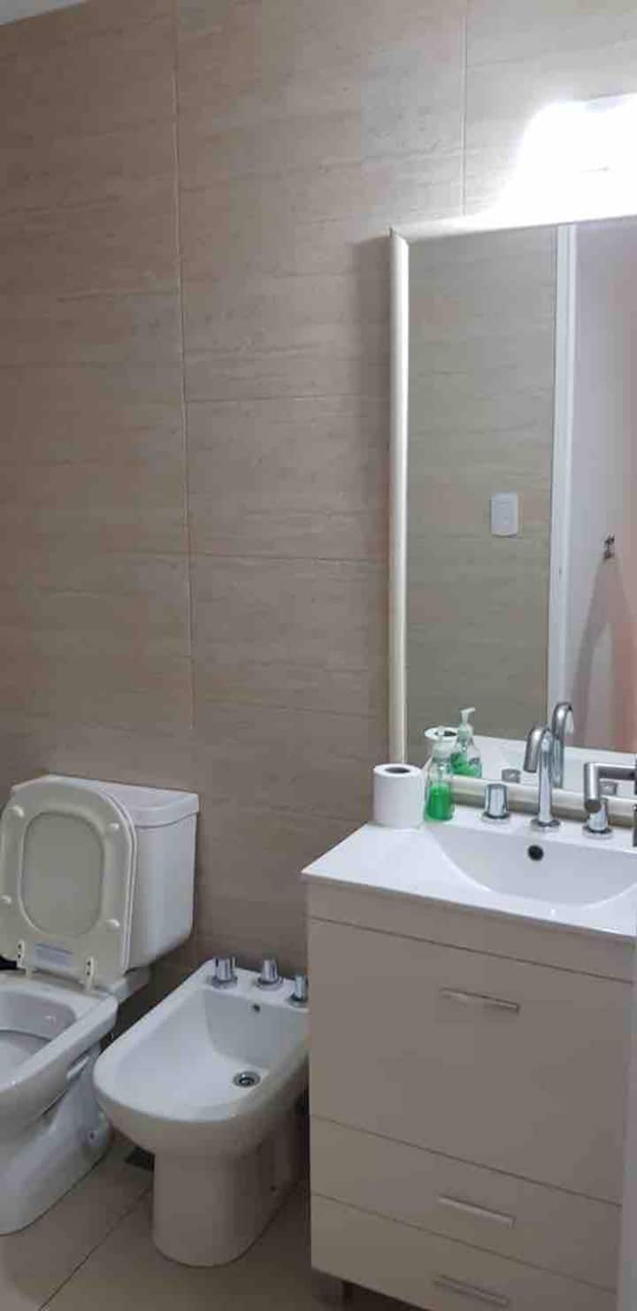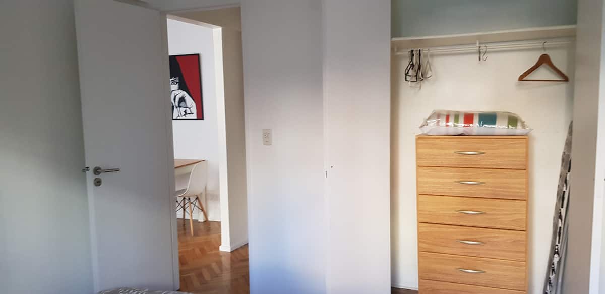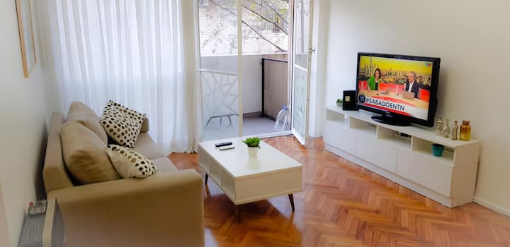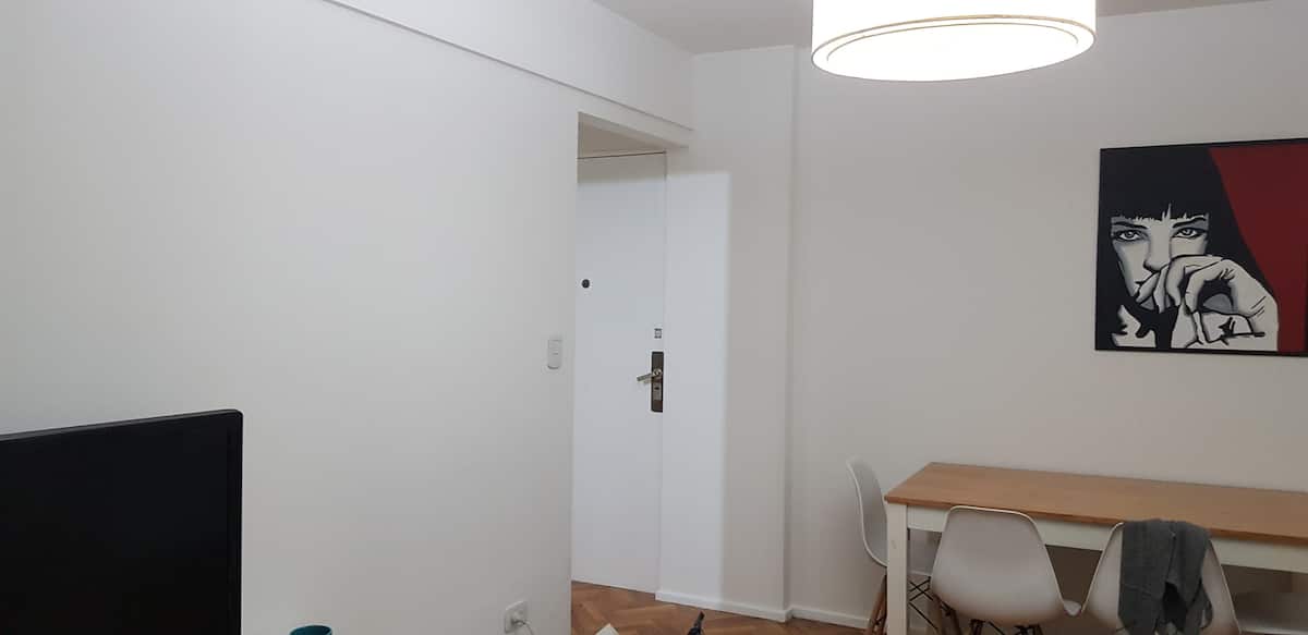 Apartment in central Villa Crespo, 3 blocks from Parque Centenario and 20 blocks from Palermo Soho. It has a fully equipped kitchen, a bathroom, a bedroom with a double bed and air conditioning, and a living room with a television and air conditioning. Entire apartment access.