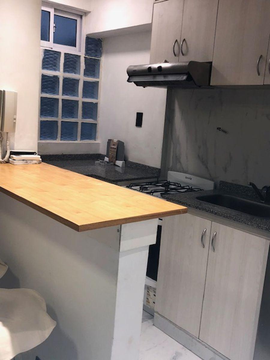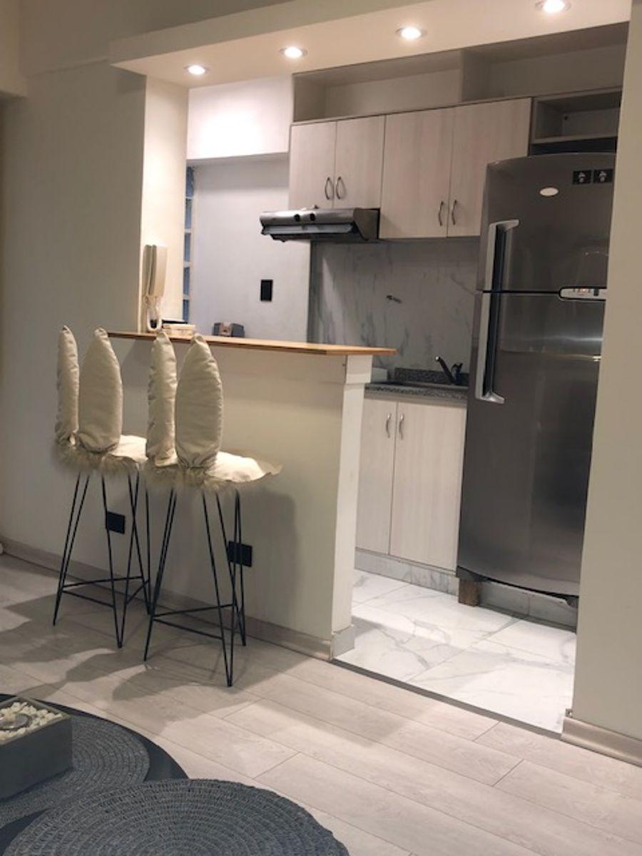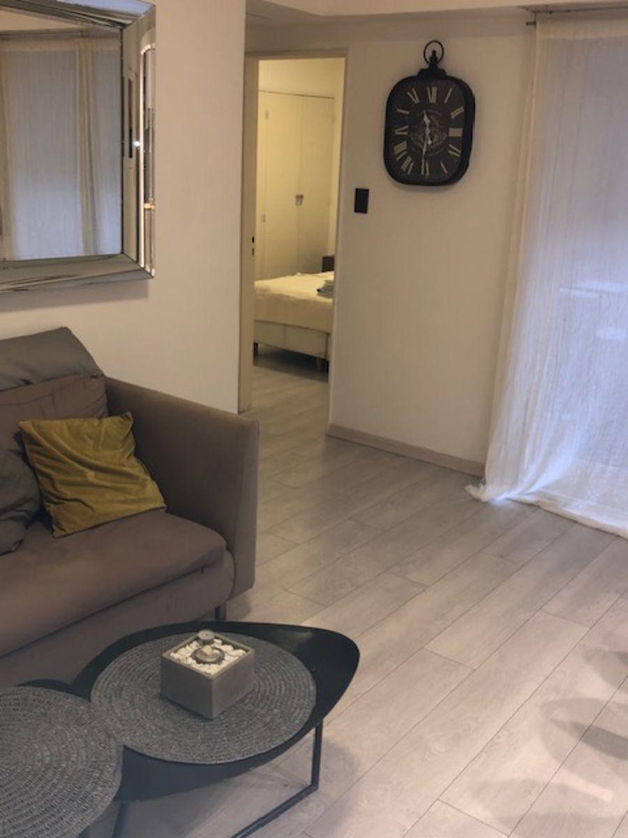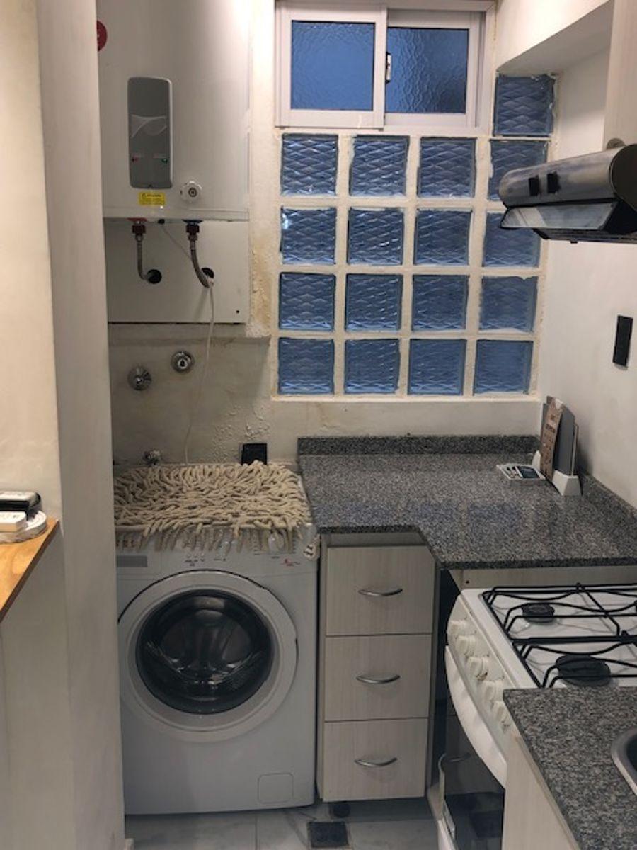 Two-room apartment on the first floor in Villa Crespo with a French balcony. Furnished and equipped with a living-dining room with air conditioning (hot and cold), American-style kitchen with fridge, oven and gas hob, and a clothes washer; the bedroom has a double bed, a large wardrobe, air conditioning and a TV. Bathroom with shower, WiFi and cable. The rental price includes ABL, AYSA, natural gas and internet. Temporary rental with immediate availability; maximum capacity for 2 people and no p