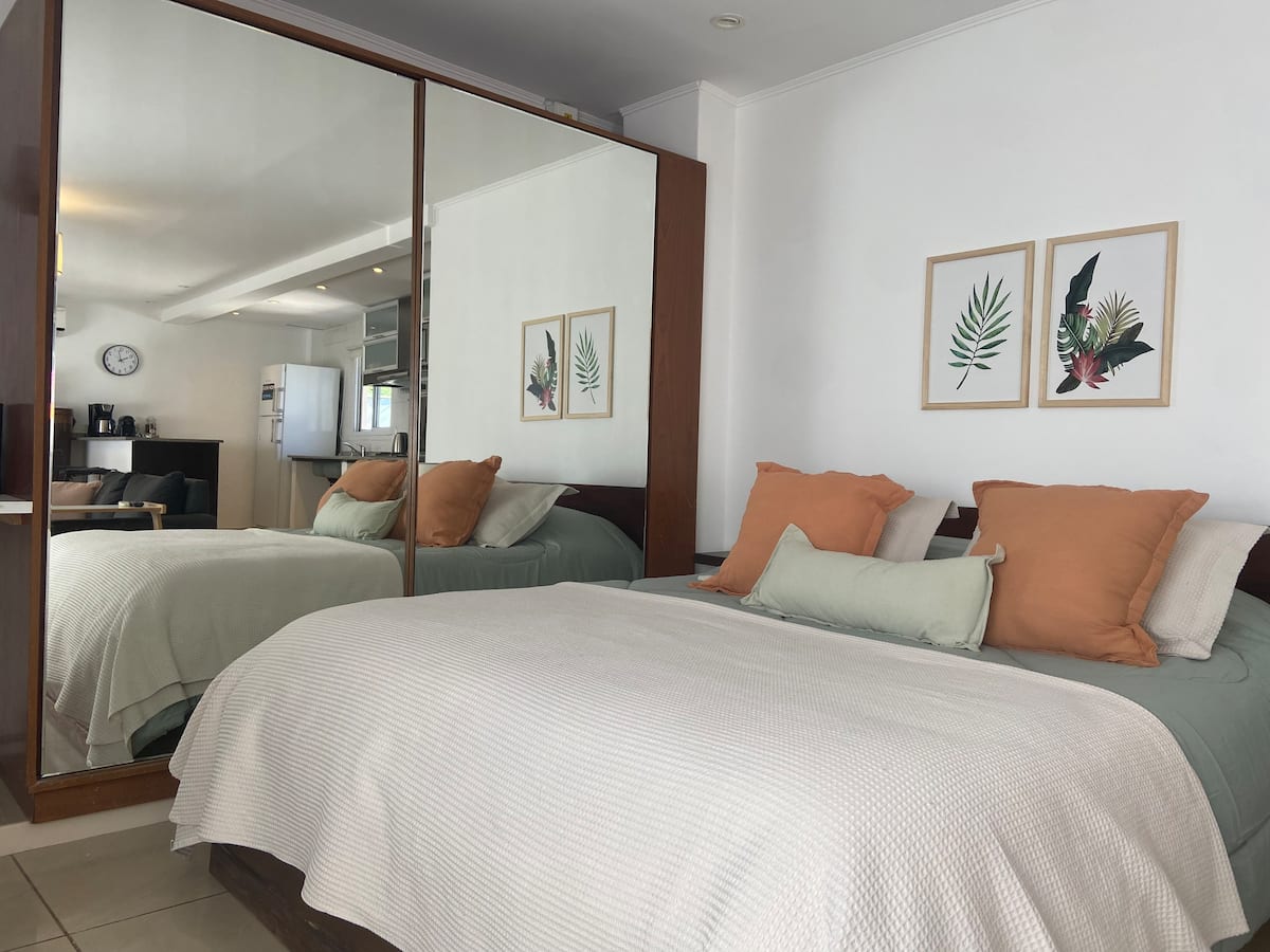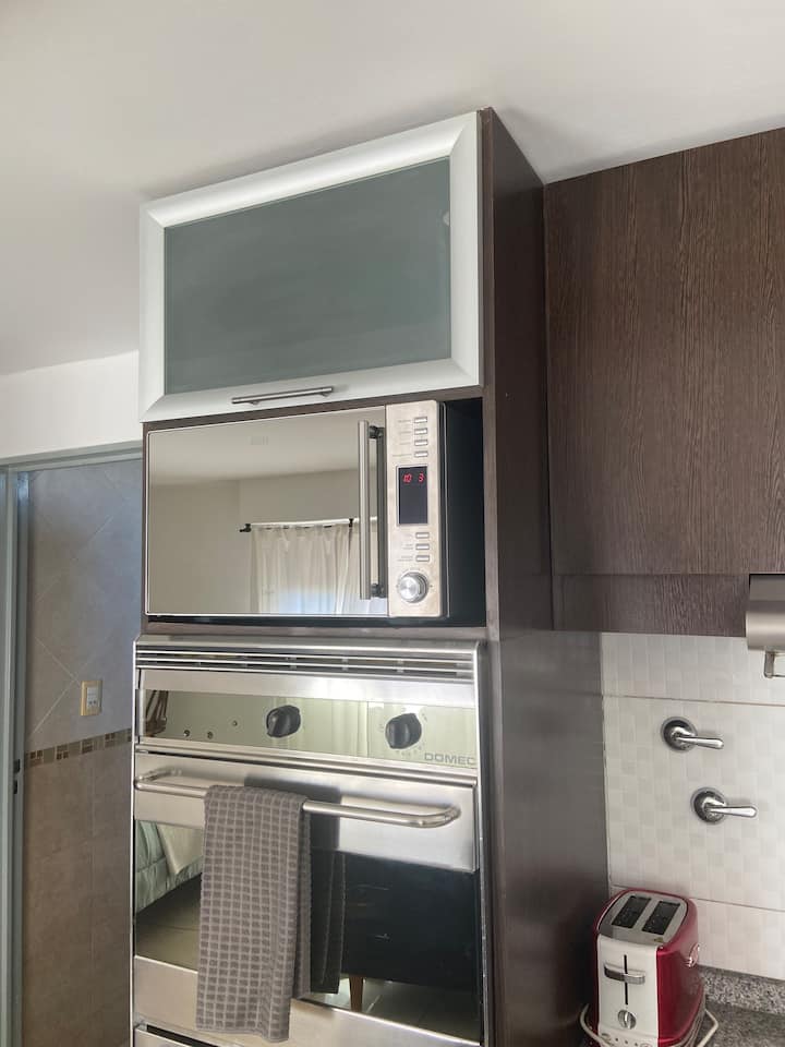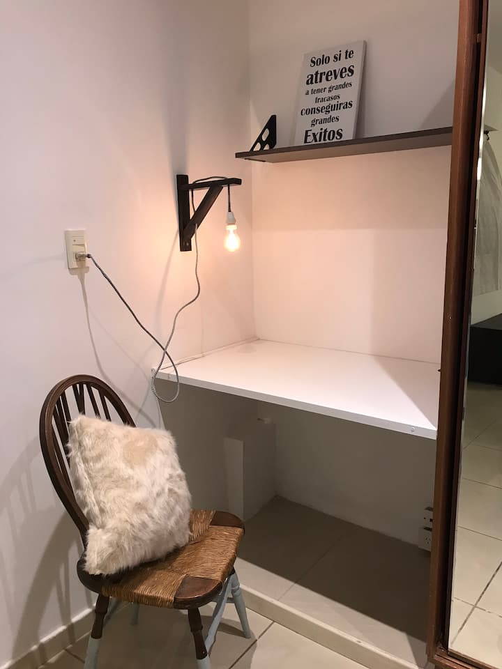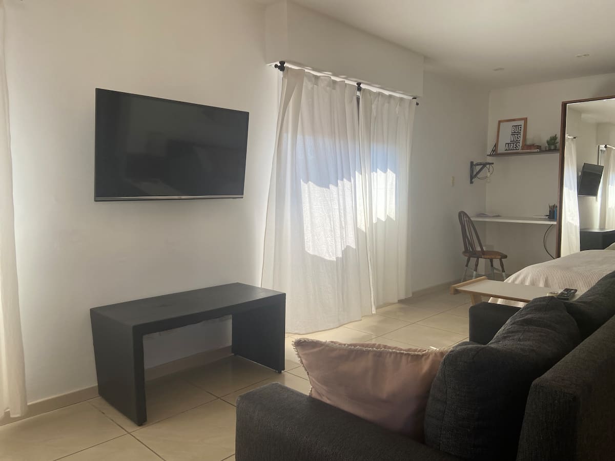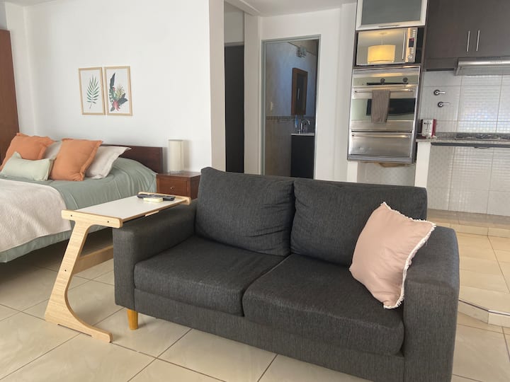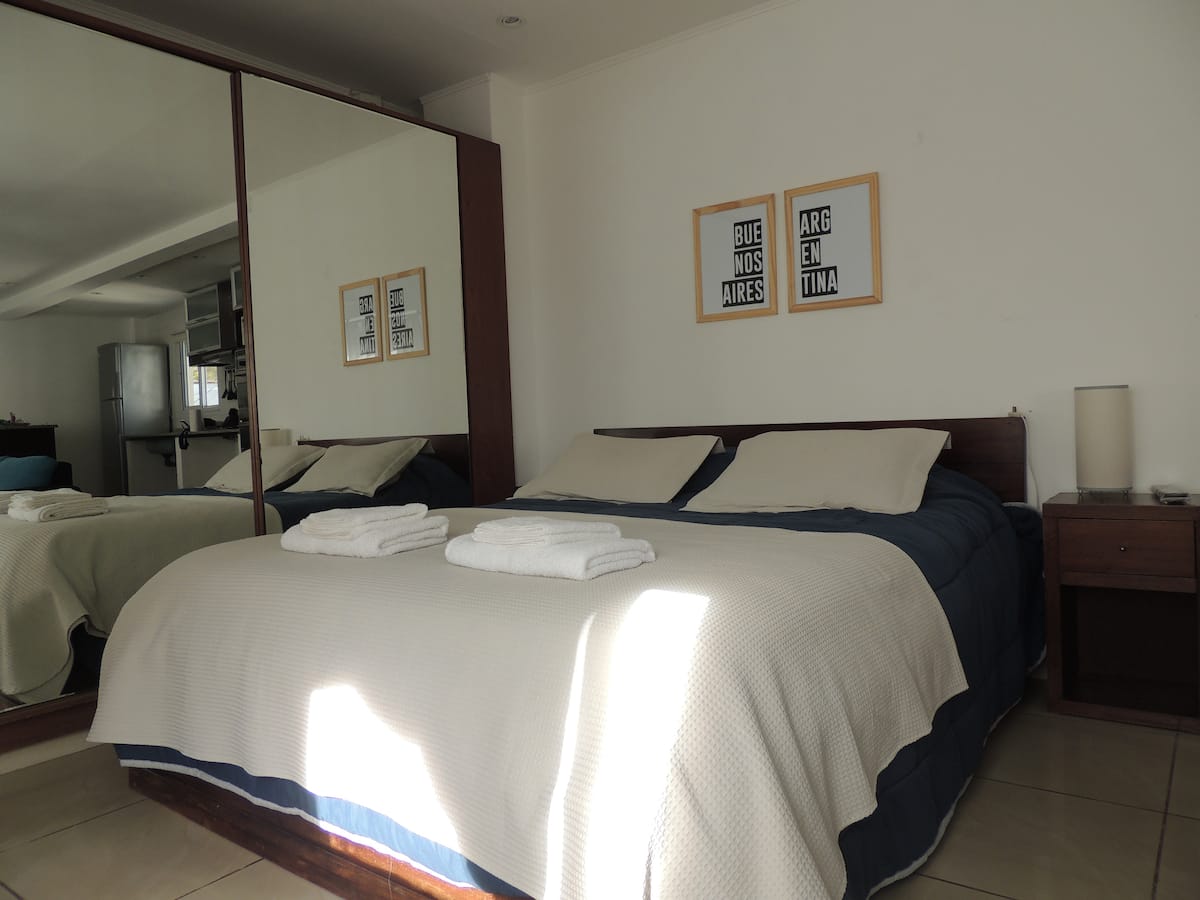 Fully equipped furnished studio in the Palermo Queen area of Villa Crespo. Wi-Fi (300 MB) and a Smart TV with Netflix are provided. Kitchen includes a filter coffee maker and Nespresso, plus a toaster and blender, and the bathroom includes toiletries with a hair dryer and hair straightener; mosquito nets are installed on all windows.