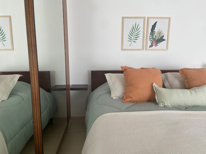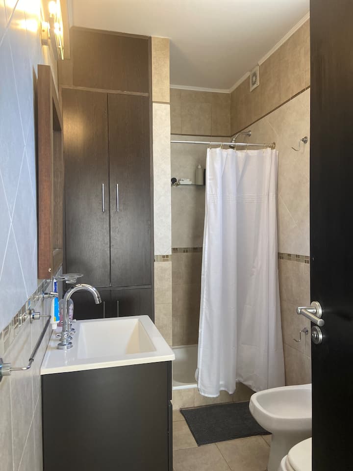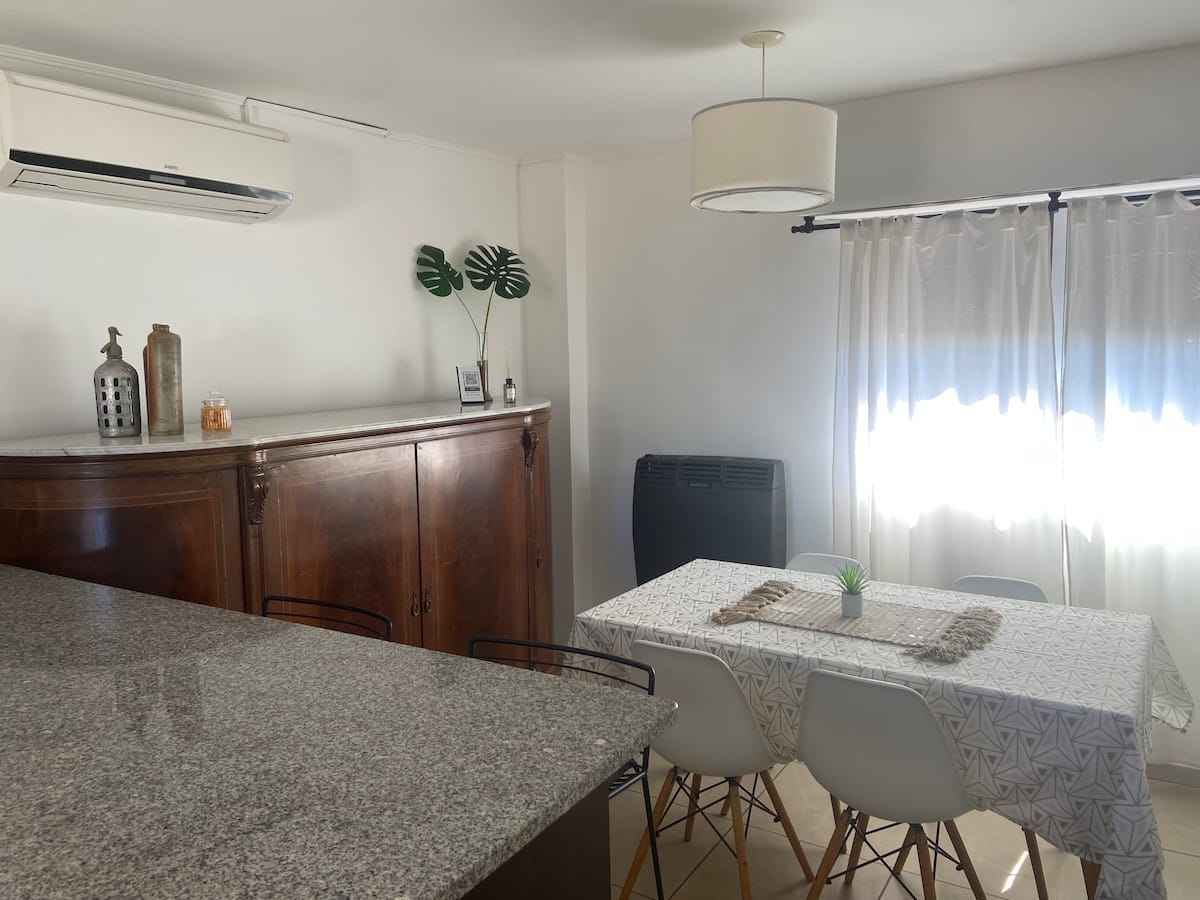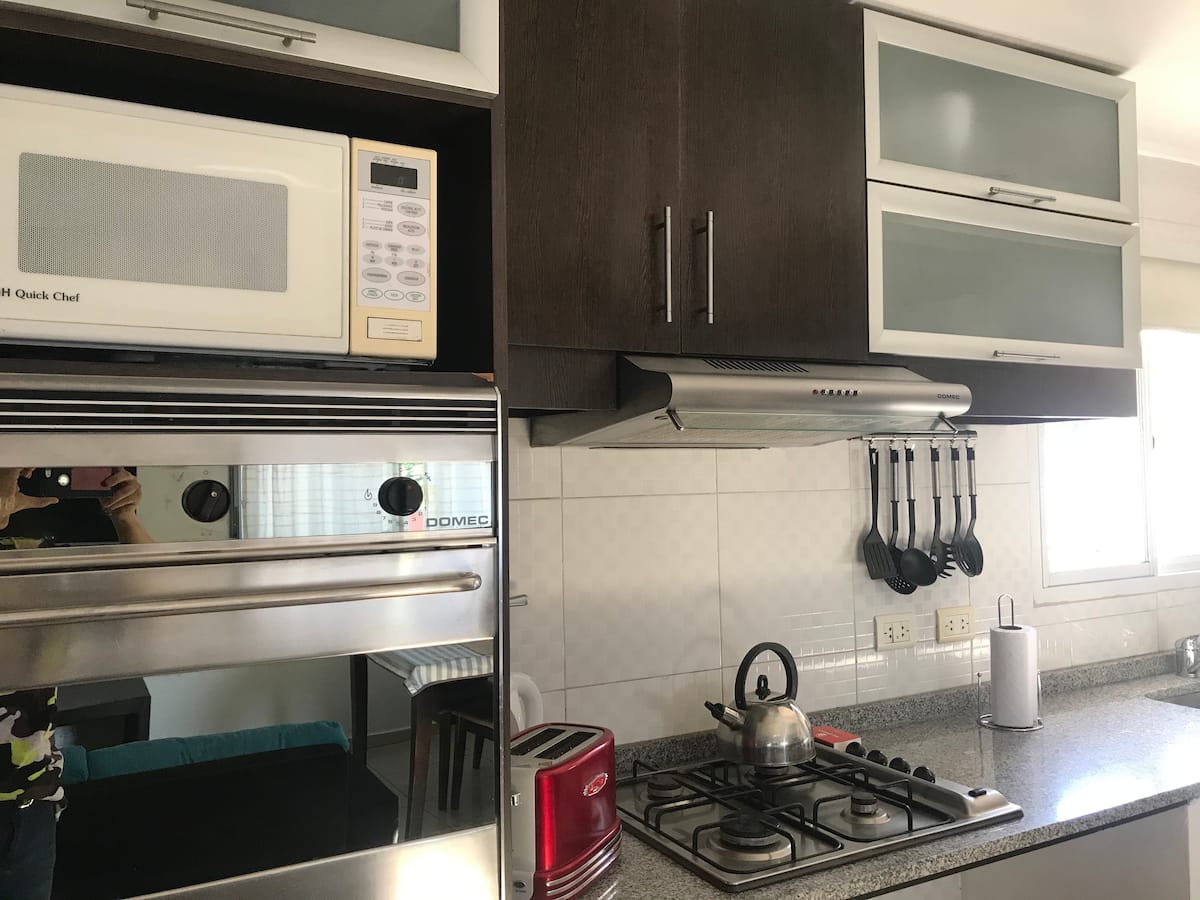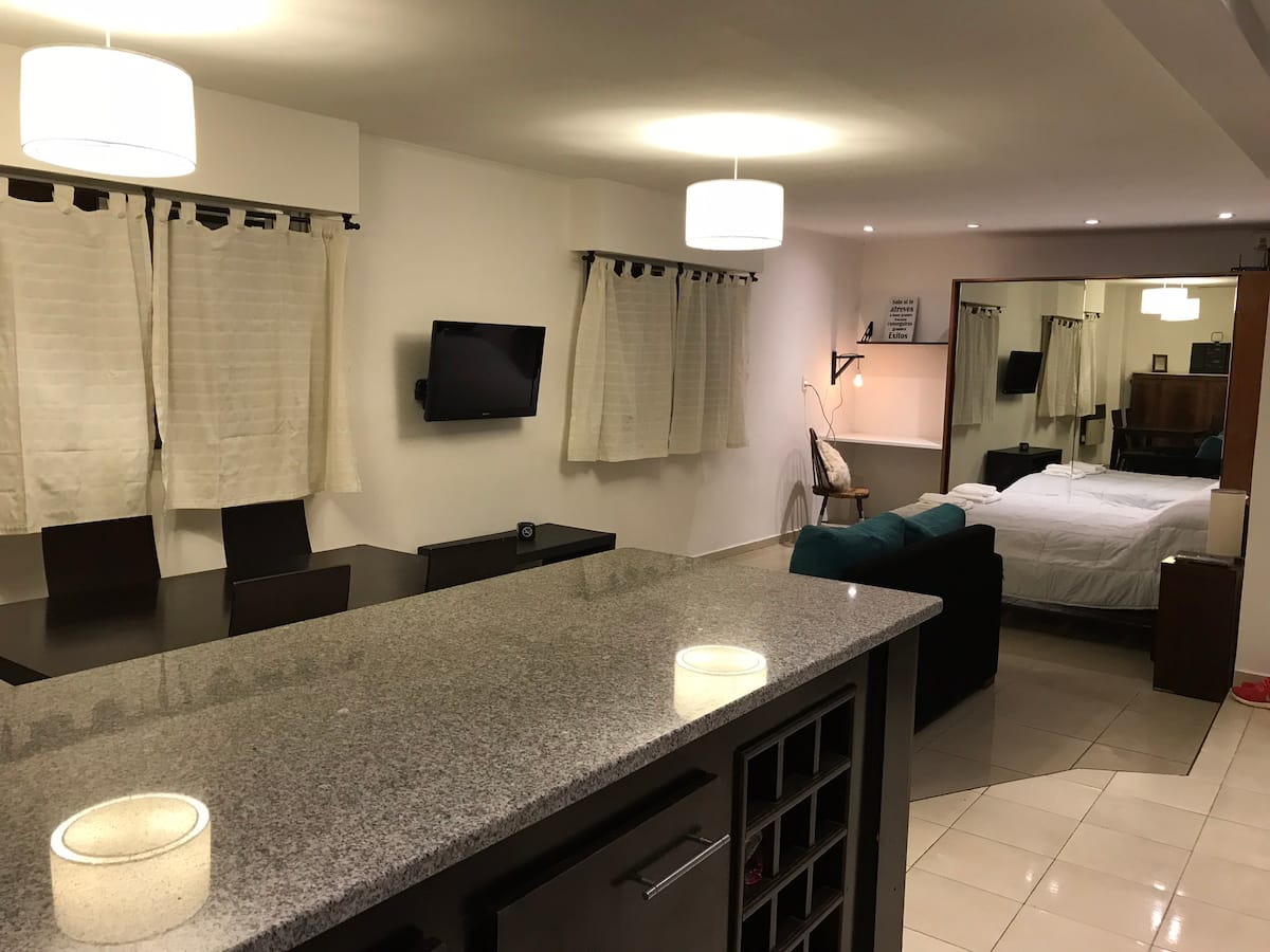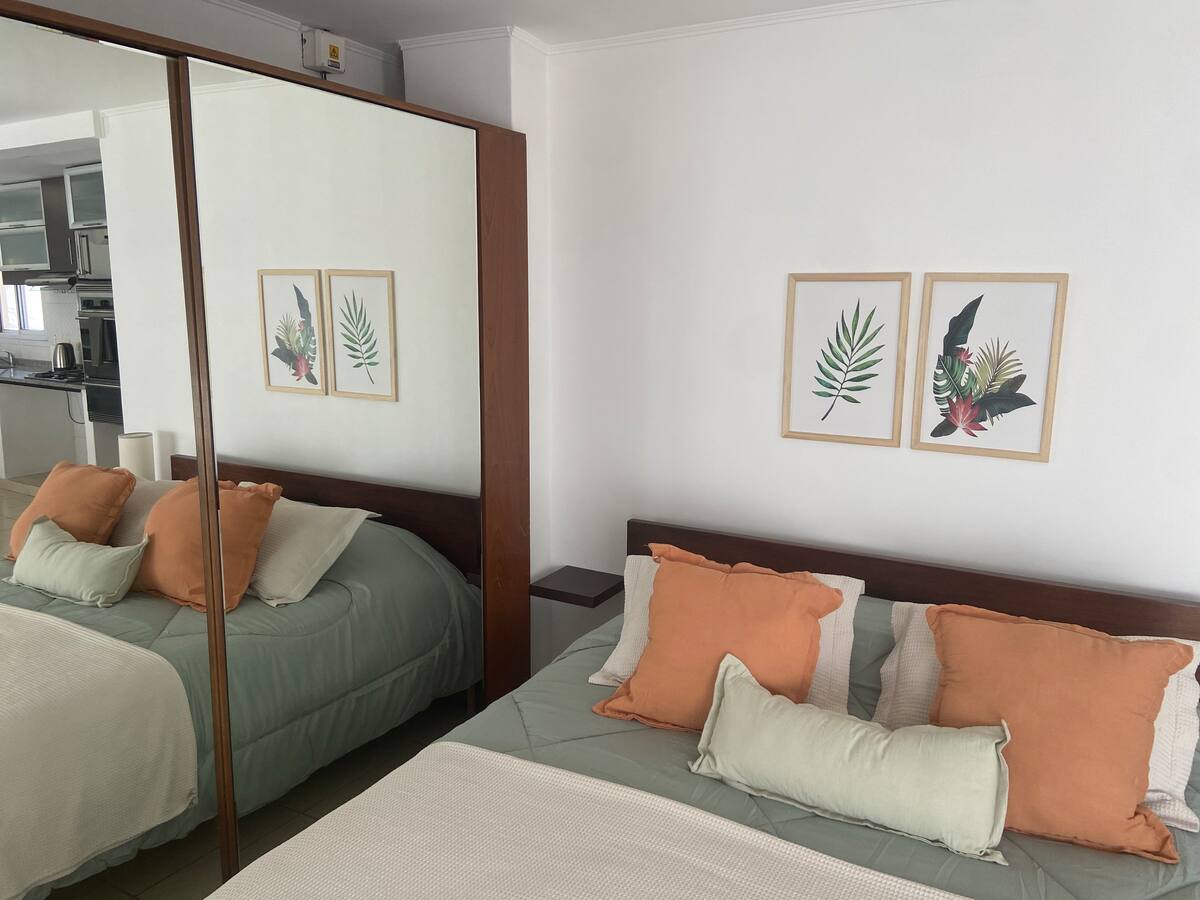 Fully equipped furnished studio in the Palermo Queen area of Villa Crespo. Wi-Fi (300 MB) and a Smart TV with Netflix are provided. Kitchen includes a filter coffee maker and Nespresso, plus a toaster and blender, and the bathroom includes toiletries with a hair dryer and hair straightener; mosquito nets are installed on all windows.
