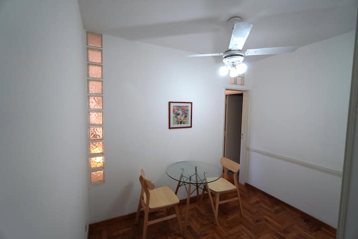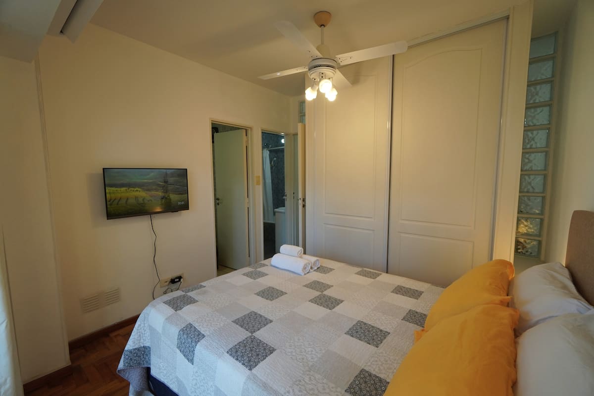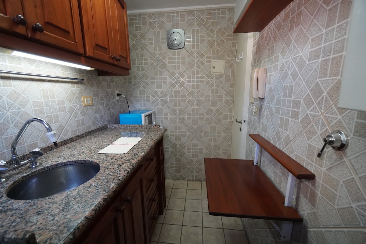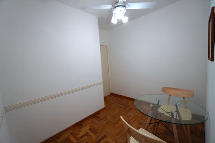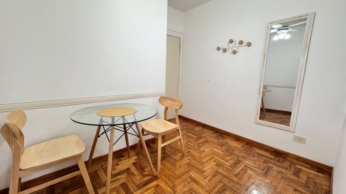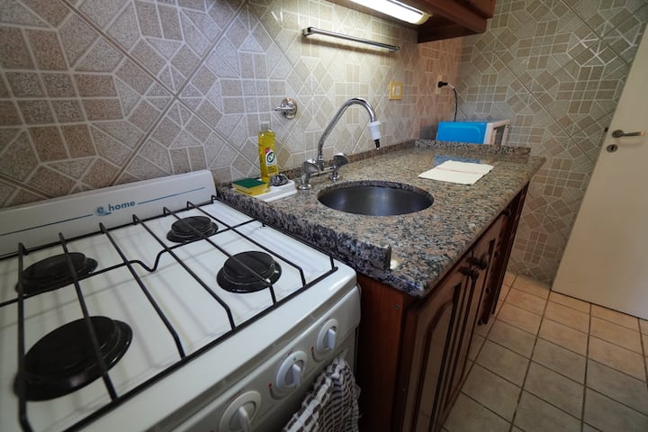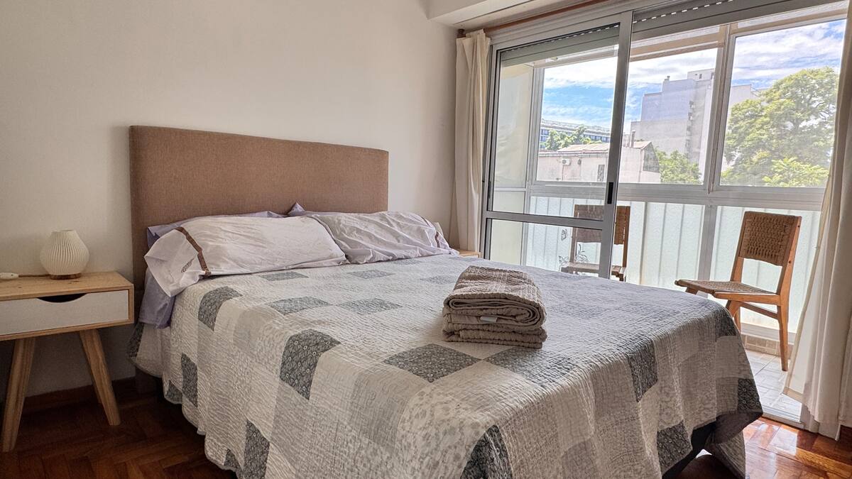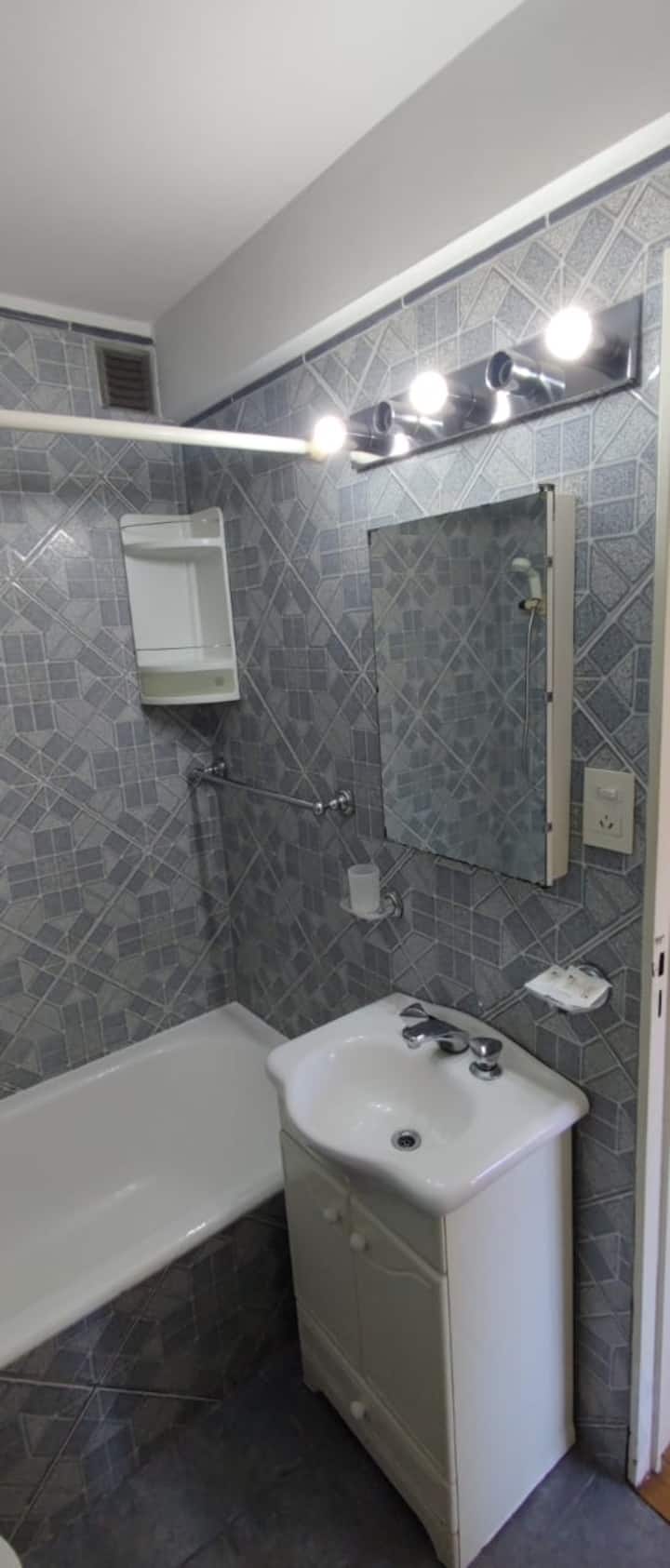 Studio apartment in Villa Crespo, 2 blocks from Movistar Arena. It has an equipped kitchenette, Wi-Fi, TV, air conditioning, and a balcony. The listing mentions a bathroom and private transportation options for events, with special rates during shows.