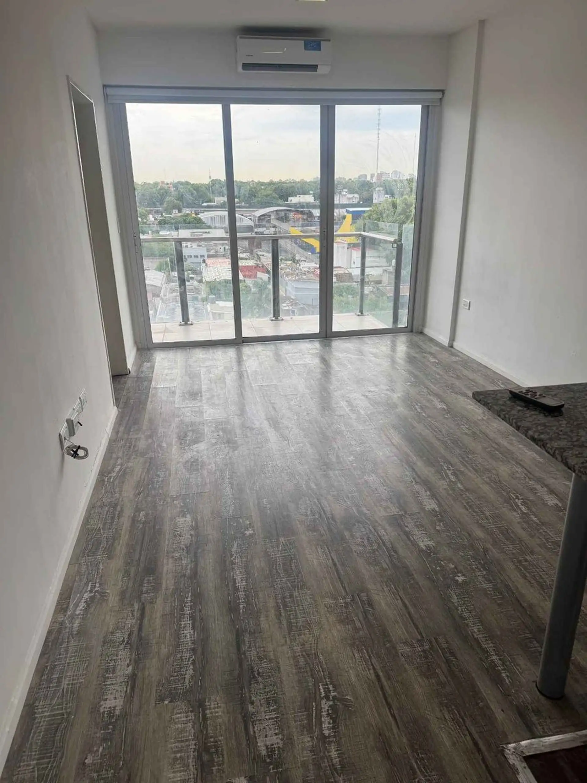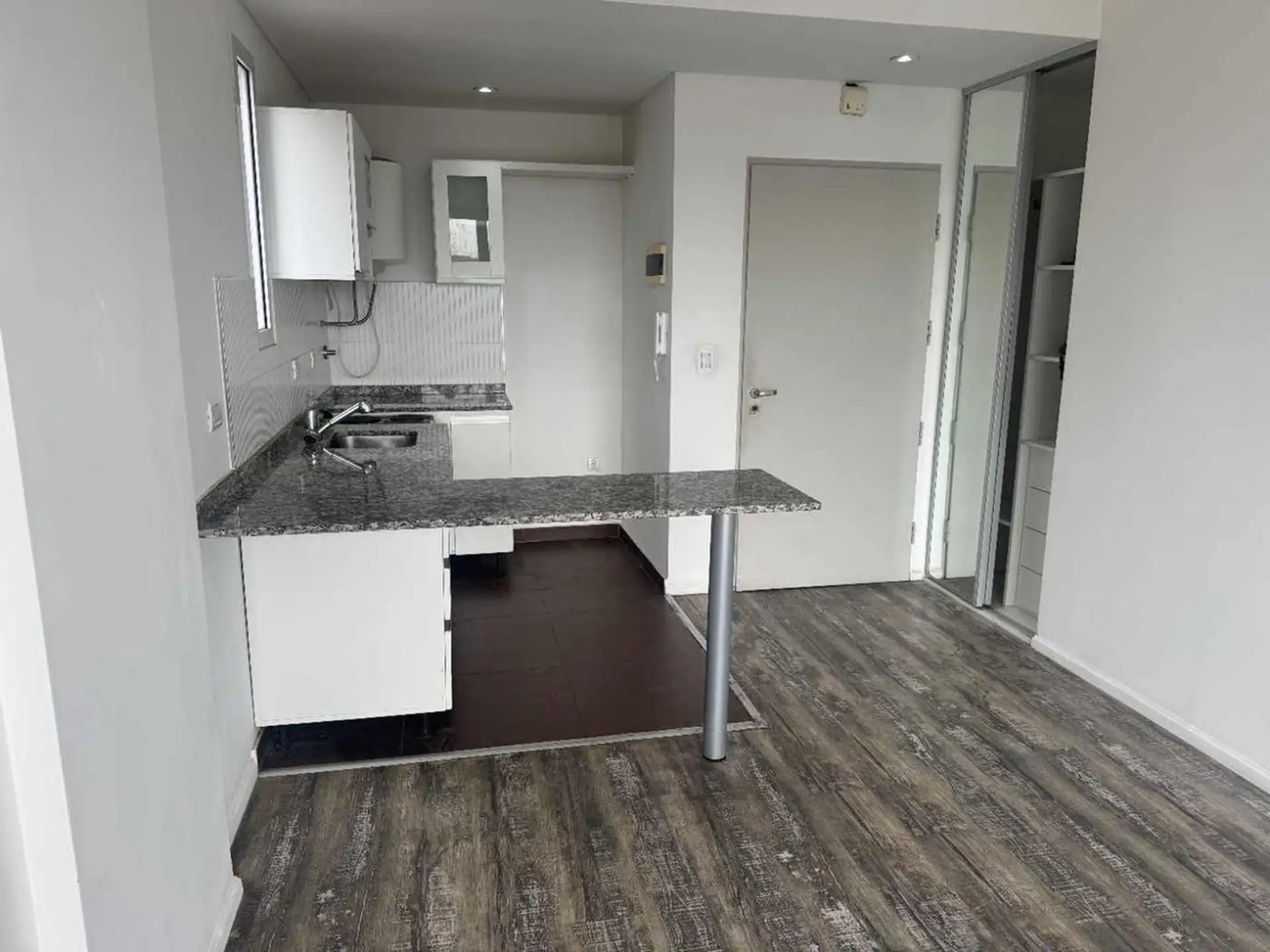Studio apartment for rent in Villa Crespo, on Av. Juan B. Justo. 27 m² total, with 24 m² covered and a 3 m² balcony, street-facing. Integrated kitchen, electric water heater (termotanque), and a full bathroom with a modern shower. The building was built in 2022 and has a laundry room and a pool. Rental terms: 1 month deposit, 1 month in advance, and a rental guarantee bond (caución).