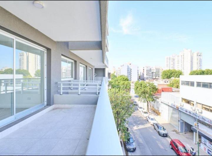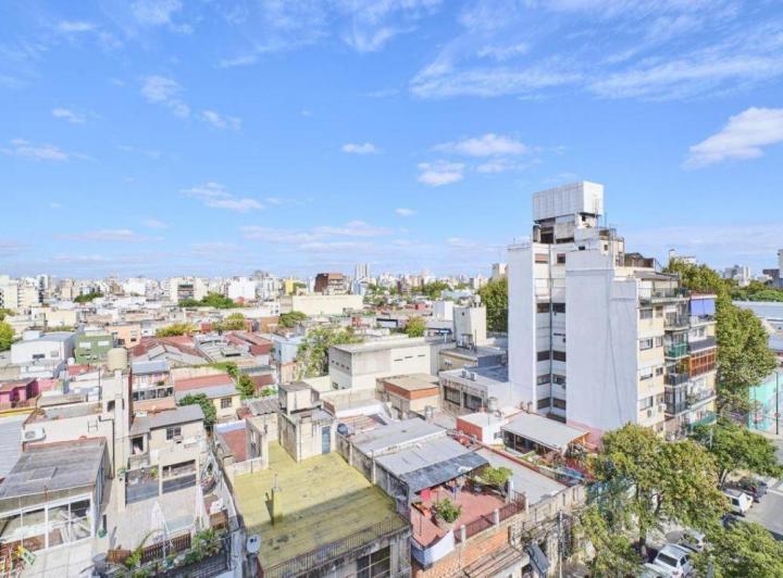 Two-room apartment in Villa Crespo, brand new. It has an open view. The building includes barbecue areas, a gym, pool, solarium, laundry and a communal room (SUM). Building fees, ABL and AYSA are not specified.