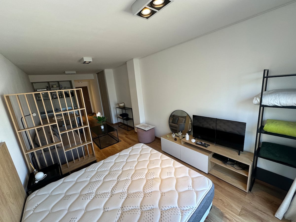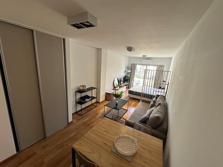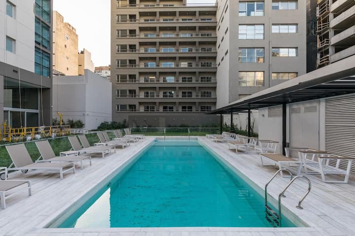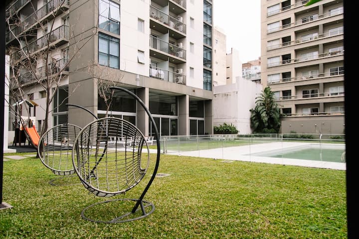 Apartment in Villa Crespo with a balcony terrace. The building has a pool, gym, grill area, residents’ lounge (Zoom), and a game room. It also offers 24-hour security.