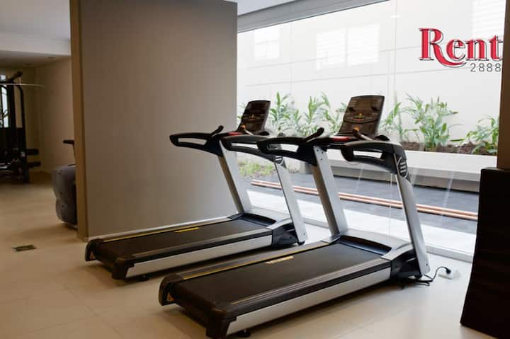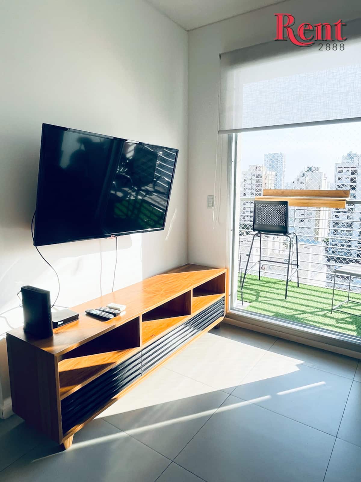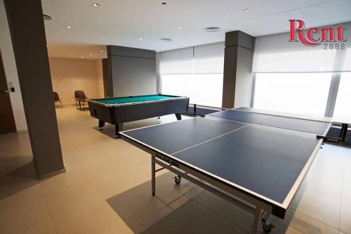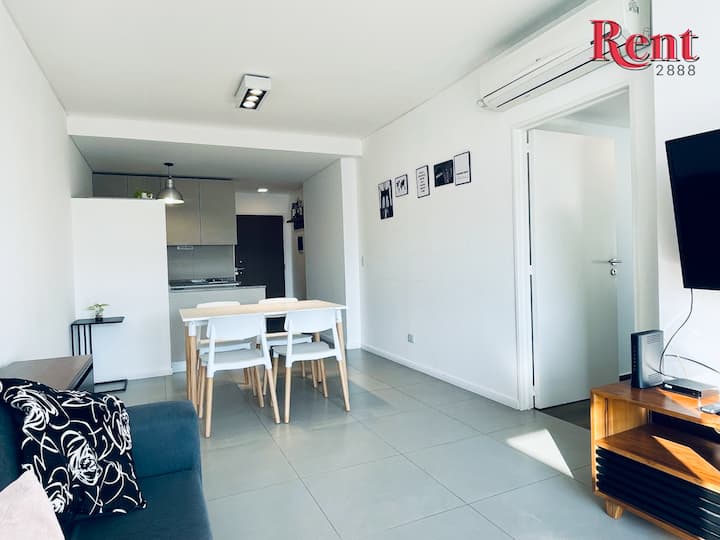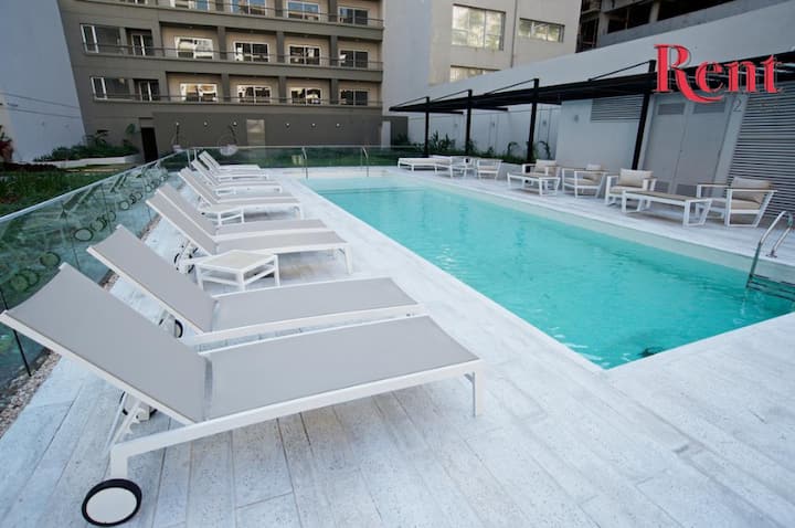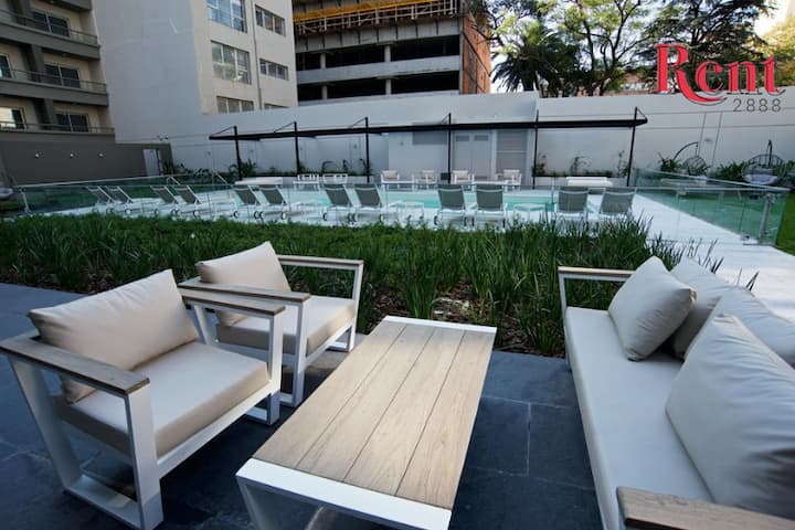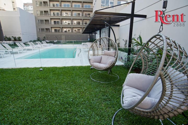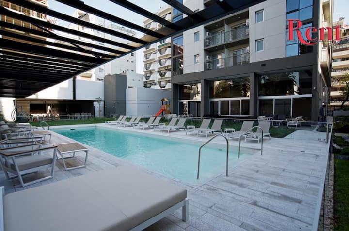 One-bedroom apartment in Villa Crespo with a large balcony and full kitchen. The bedroom and living room have cold-heat air conditioning, with Wi-Fi and a TV; it includes a sofa. The en-suite bathroom has a bidet and a bathtub. The building offers 24-hour security, a pool, a gym and a playroom, located in the commercial area of outlet shops, 3 blocks from Malabia station (Subte B) and 4 blocks from the Juan B Justo Metrobus.