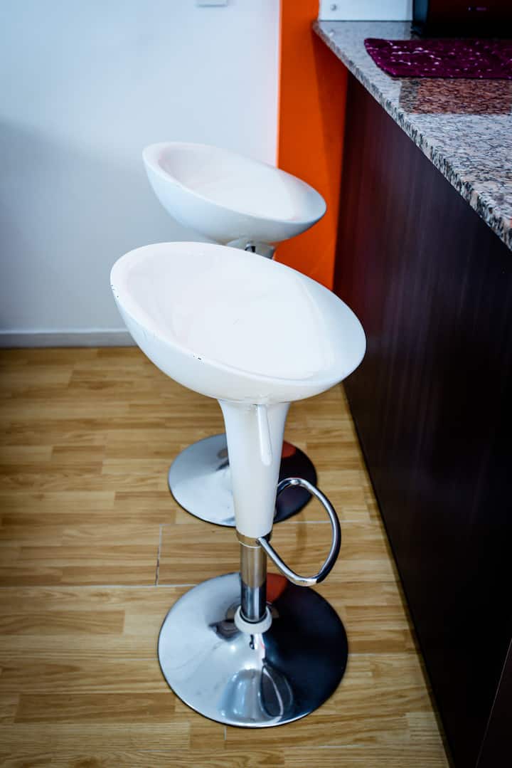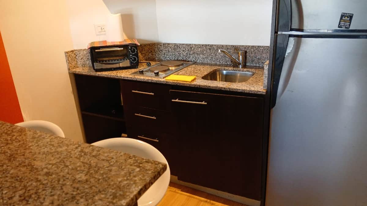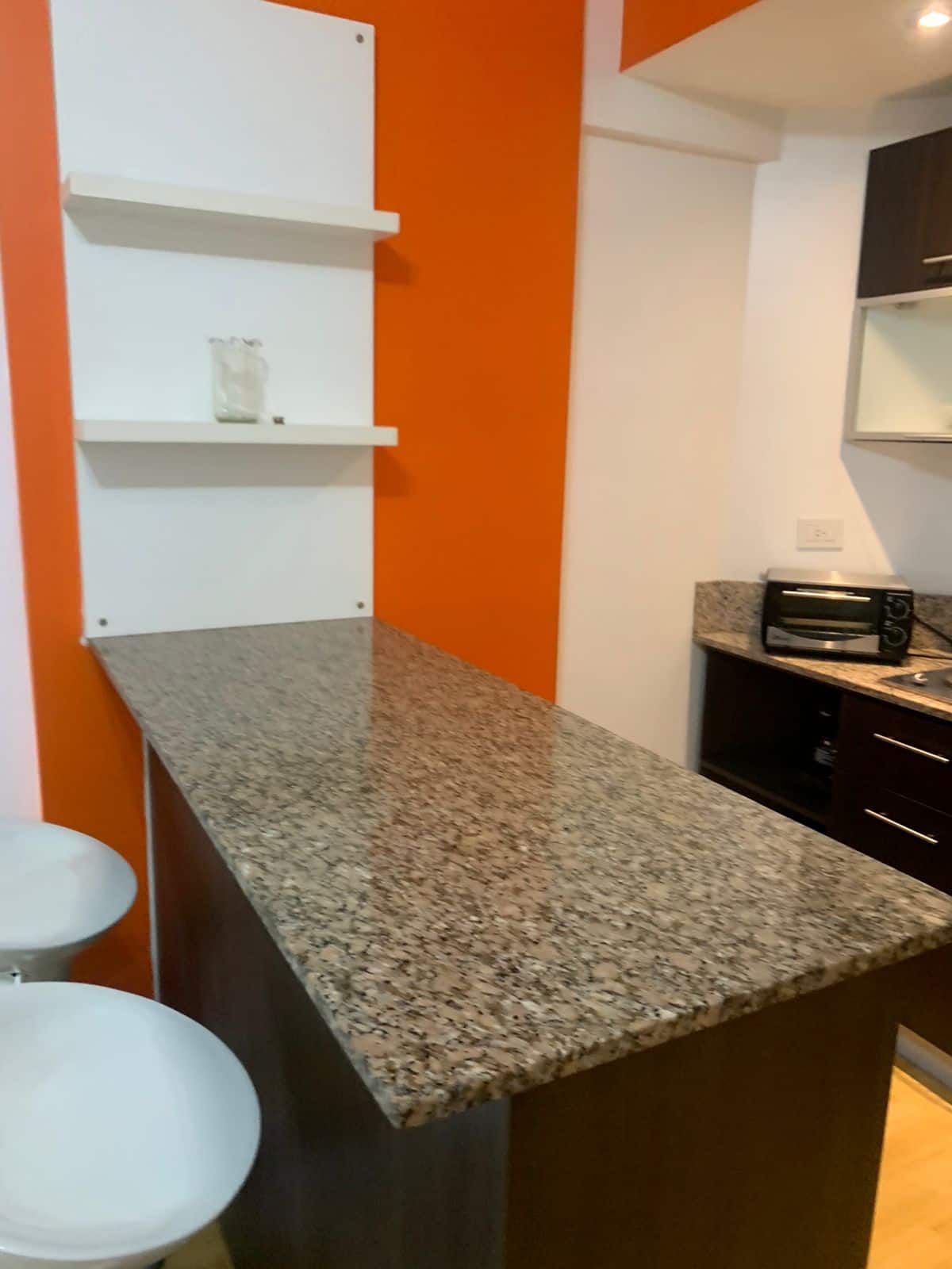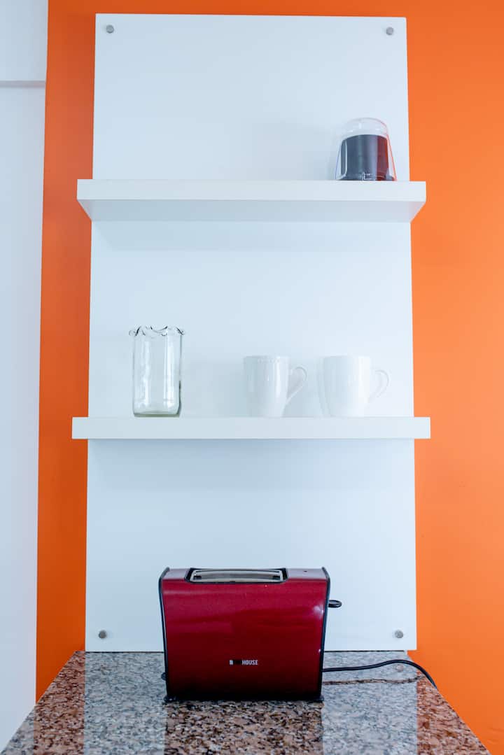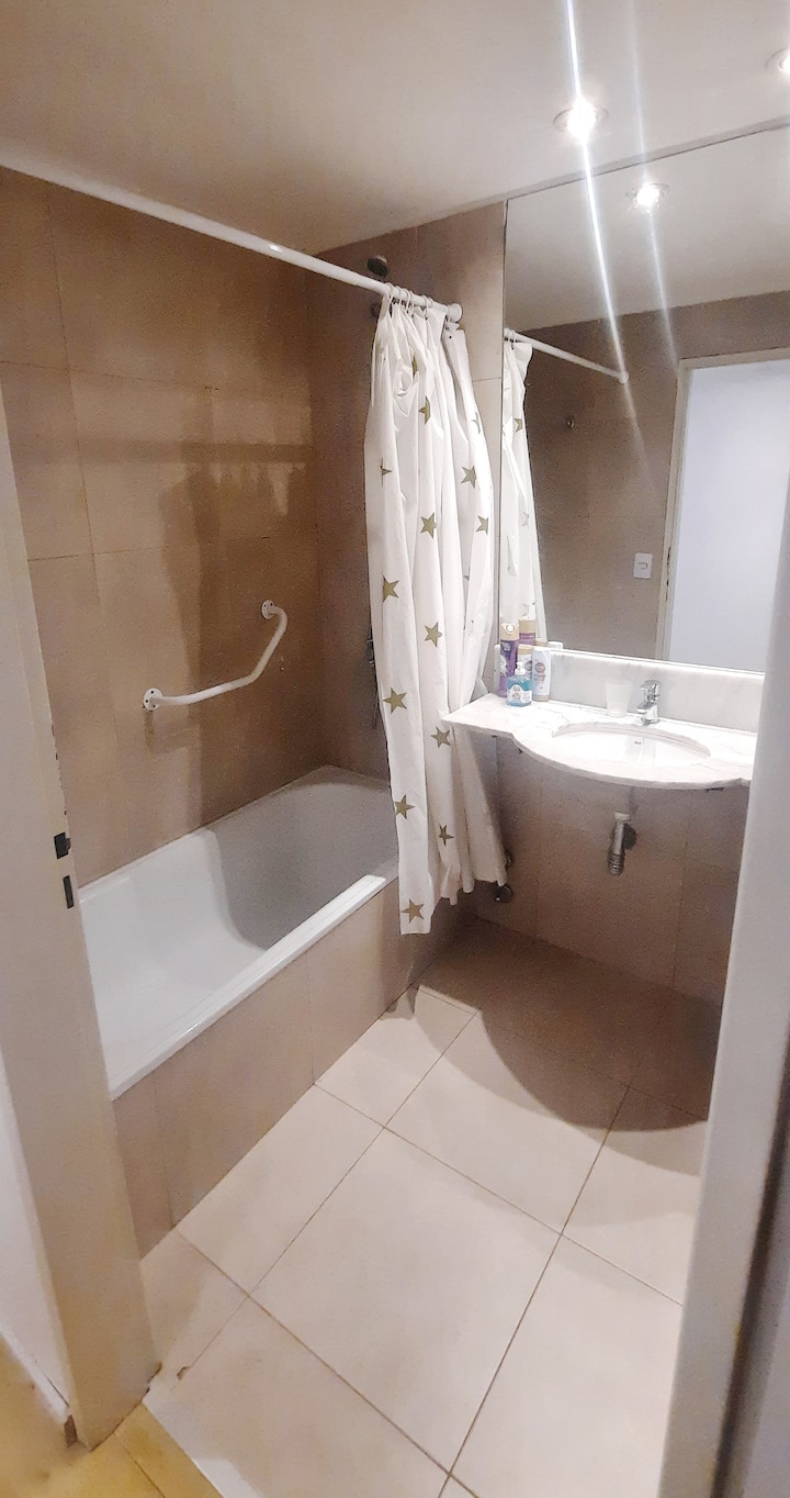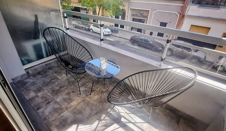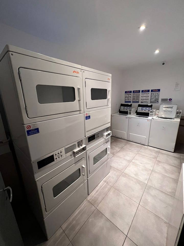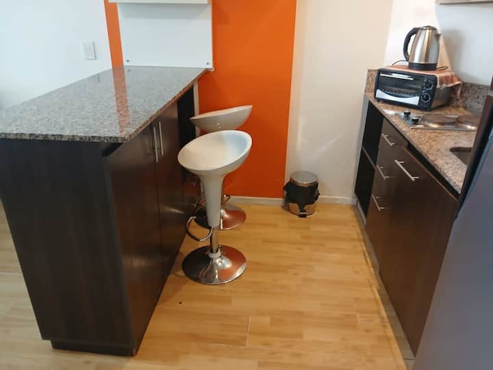 Studio apartment in Villa Crespo. Pool, gym and laundry are available by prior reservation through an online page. Laundry tokens are purchased at a nearby store, and paid parking is available in front of the Garage Caballito building.