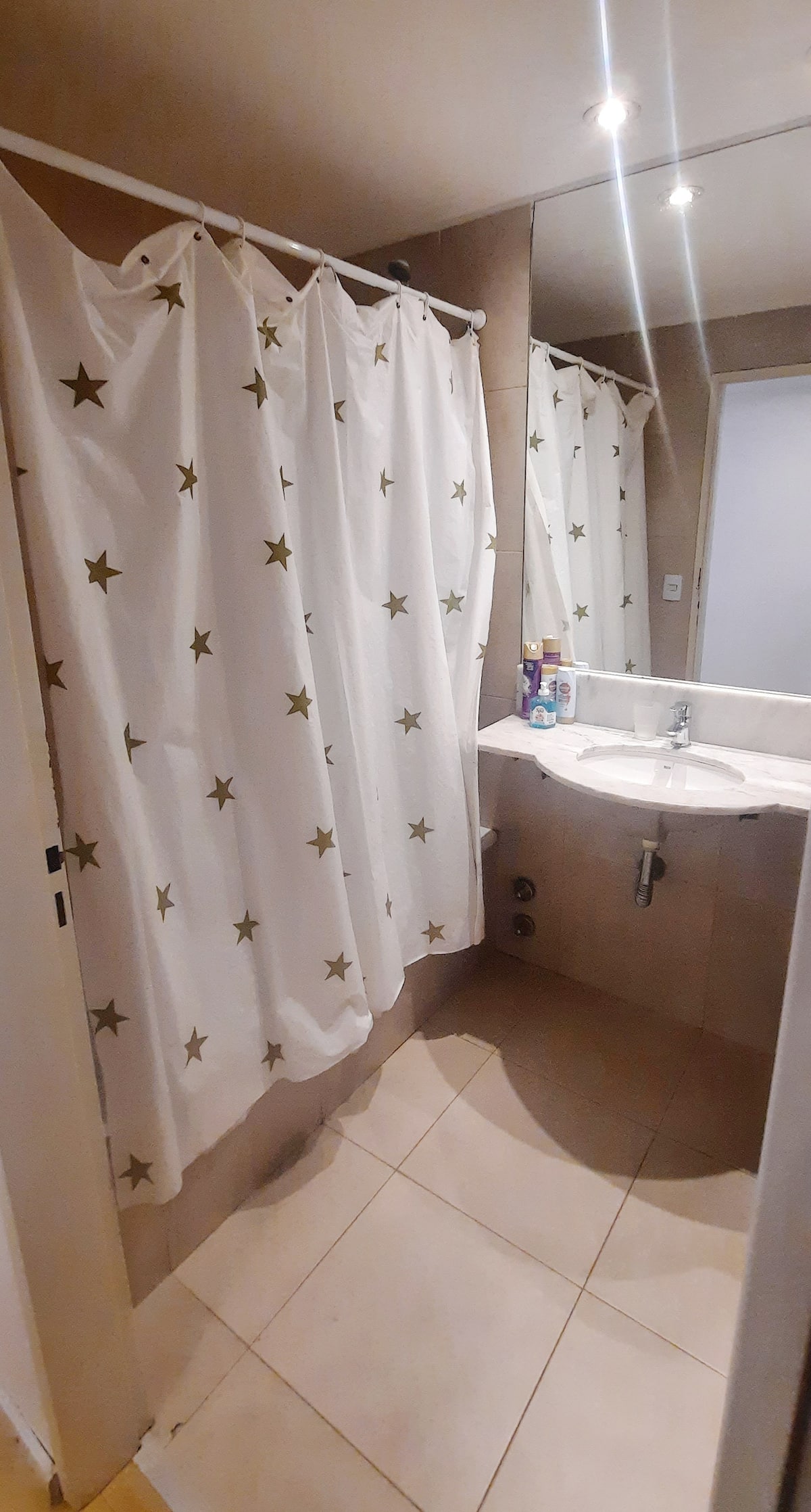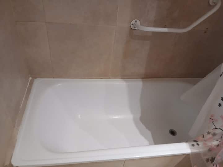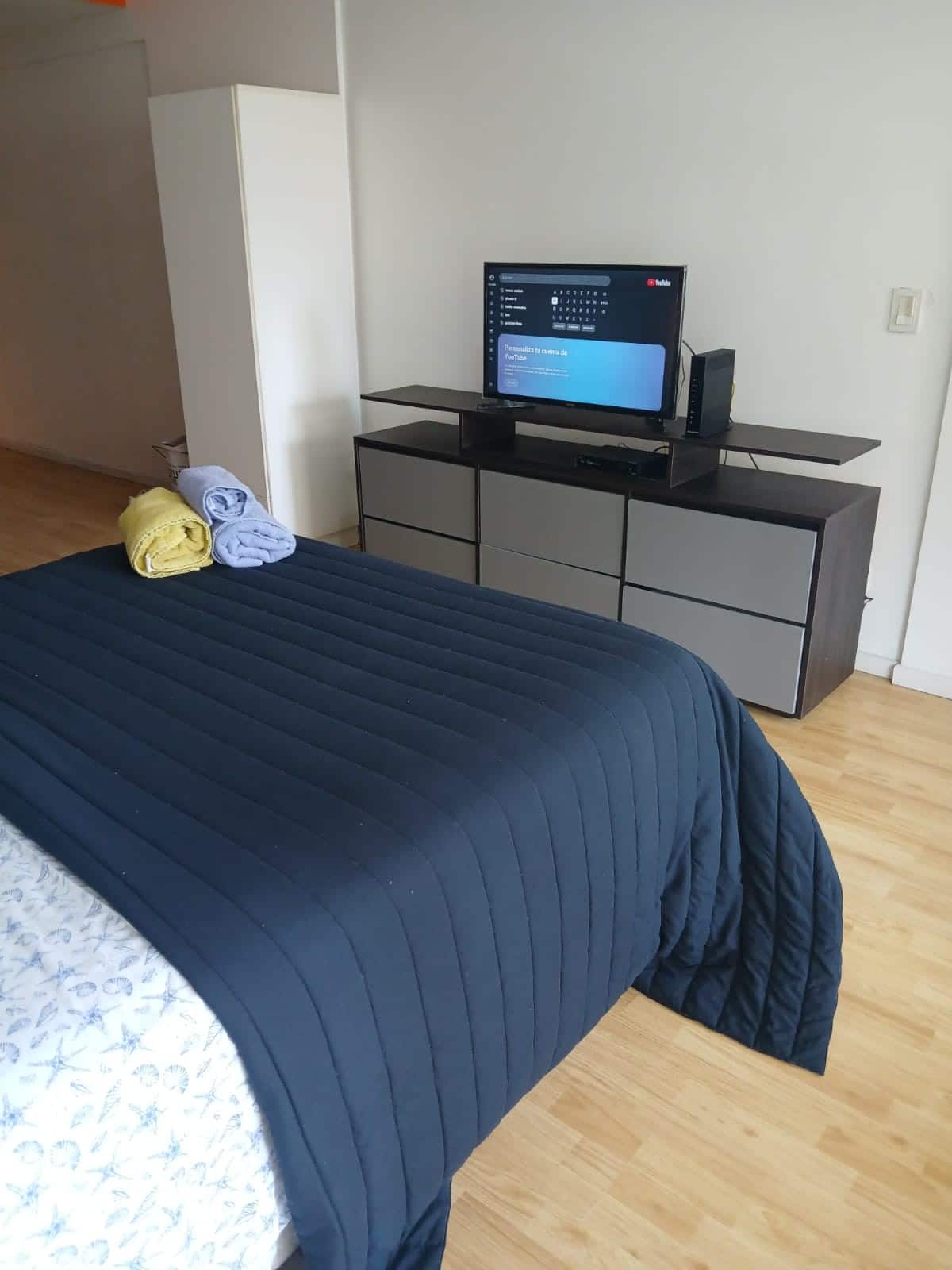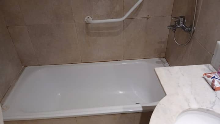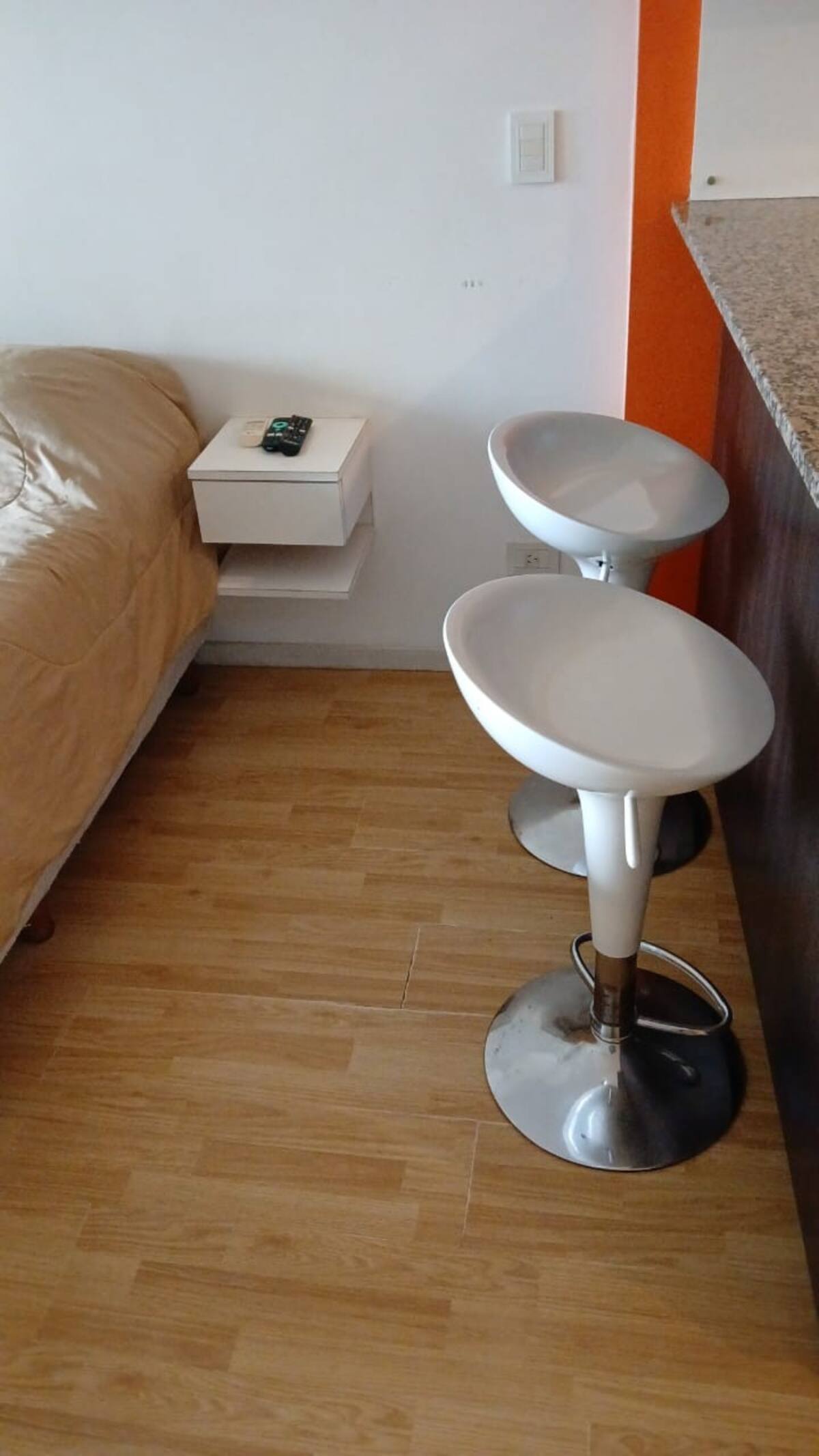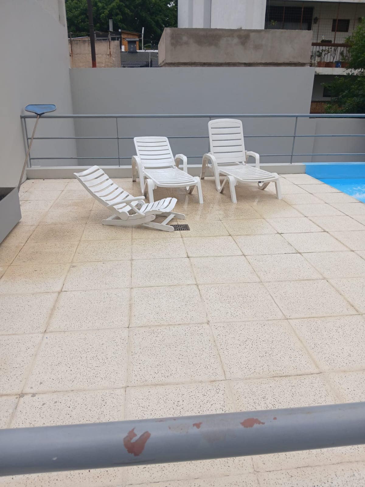 Studio apartment in Villa Crespo. Pool, gym and laundry are available by prior reservation through an online page. Laundry tokens are purchased at a nearby store, and paid parking is available in front of the Garage Caballito building.