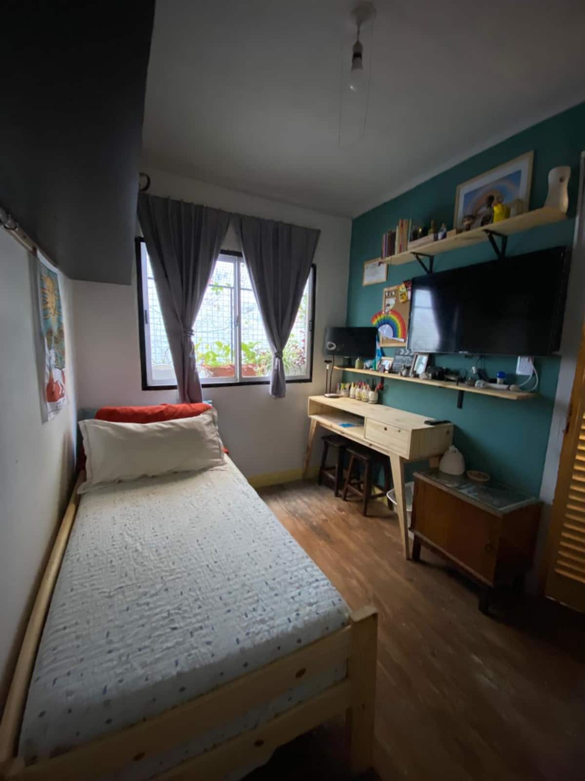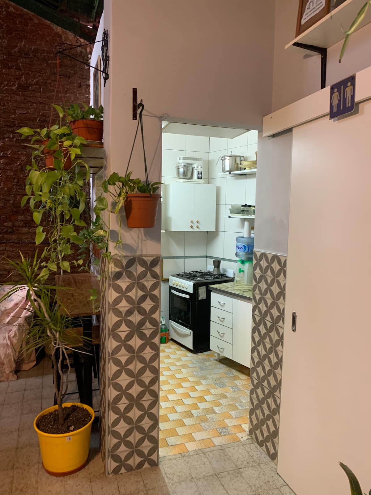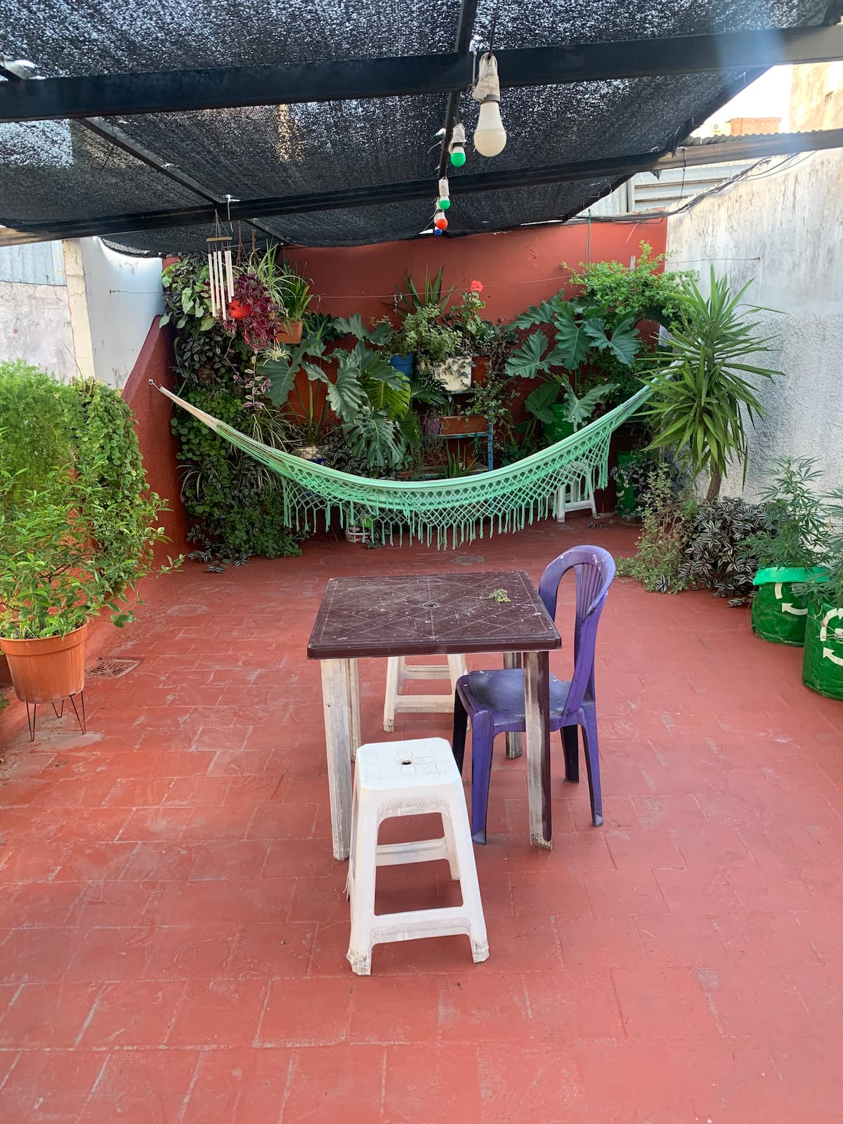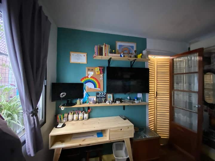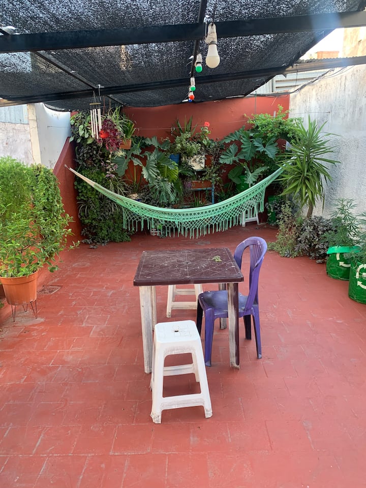 A room in La Nacha House in Villa Crespo. It is located a few blocks from the Malabia subway and surrounded by bus lines. Guests have access to common areas, including a fully equipped kitchen, dining room and terrace. The room includes a bed, storage space and a desk.