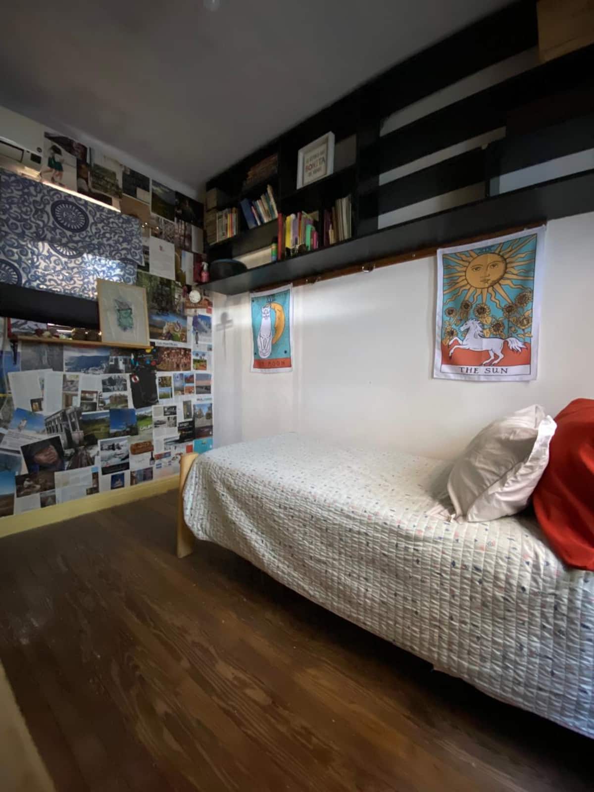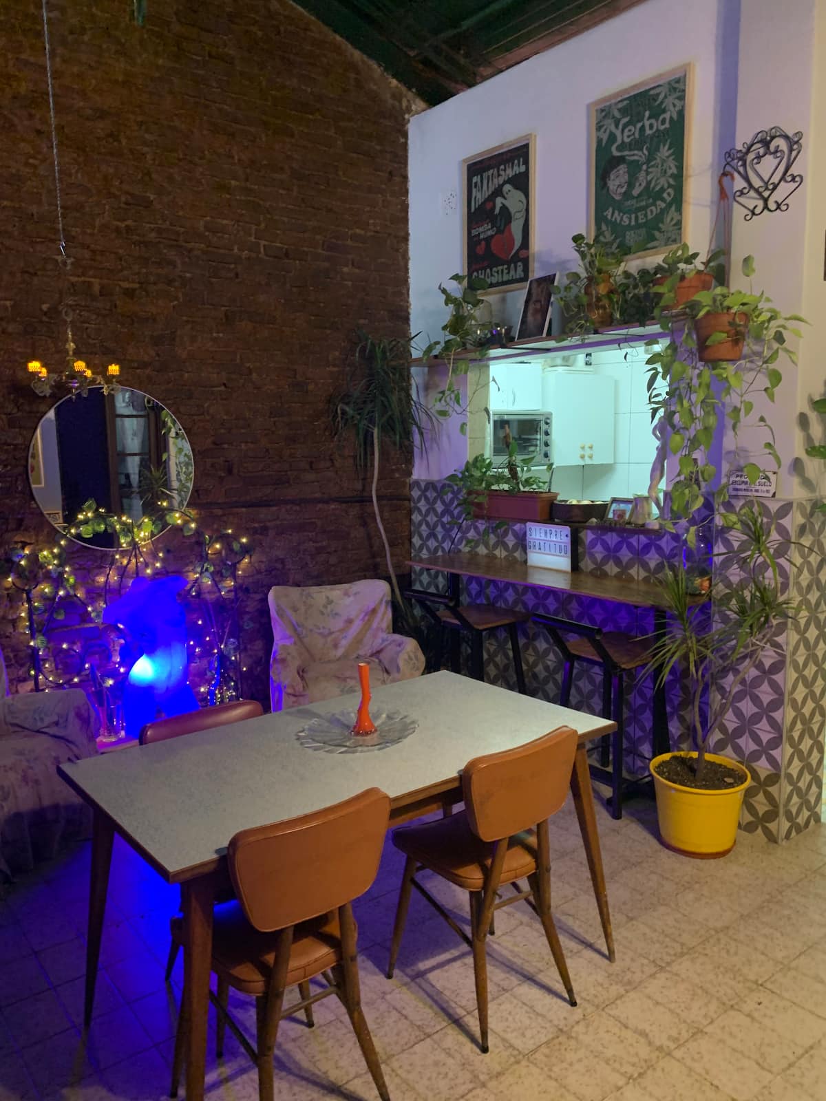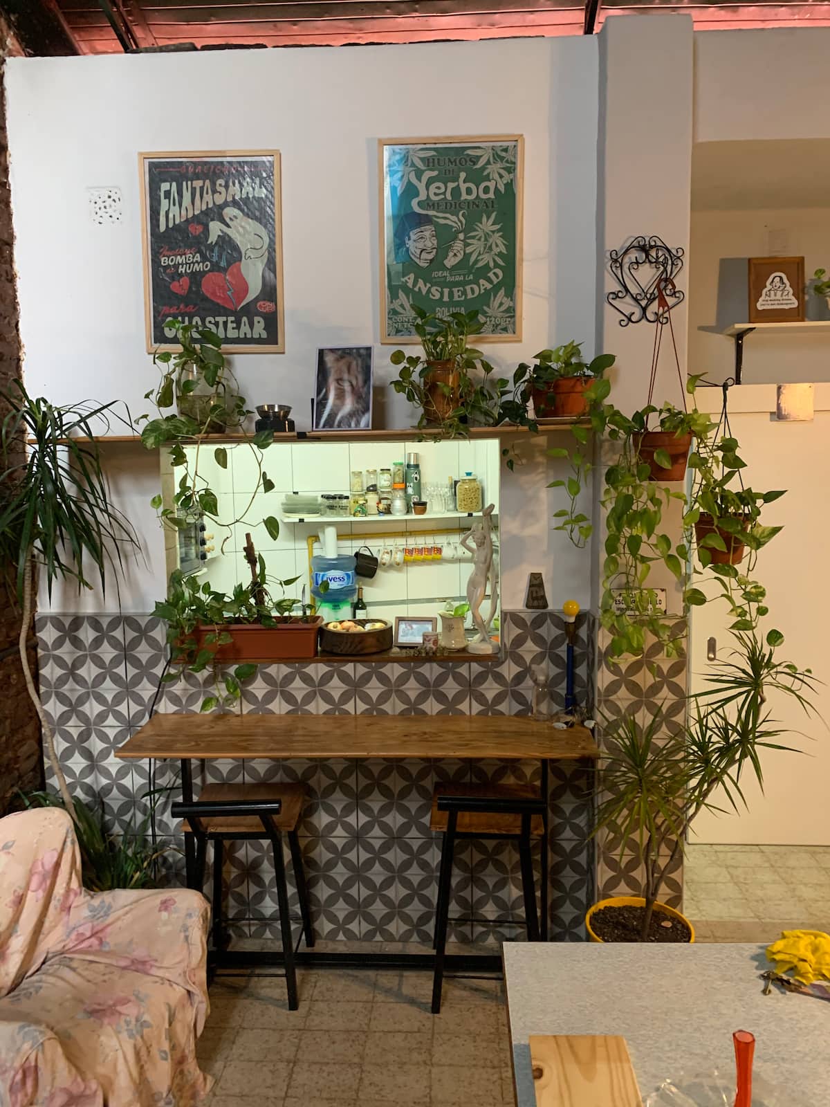 A room in La Nacha House in Villa Crespo. It is located a few blocks from the Malabia subway and surrounded by bus lines. Guests have access to common areas, including a fully equipped kitchen, dining room and terrace. The room includes a bed, storage space and a desk.