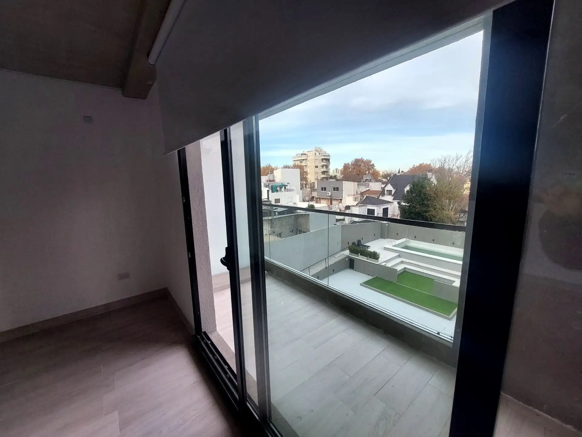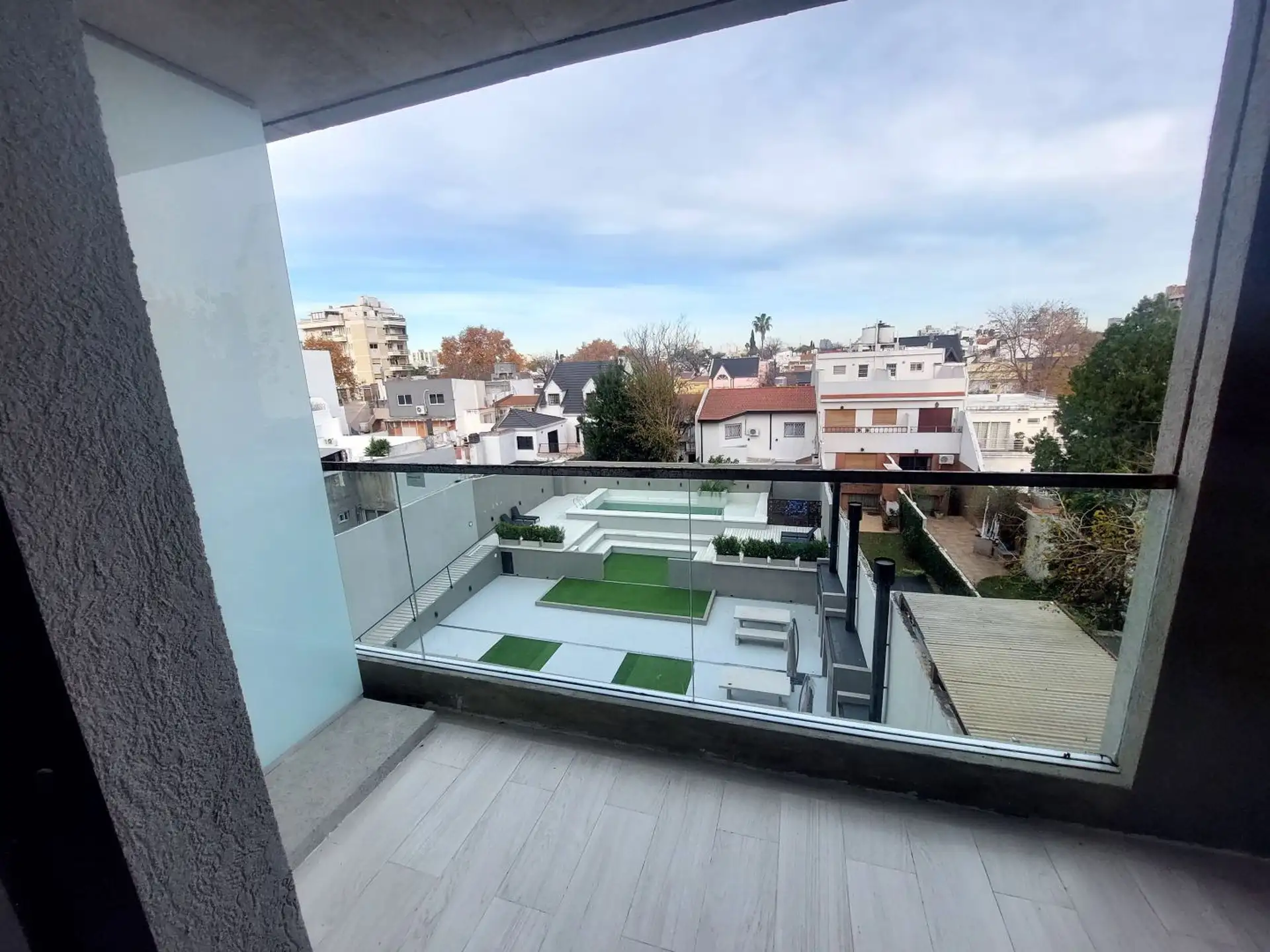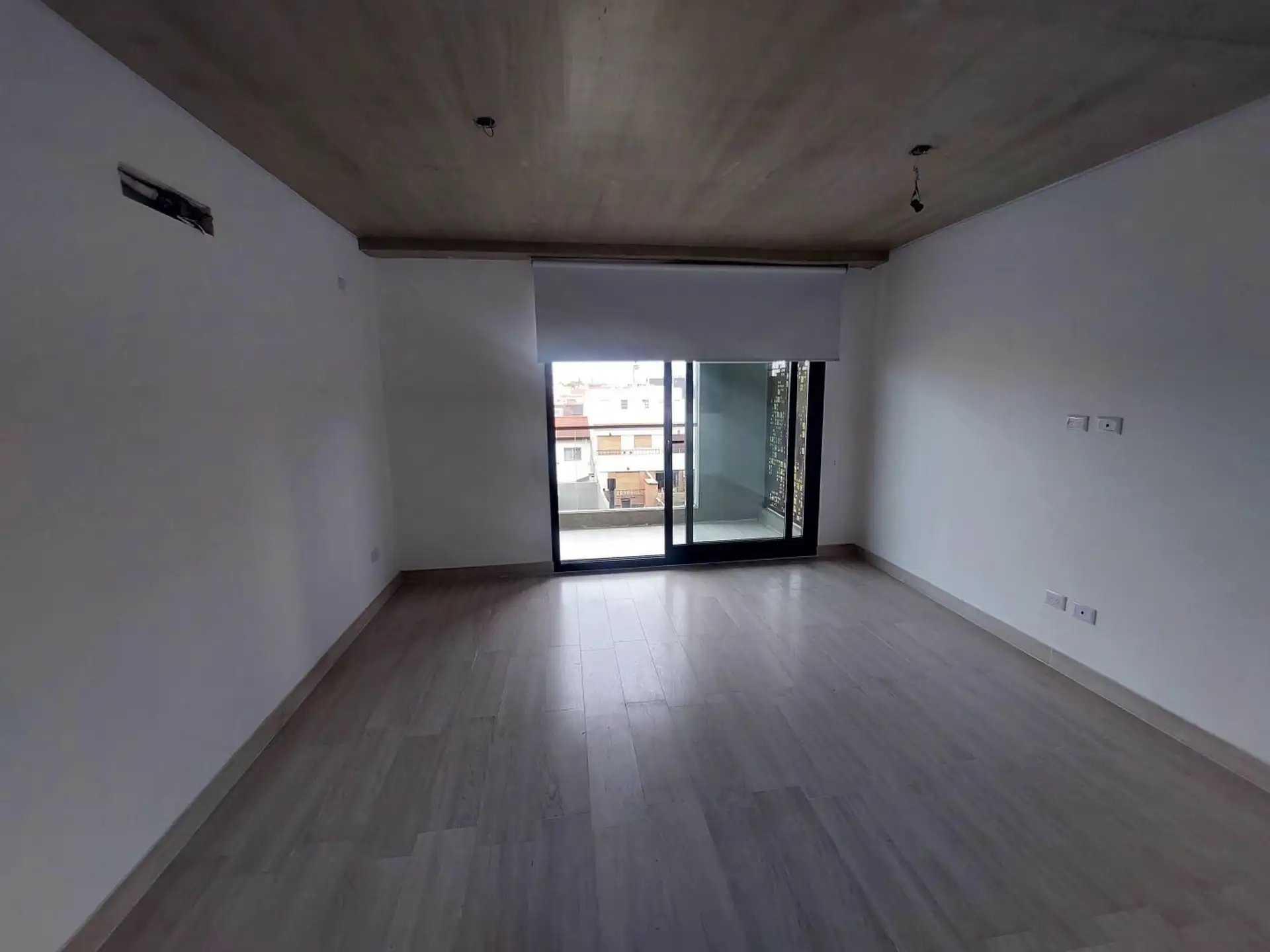 Studio apartment brand new in Villa del Parque. Ceramic floors, semi-integrated fully installed kitchen with breakfast bar, single-lever tap, and electric cooking appliance with oven. Courtyard-facing unit with natural ventilation, balcony with open view to the contra-frente, roller sun screen curtains, and a full bathroom with vanity and shower; building amenities include solarium, pool, grill, coworking space, communal room, gym, laundry, and parking and bicycle space. Rental is for 2 years wi