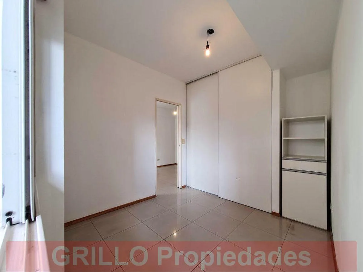 Two-room apartment of 43 m², front-facing, on the second floor. The unit has a front living-dining area and a bedroom at the front with built-in wardrobe, plus a full bathroom with a bathtub. The kitchen area includes an electric water heater (termotanque) and electric cooking appliance. Porcelain tiles throughout, front balcony with iron-mesh safety enclosure, and provision to install a washing machine on the balcony. There is a dedicated home-office space at the entrance (approx. 1.18 m x 0.68