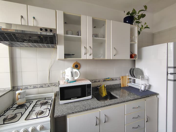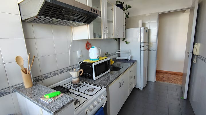 Apartment in a residential area of Villa del Parque, close to shops and public transport. It has a bedroom with a double bed and a living room with a sofa bed. The kitchen is equipped and the apartment has a panoramic view.