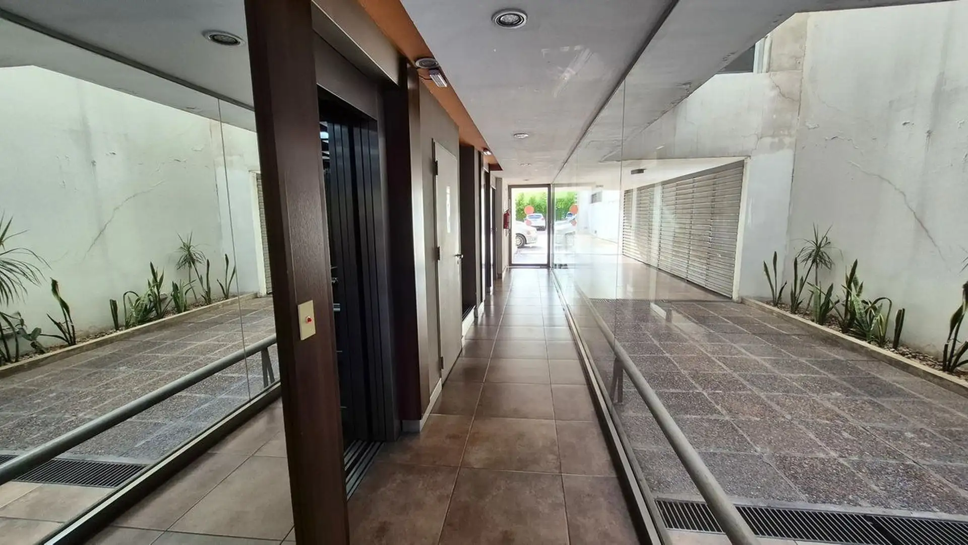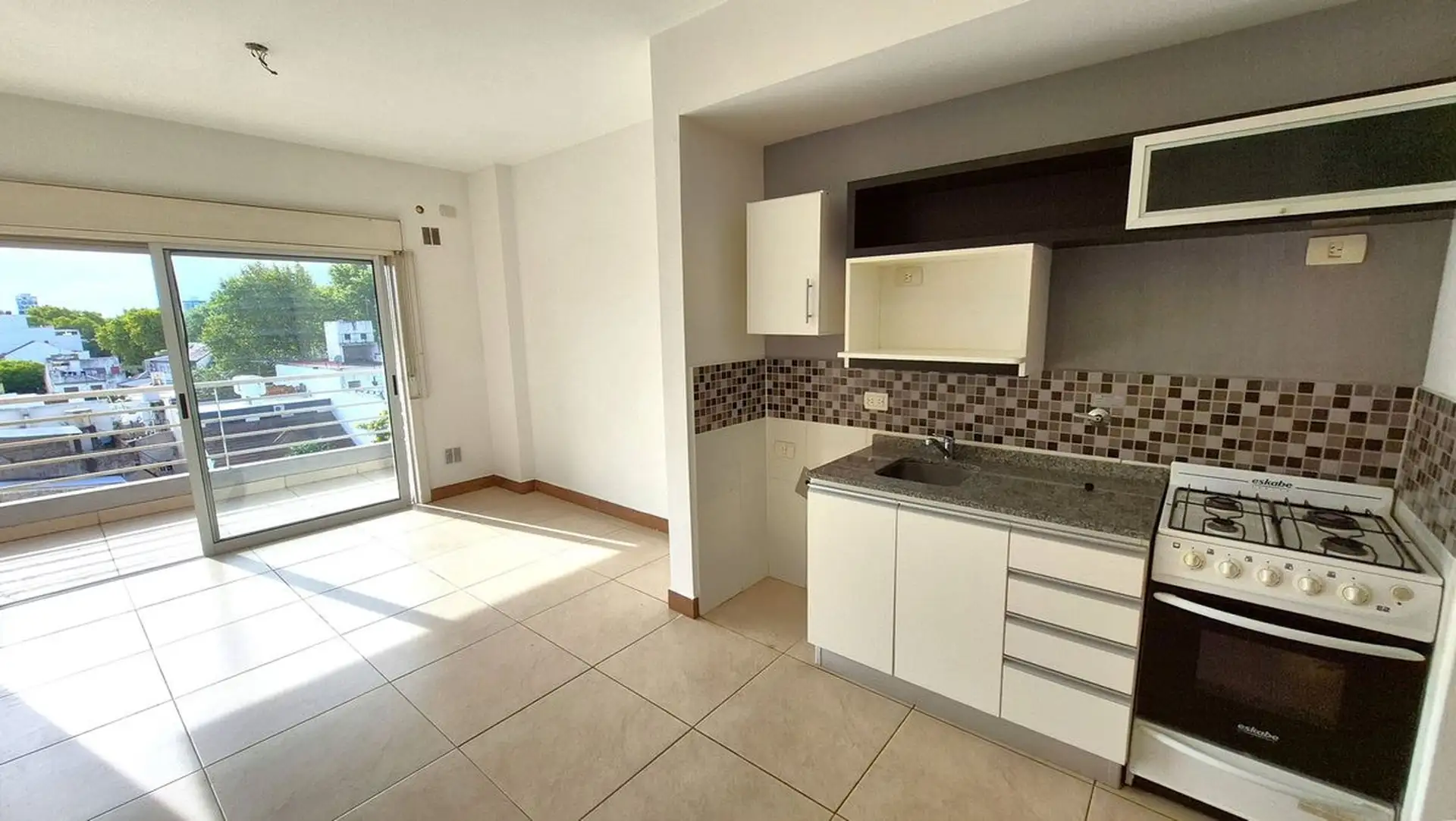 Studio apartment on the 5th floor, courtyard-facing (contrafrente) in a modern building in front of Plaza Ricchieri and Devoto Shopping. It has a 3 x 1.70 m balcony with north-west orientation and an integrated kitchenette with gas, with connection for a washing machine. Central hot water via a boiler, fitted wardrobe, and a full bathroom with bathtub; the unit is suitable for professional use and includes a window with shutter. The building has 9 floors, 2 elevators, and 4 apartments per floor.