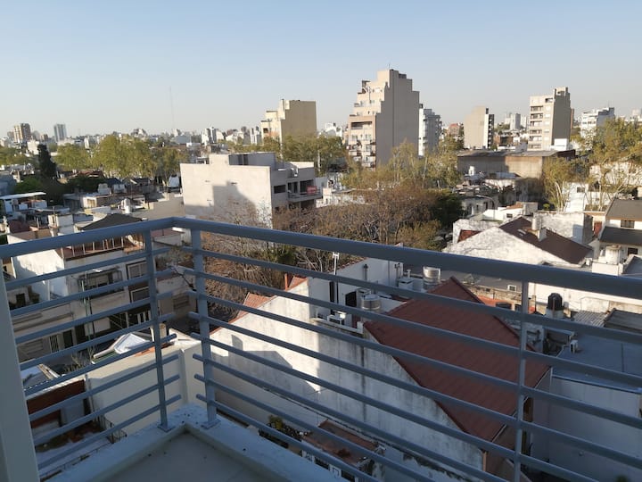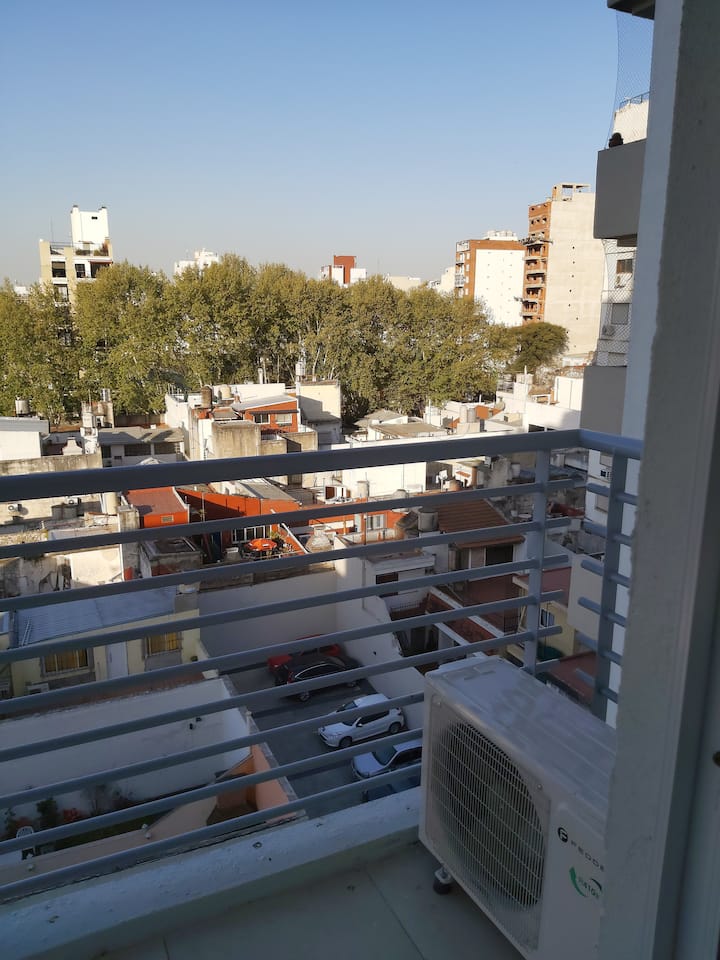 Studio apartment in Villa General Mitre with brand-new furniture and appliances. Double-front building with central hot water, a 24-hour security system with virtual connection and cameras, and residents’ facilities including a communal multi-use room and a grill. The unit has a balcony with an open, spacious view.