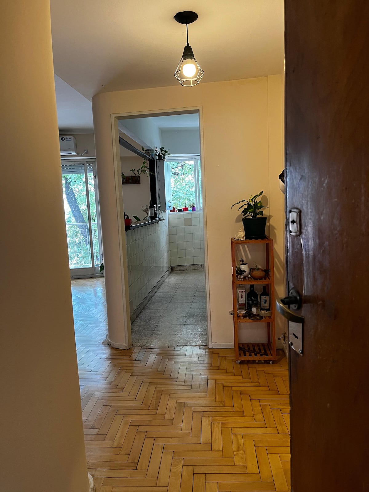 Two-room apartment with a corridor balcony. All rooms have windows and the unit is on the 3rd floor accessed by stairs, with no elevator.