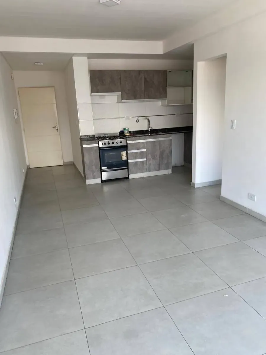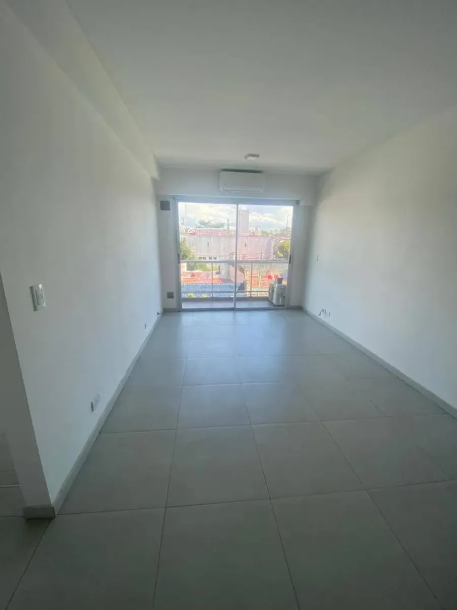 Two-room apartment in Villa Lugano with 1 bedroom and a living-dining kitchen. Street-facing balcony, air conditioning in the kitchen area, and a full bathroom. The bedroom includes a built-in wardrobe. The building has a lift, SUM, grill, and terrace. Building fees are approximately ARS 140,000; rent is ARS 650,000, with an available parking space for an additional fee. Located on Av. Castañares 5800 corner of Martiniano Leguizamon.