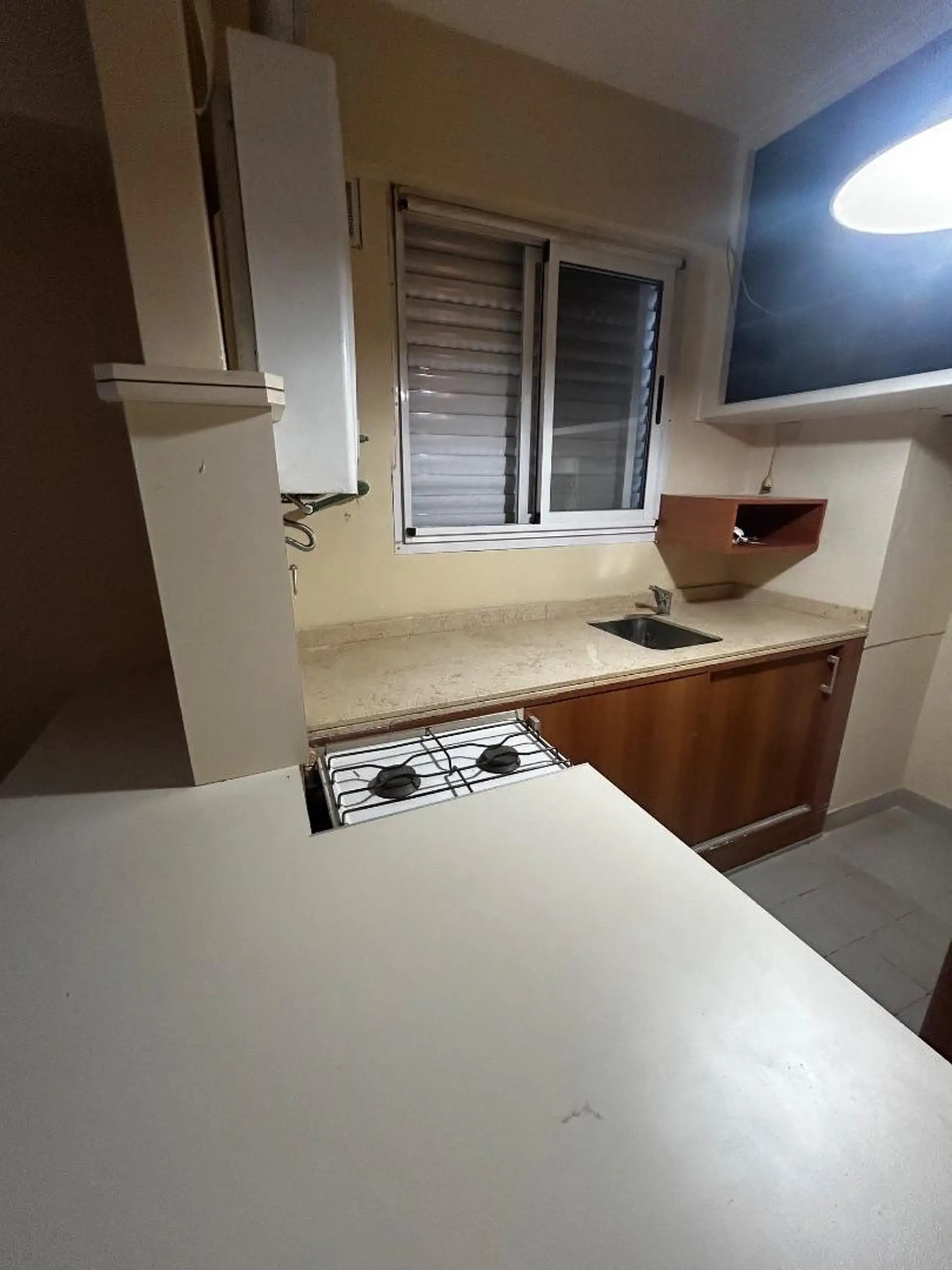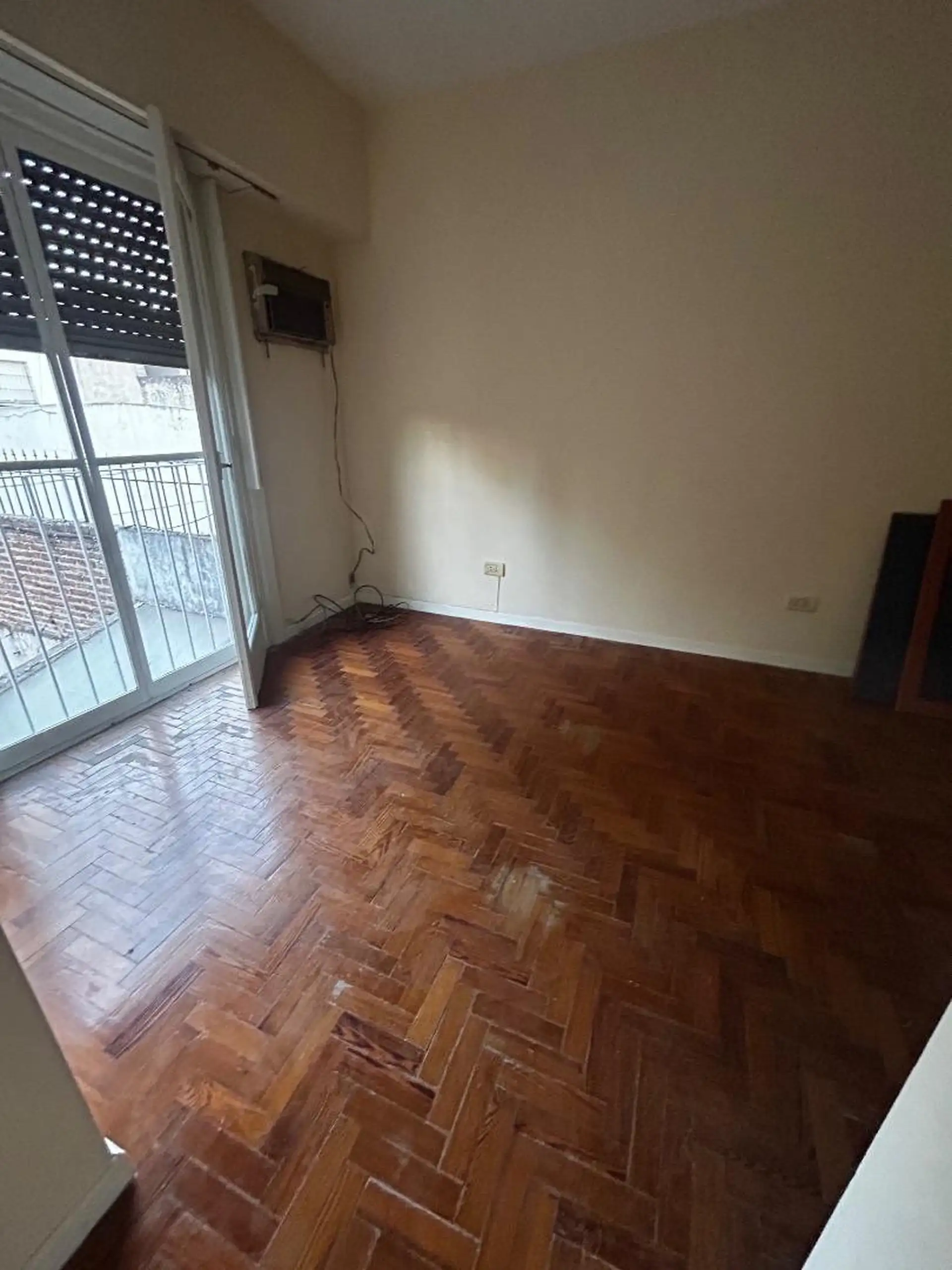 Two-room apartment on the courtyard-facing side (contrafrente) on the first floor, accessed by stairs, in a small building. The living-dining room measures 6 x 3 m, with a kitchen featuring a breakfast bar. The bedroom measures 3.8 x 4 m and has a fitted wardrobe; there is a full bathroom.