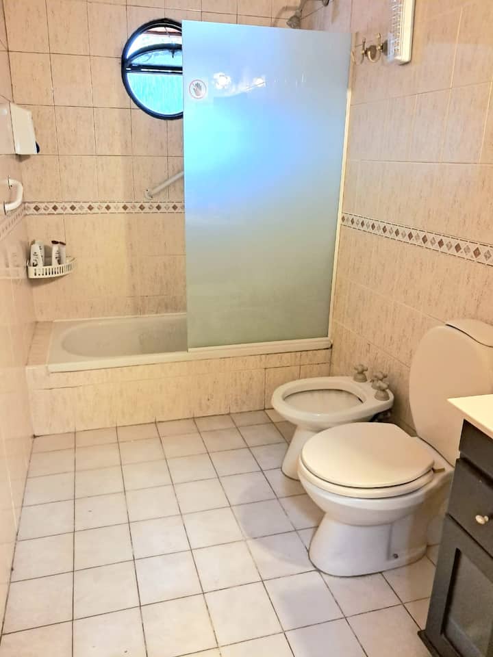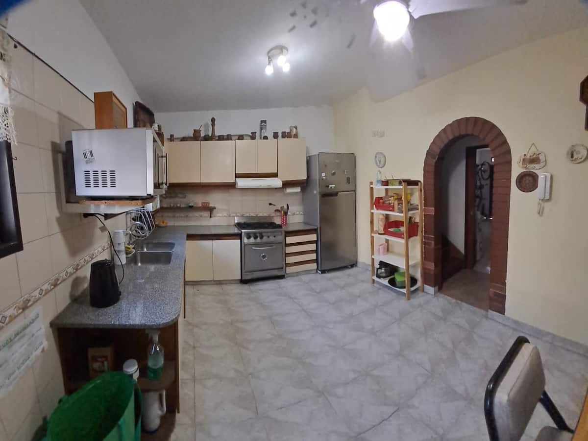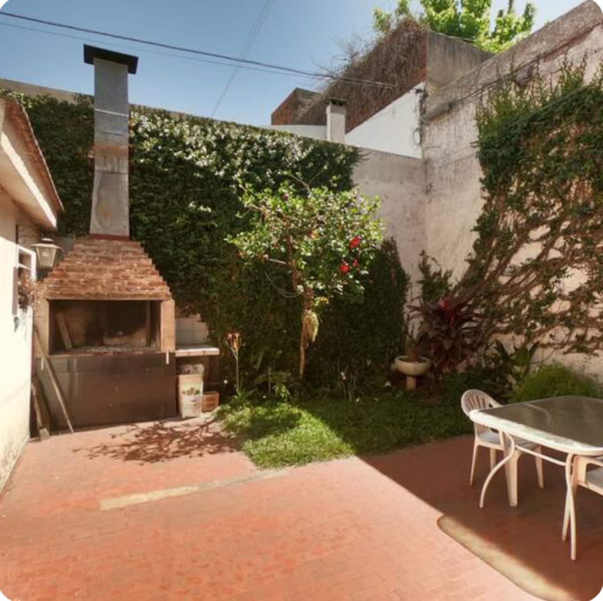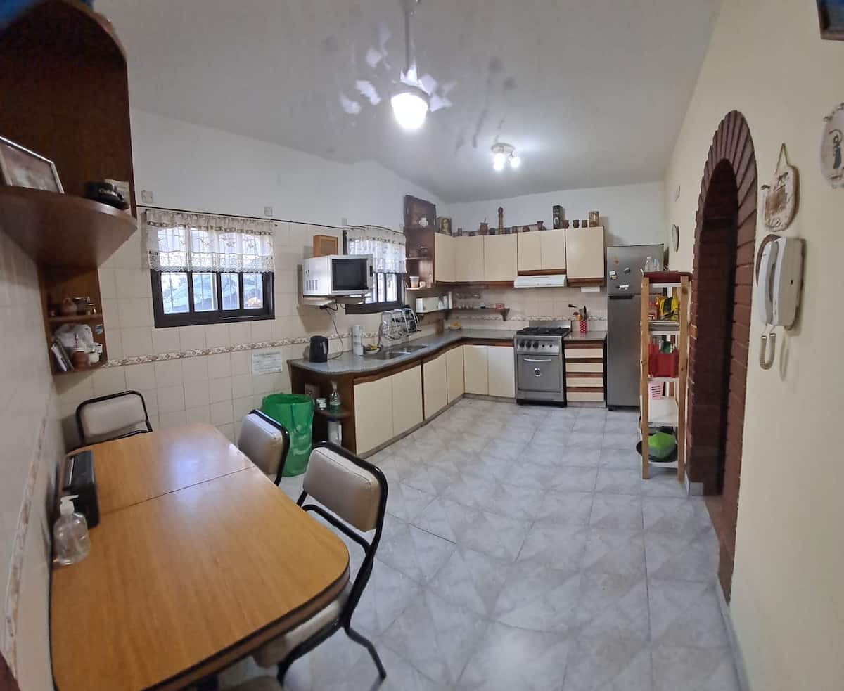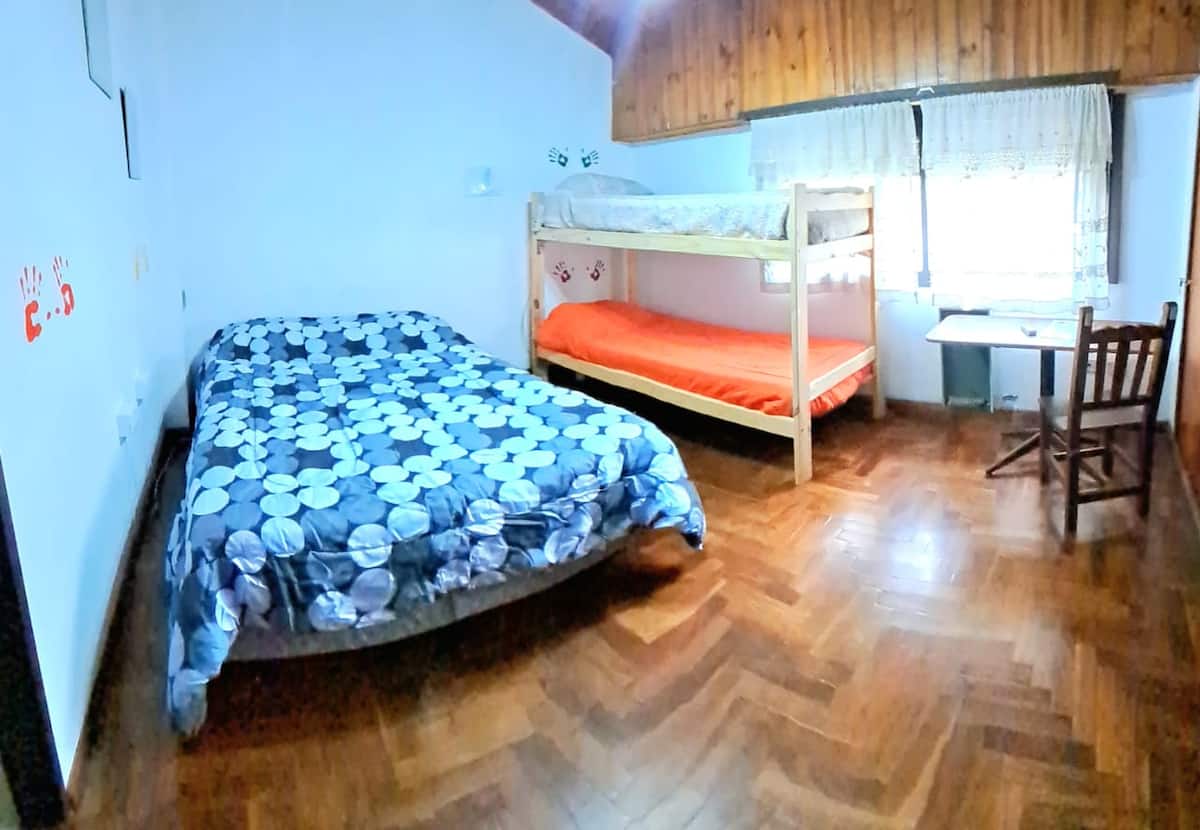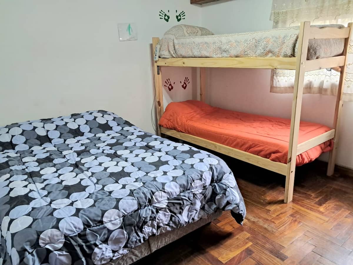 Shared room in an apartment in Villa Luro. The room has 4 single beds and a large closet for each occupant, with large windows for natural light. The unit includes a garden with a grill and a fully equipped shared kitchen for common use.