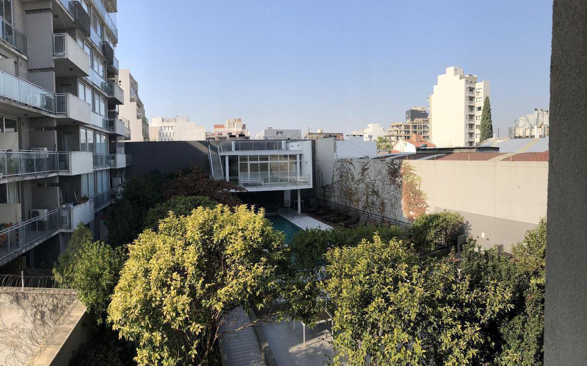 Studio apartment with a balcony, 36 m² total area, in Villa Urquiza / Villa Ortuzar. Fully equipped for a professional rental, with a full bathroom, integrated kitchenette with lower cabinets, and air conditioning (hot and cold) in the main area. Building amenities include a pool, 24-hour security, a communal residents' lounge (SUM), covered grill area (parrillas), and laundry. Rental contract for 6 to 12 months; near Donado y Roseti, one block from Triunvirato and three blocks from Av. de los I