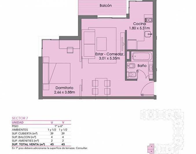 Divisible furnished studio apartment in Villa Santa Rita