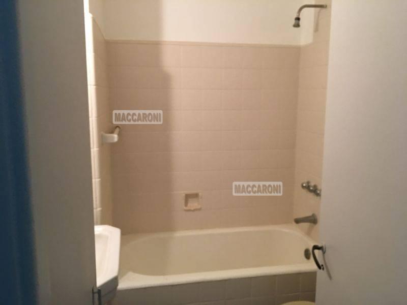 Ground-floor apartment at the front in Villa Santa Rita. It has a separate bedroom at the front, a living area, and a complete kitchenette. The unit includes individual radiator heating, a small patio with a laundry area, and a building pool.