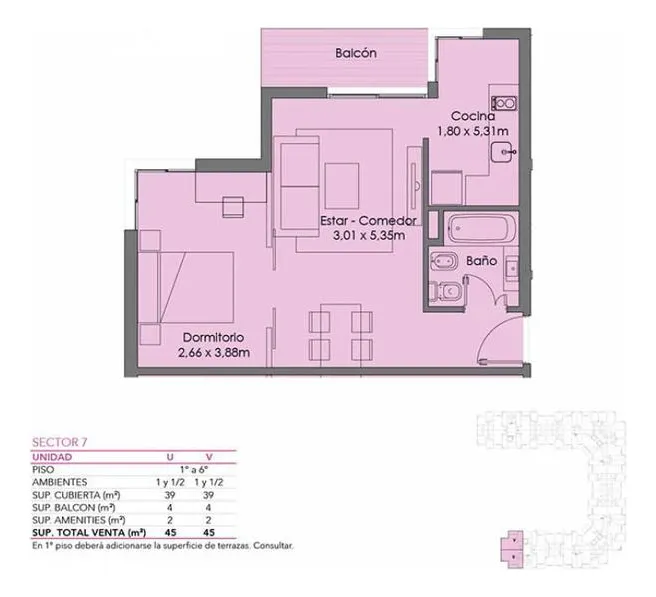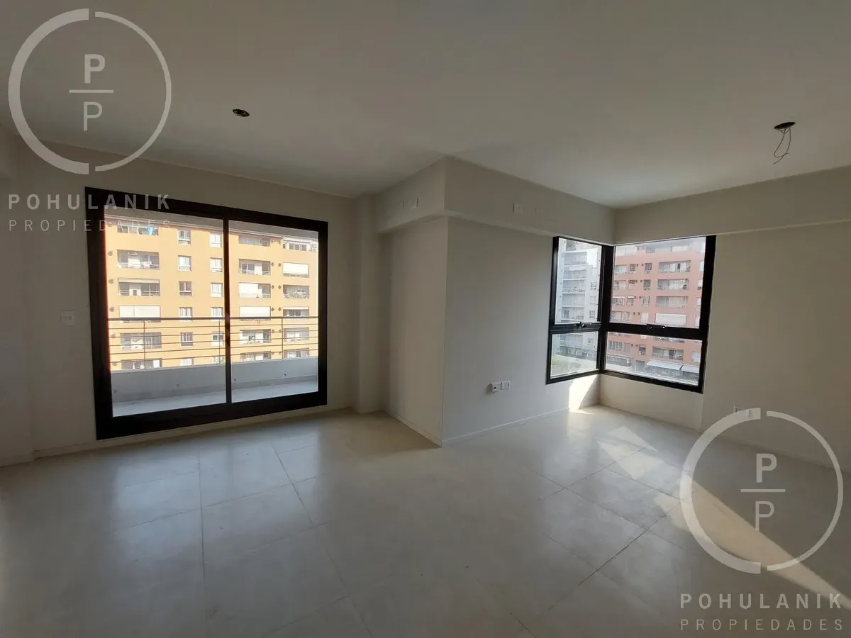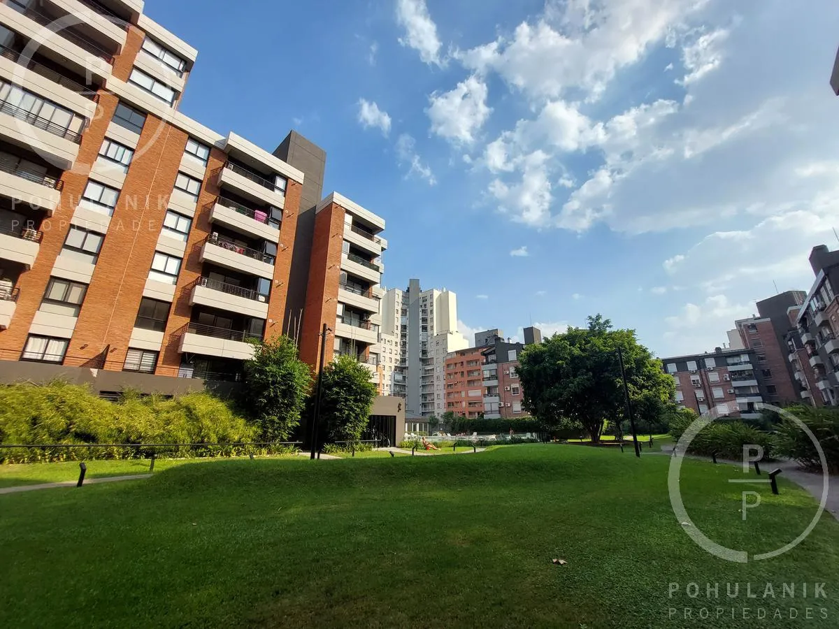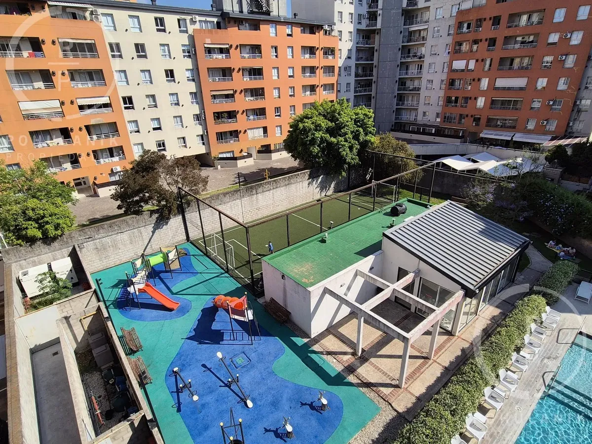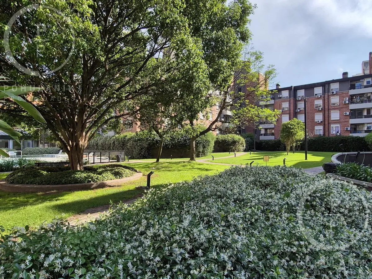 Furnished studio apartment of 1 bathroom in Villa Santa Rita, in Las Fresias Garden. The layout allows it to be divided into 2 rooms with natural light, including a living-dining area with balcony access and a separate kitchen. It has space for a sleeping area and views of the gardens and pool. Rent does not include building fees, utilities, or ABL.