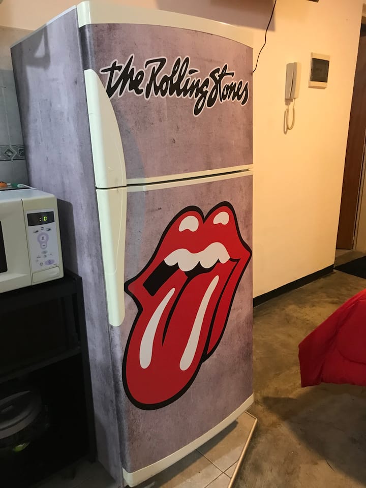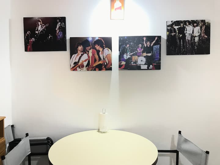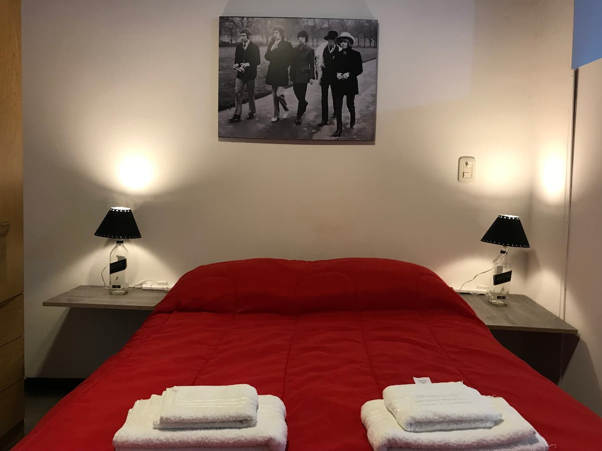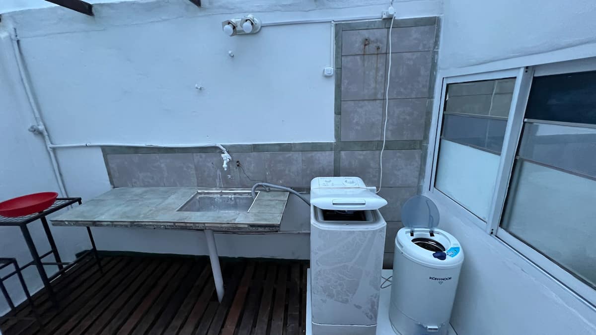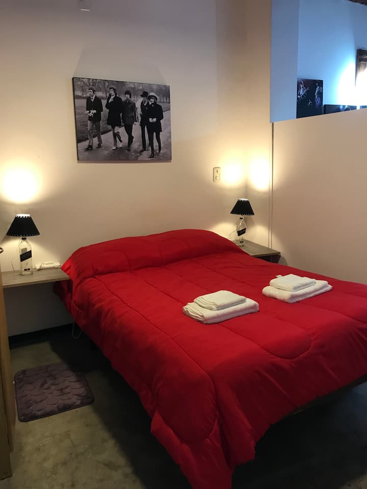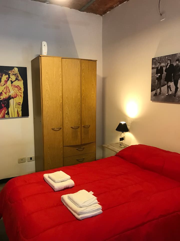 The listing is for a one-bedroom themed loft apartment in Villa Santa Rita. It is described as 50 metres from public transport, with nearby references including Diego Armando Maradona Stadium (600 metres), Maradona’s former home and museum (10 blocks), the open-air shopping centre in Flores (15 blocks), the Faculty of Agronomy (15 blocks), the Metrobus to Palermo (8 blocks) and Roff Hospital (20 blocks). The apartment is stated to have a shared terrace and shared-use washer and dryer. Parking is