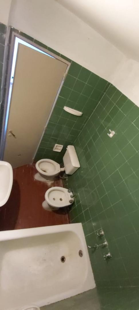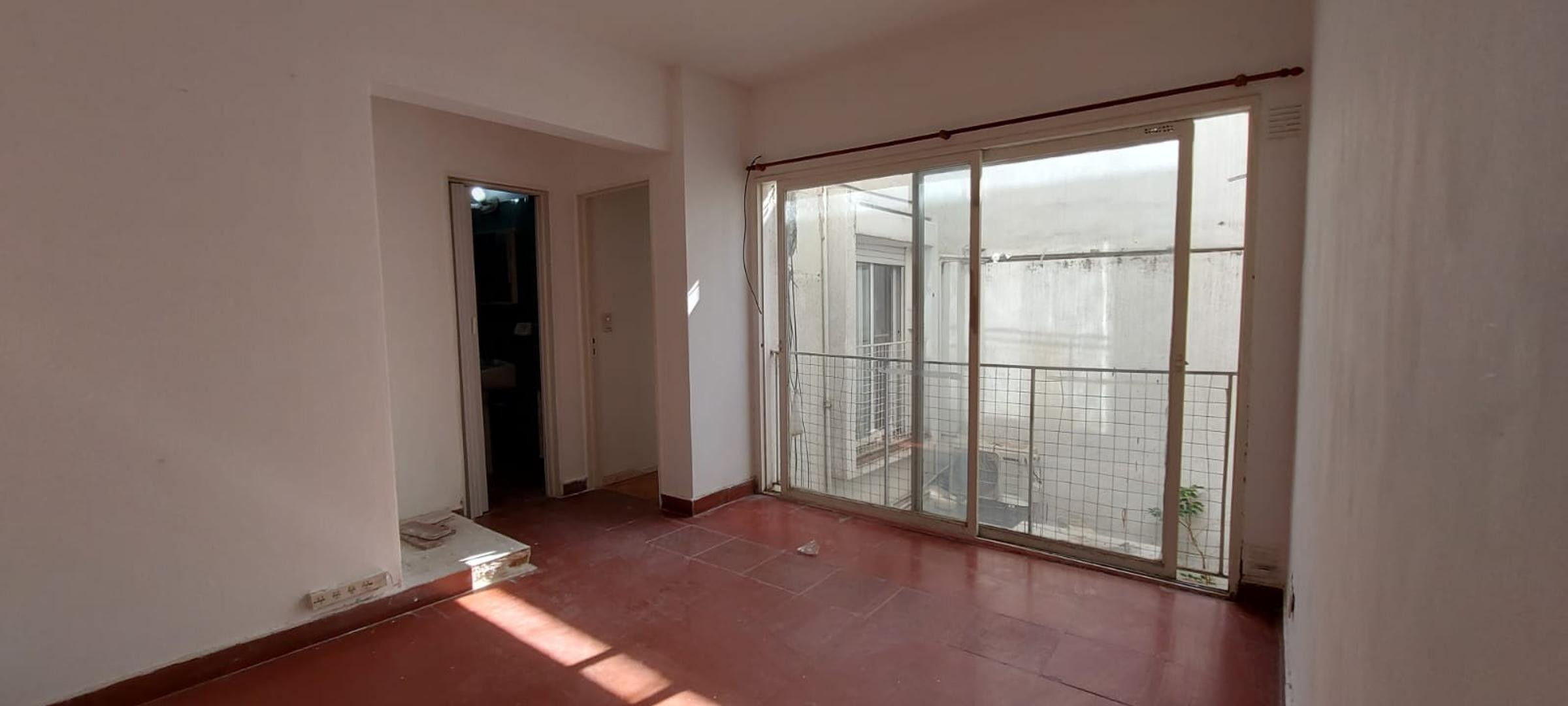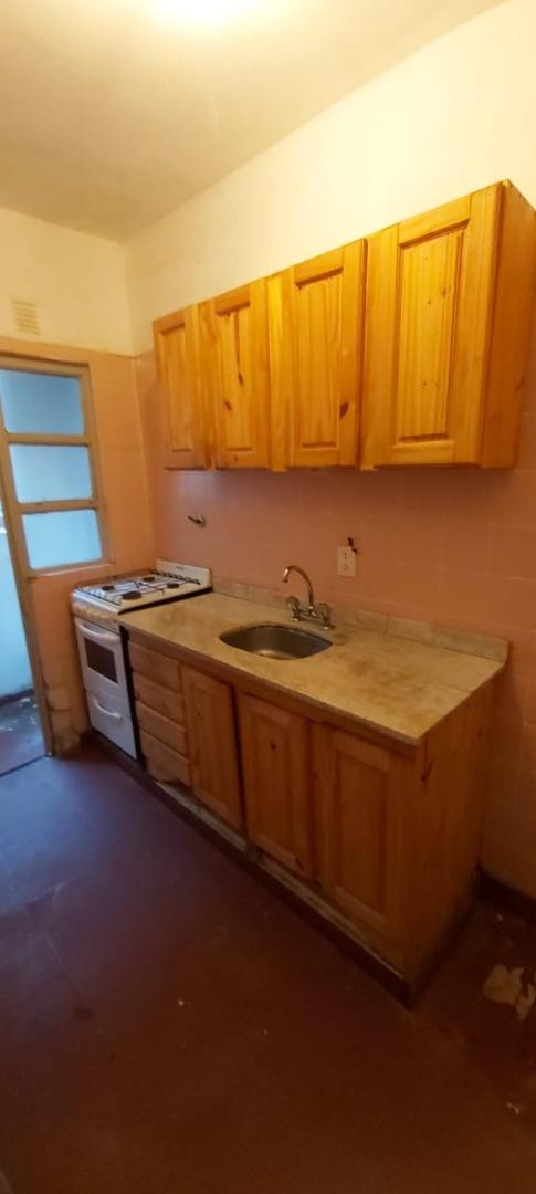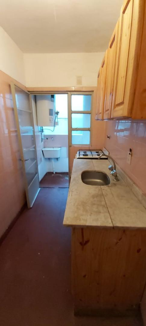 Two-room apartment for rent in Villa Urquiza. It has 1 bedroom with built-in closet, a separate kitchen with balcony and laundry area, a living-dining room, and a full bathroom. Pets are accepted.