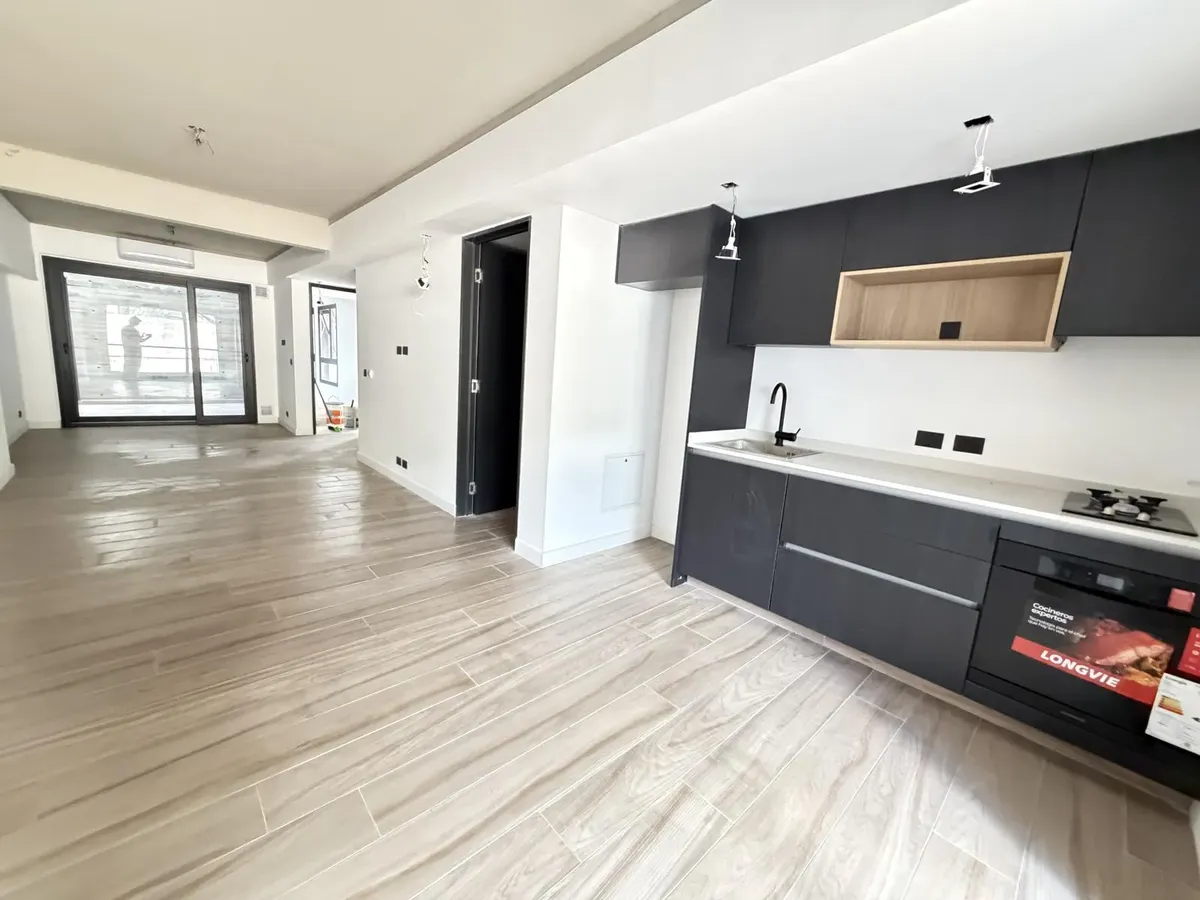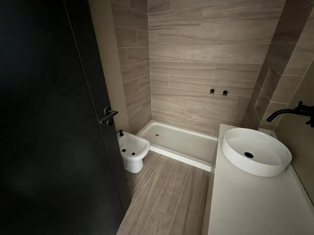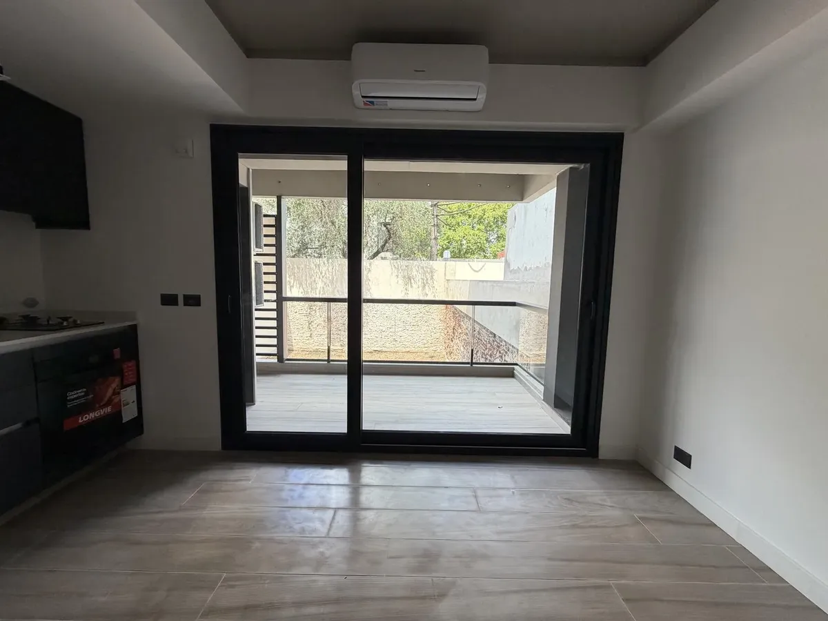 Divisible studio apartment for rent in Villa Urquiza, with 1 bedroom configuration. The unit has double-glazed (DVH) PVC window frames and individual radiant floor heating, plus a dual boiler for hot water and heating. It includes a gas cooktop and electric oven, a washing-machine connection, and pre-installation for split air-conditioning units. The building has LED lighting in common areas and bicycle parking. The rental is subject to a 2-year contract with quarterly updates based on IPC; a re