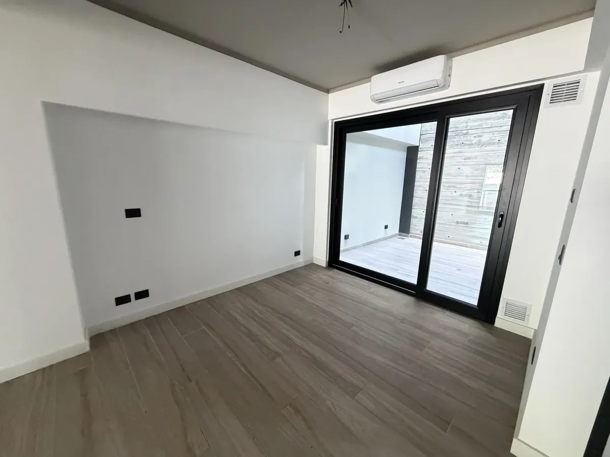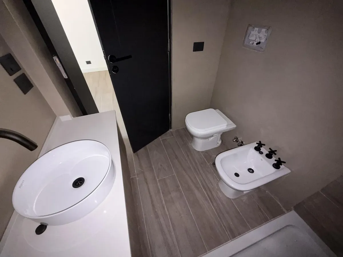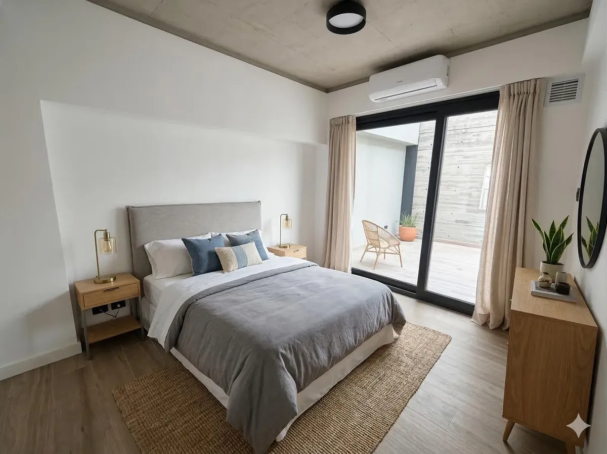Divisible studio apartment for rent in Villa Urquiza, with 1 bedroom configuration. The unit has double-glazed (DVH) PVC window frames and individual radiant floor heating, plus a dual boiler for hot water and heating. It includes a gas cooktop and electric oven, a washing-machine connection, and pre-installation for split air-conditioning units. The building has LED lighting in common areas and bicycle parking. The rental is subject to a 2-year contract with quarterly updates based on IPC; a re