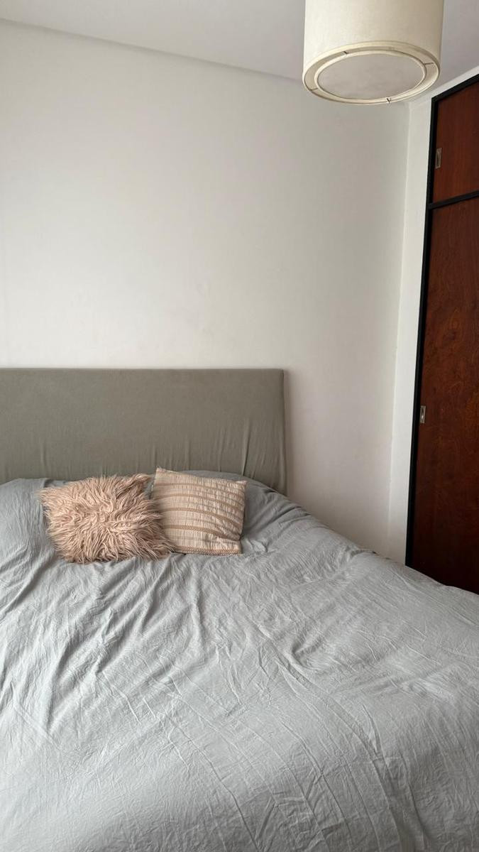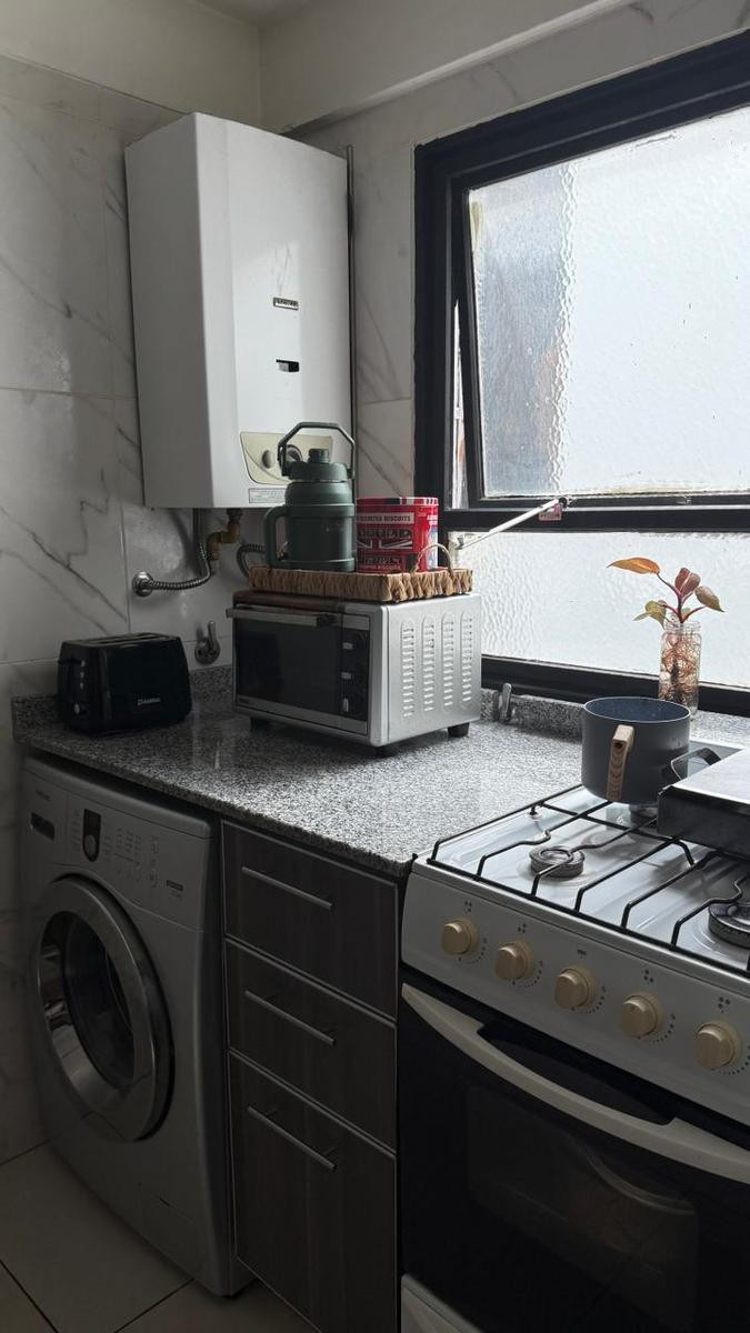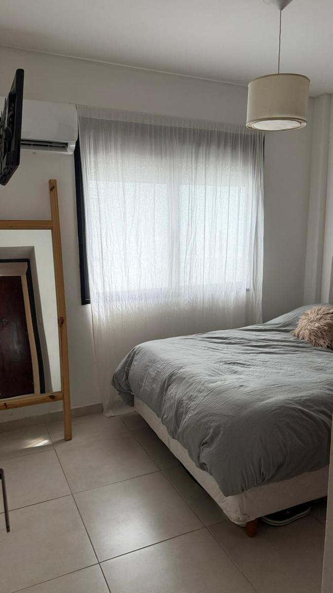 Two-room apartment with a living-dining room, bedroom with air conditioning, full bathroom, and an integrated kitchen with a laundry area. Building fees are $80,000 per month, with AySA charged together with the expensas, and ABL is $11,000. C.U.C.I.C.B.A. 1580.