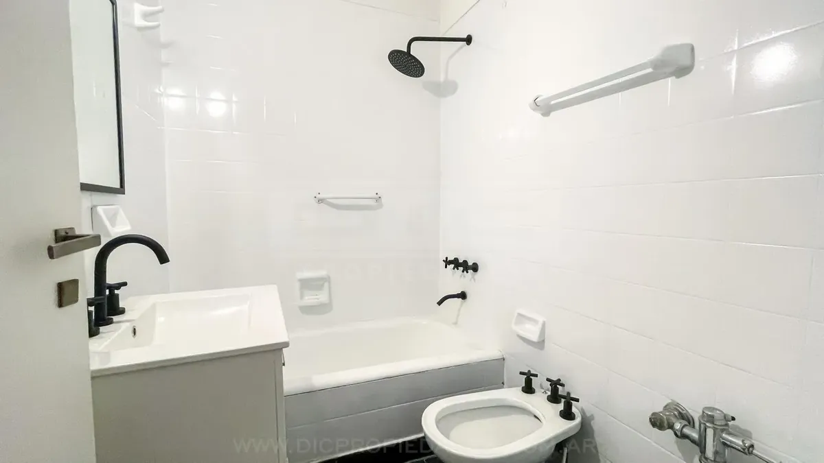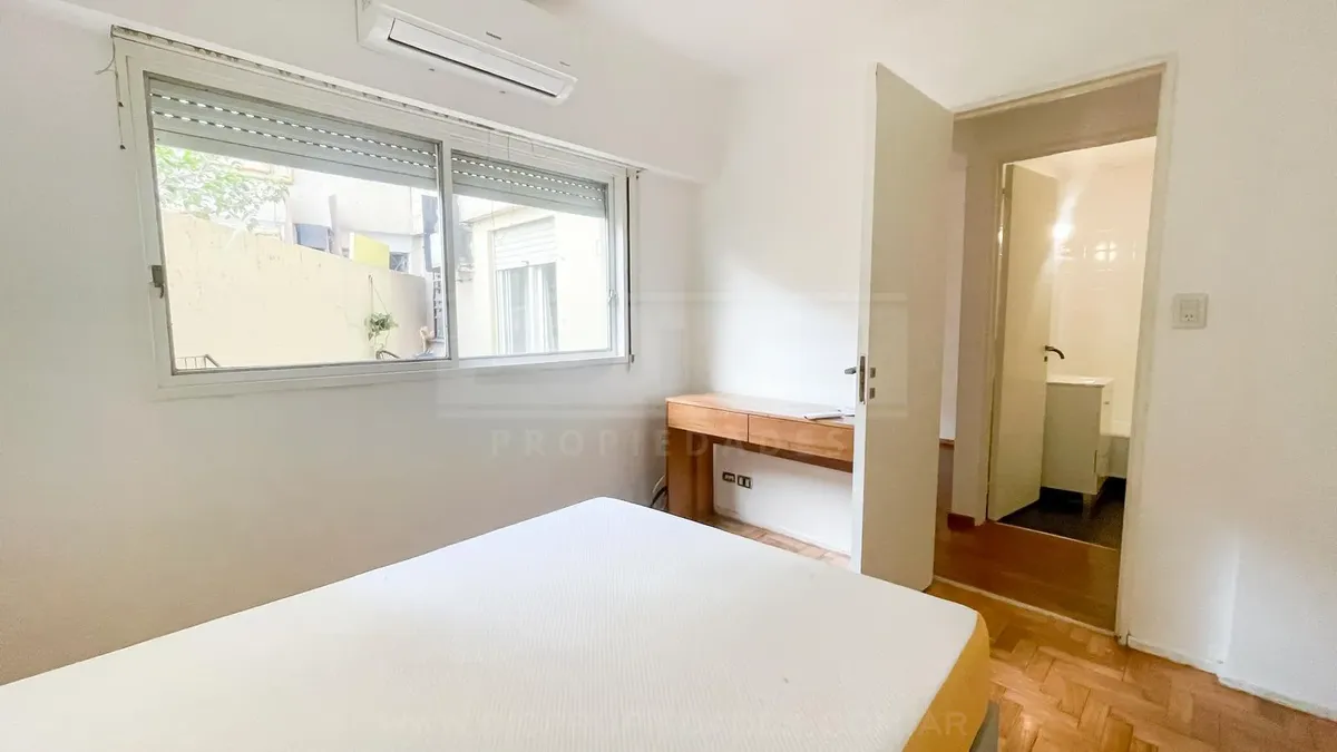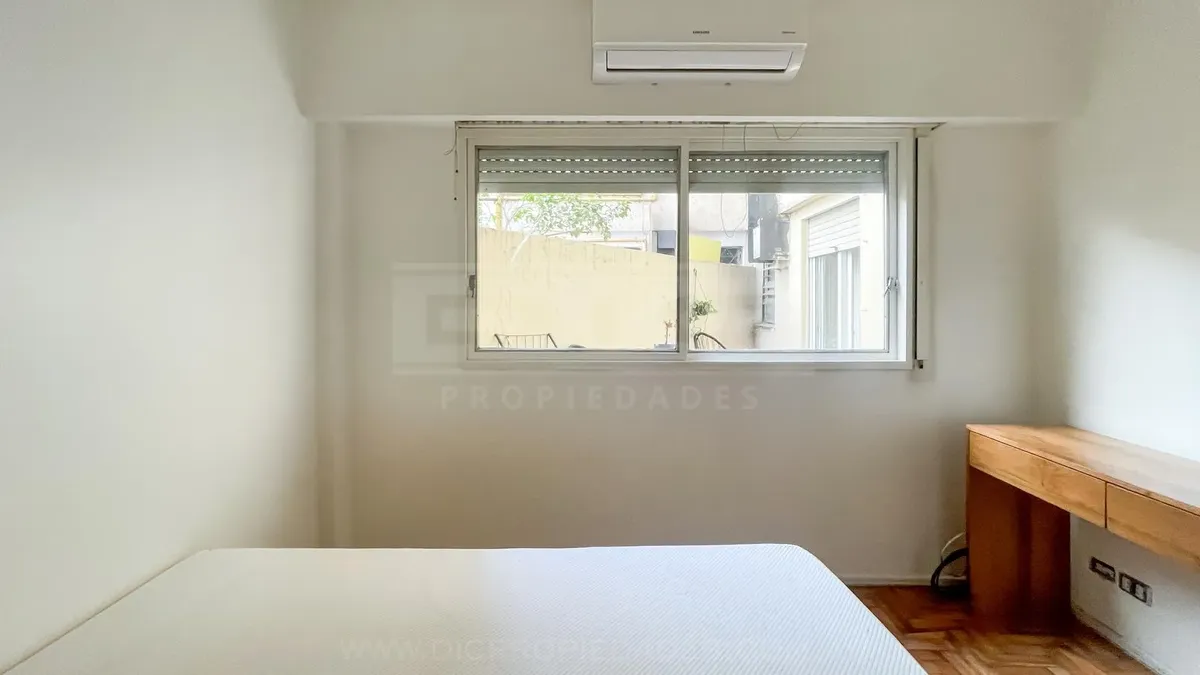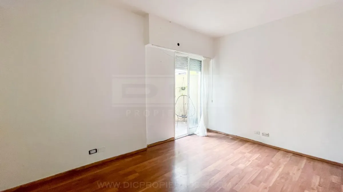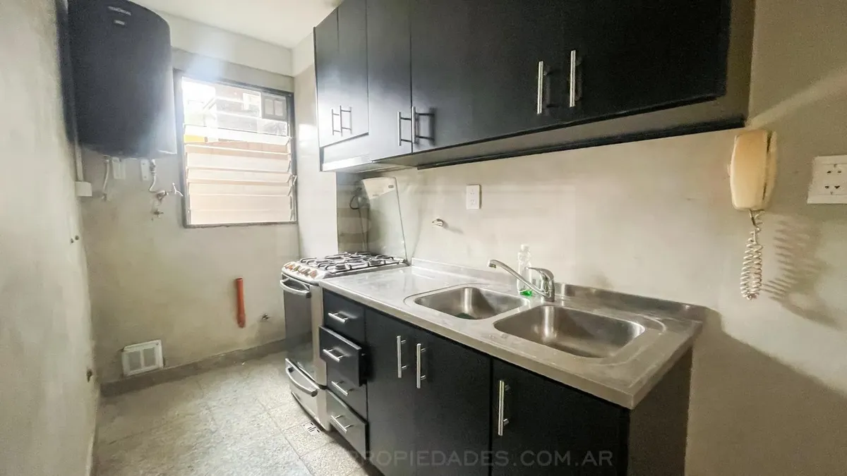 Two-room apartment with 1 bedroom in Villa Urquiza. Fully refurbished and suitable for professional use. Separate kitchen with an integrated laundry area; living-dining room with access to a private patio, plus a full bathroom with shower. Bedroom has floor-to-ceiling built-in wardrobe and a small office area; near Av. Triunvirato with access to public transport and local shops.