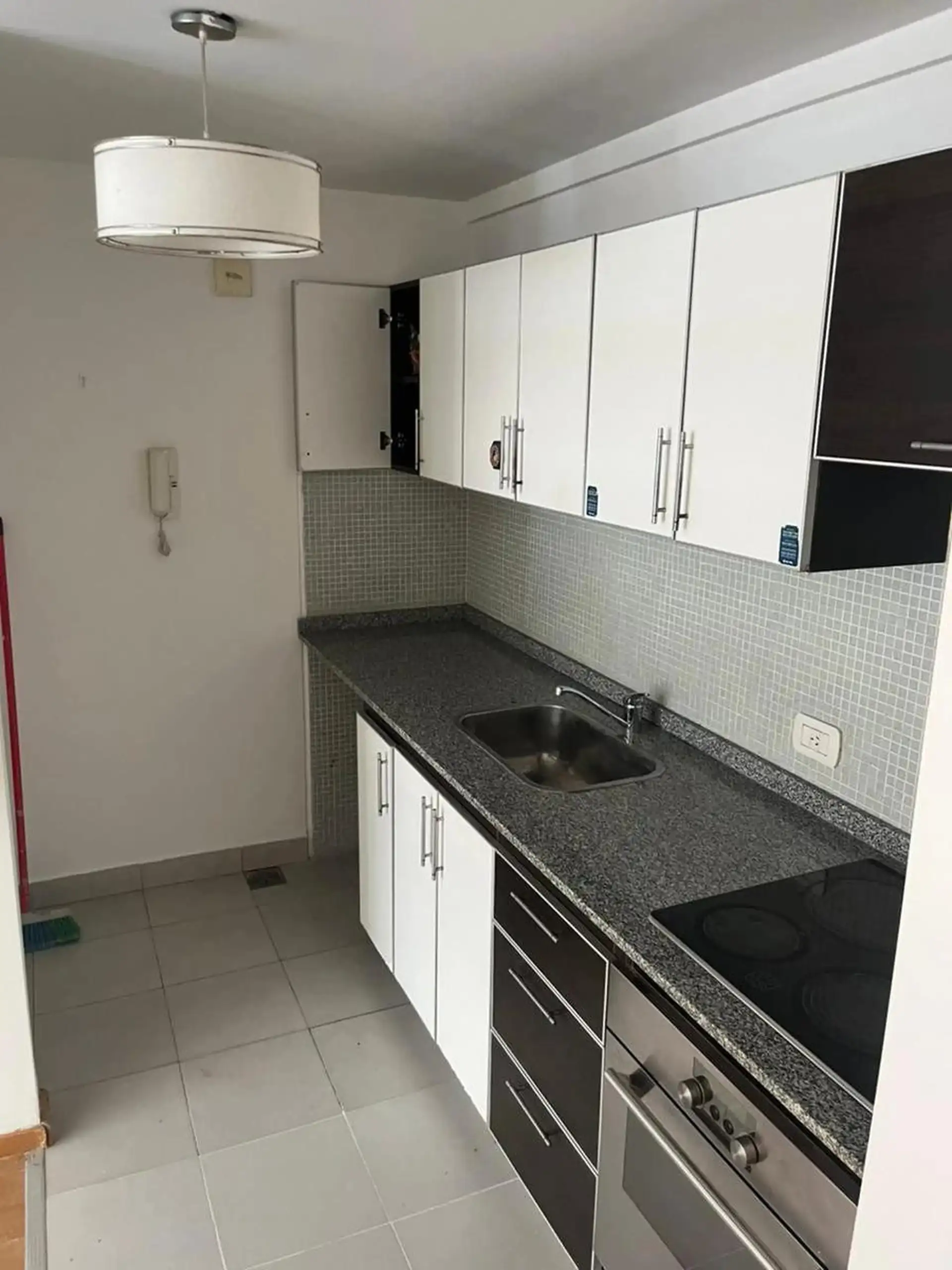 One-bedroom apartment for rent on Aizpurúa street between Tomas Alberto Le Breton and Avenida Congreso, Villa Urquiza. Located on the 1st floor, it is an interior-layout unit facing the south-west. It has a fitted kitchen with upper and lower cabinets, a toilet, a living-dining area, a bedroom with built-in wardrobe, and a full bathroom. Total area is approximately 45 m², with 40 m² covered. The apartment has a balcony and natural cross-ventilation. Building fees were approximately $250,000 as o