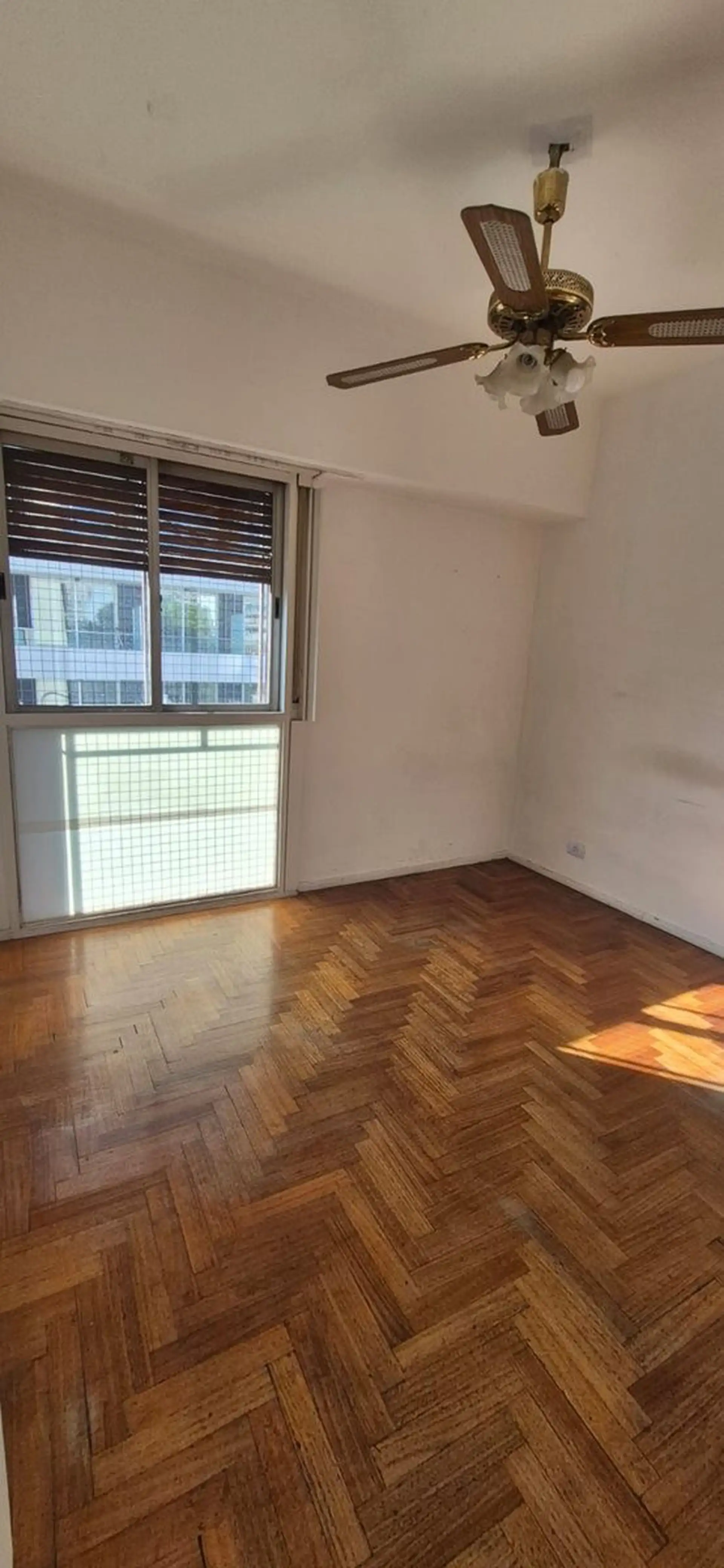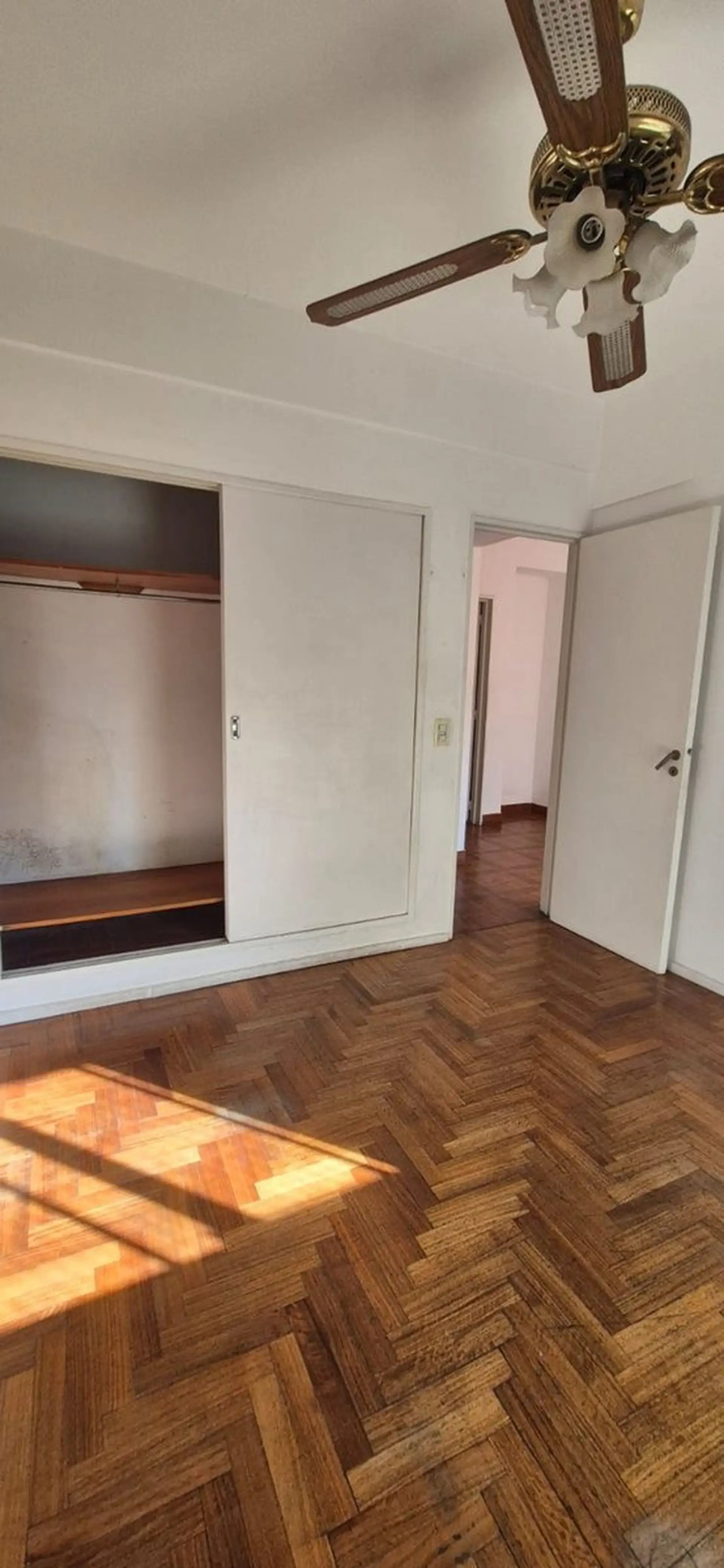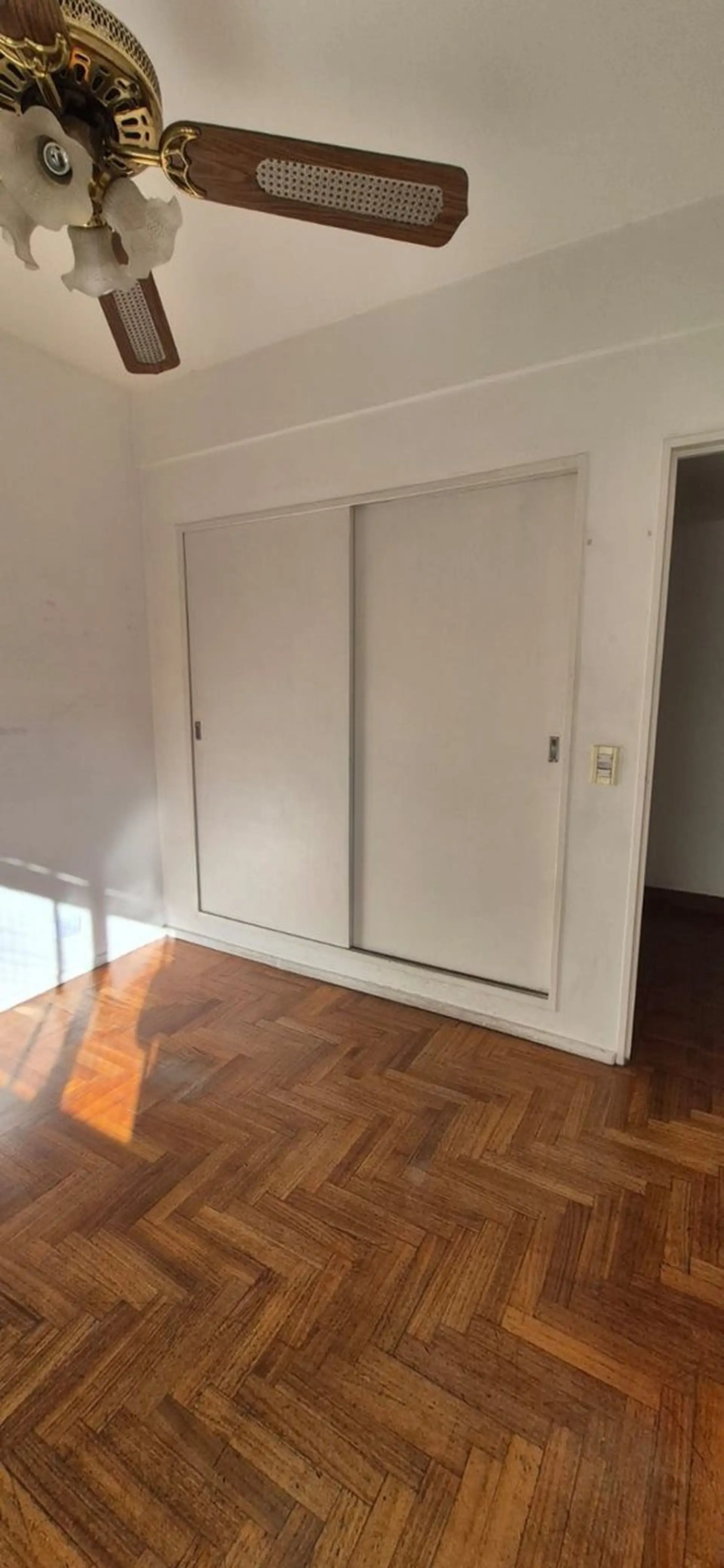 Two-room apartment in Villa Urquiza on Monroe and Bauness, on the 4th floor, northeast-facing. It has a living-dining room with balcony access, a separate kitchen, an independent laundry area, a bedroom with built-in wardrobe and drawers, and a full bathroom with a window. Rental terms state a monthly rent of $750,000, a 2-year contract, quarterly updates based on IPC, and a rental guarantee in CABA; the listing requires proof of income (last 3 payslips) and a security deposit of 1 month in US d