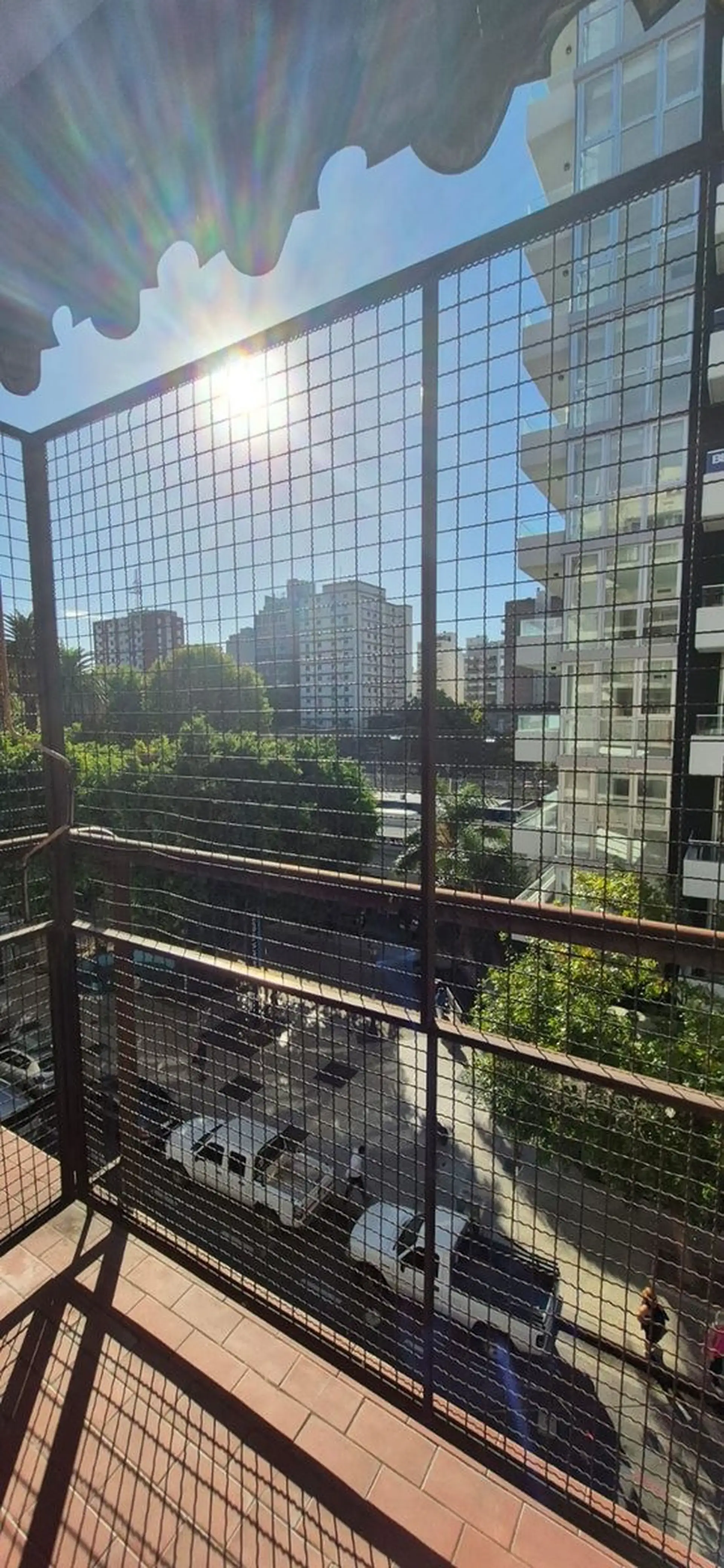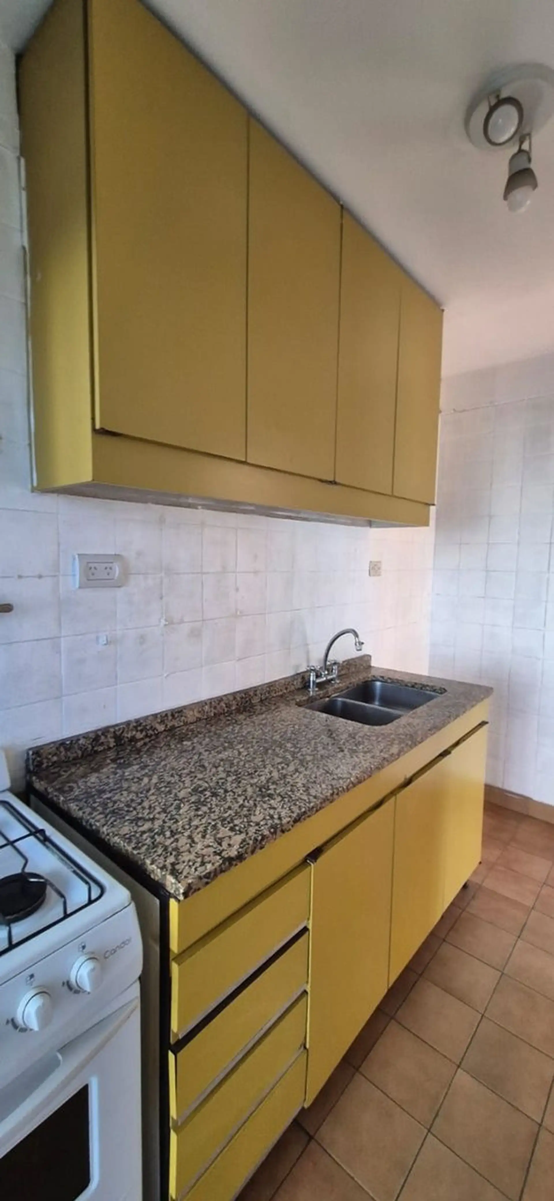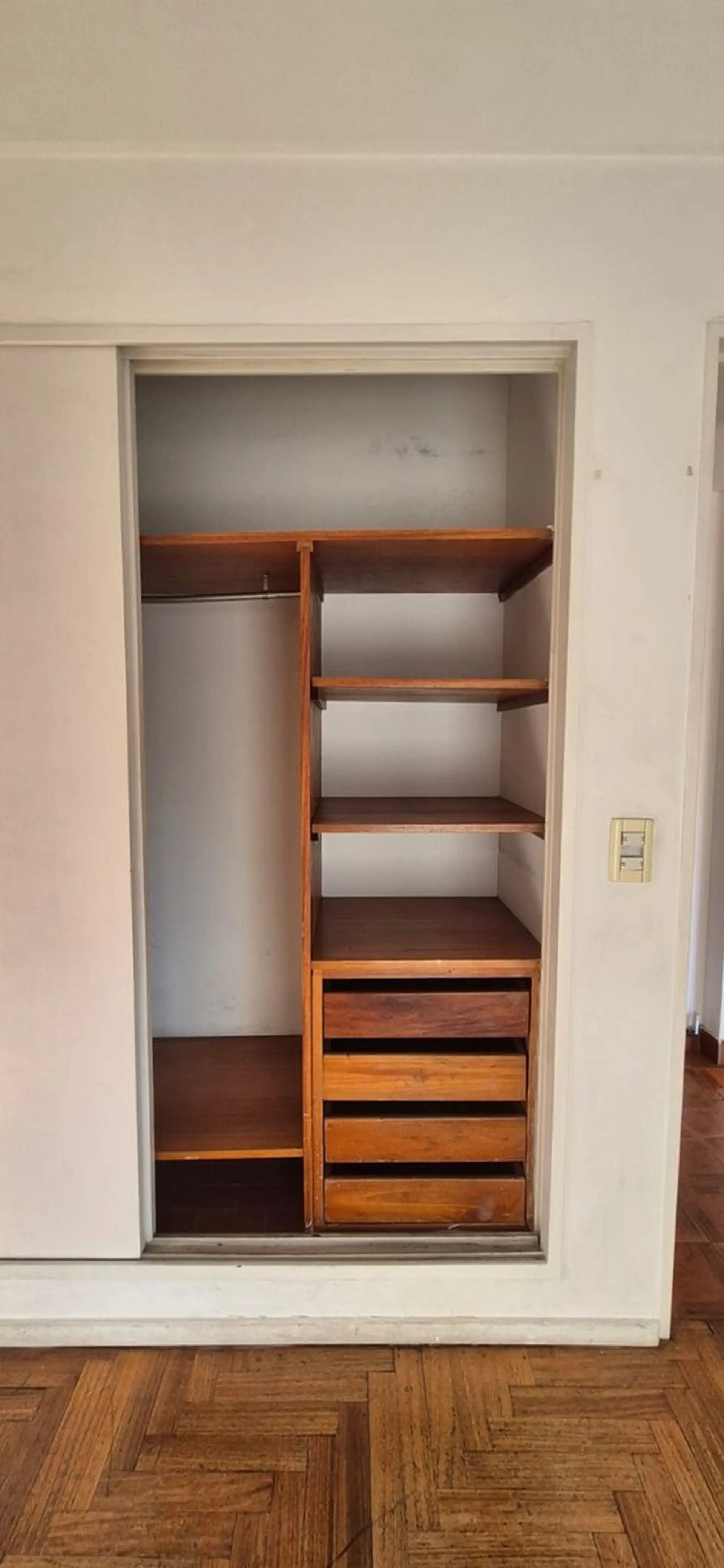 Two-room apartment in Villa Urquiza on Monroe and Bauness, on the 4th floor, northeast-facing. It has a living-dining room with balcony access, a separate kitchen, an independent laundry area, a bedroom with built-in wardrobe and drawers, and a full bathroom with a window. Rental terms state a monthly rent of $750,000, a 2-year contract, quarterly updates based on IPC, and a rental guarantee in CABA; the listing requires proof of income (last 3 payslips) and a security deposit of 1 month in US d