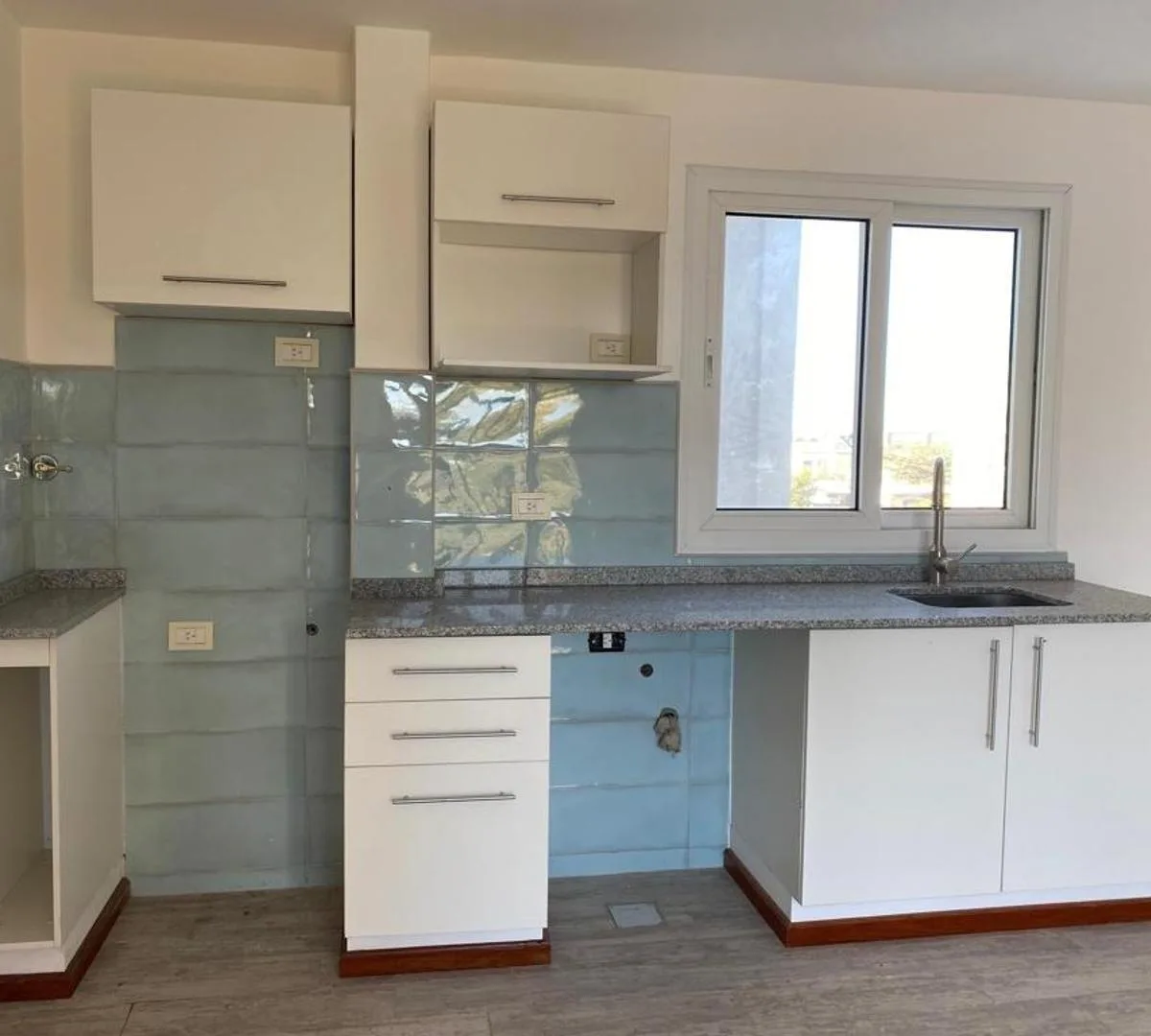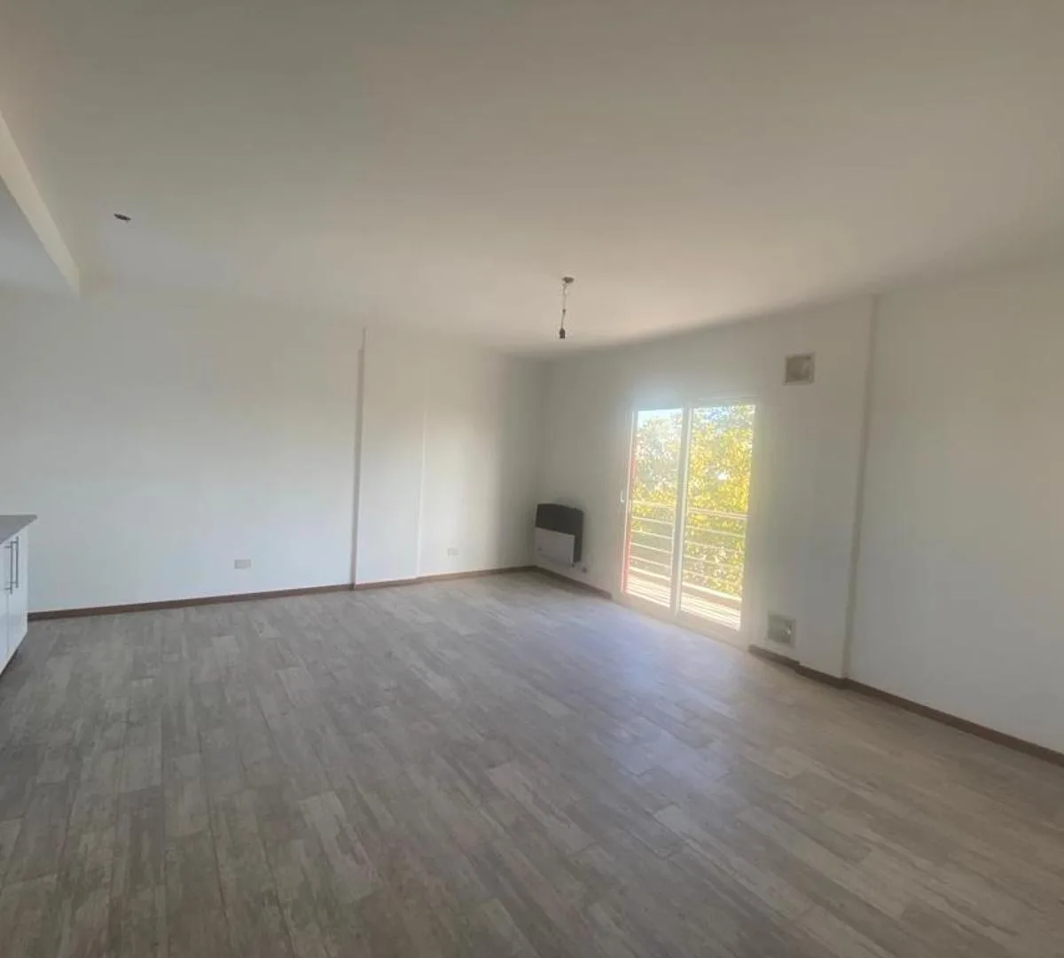 Two-room apartment for rent in Zárate, located in the city centre. The unit has a living-dining area with an integrated kitchen, a front street-facing balcony, one bedroom with built-in wardrobe and a full bathroom. There is heating by balanced draft, space for a washing machine, double-glazed windows and porcelain tile flooring; available utilities include electricity, drainage, gas and running water, plus video cable.