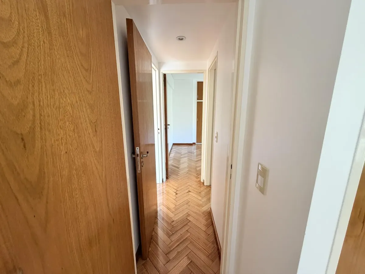 Three-room apartment for rent in Acassuso. The unit has a living-dining room with access to a continuous balcony facing northwest, plus two bedrooms with built-in wardrobes oriented to the southwest. There is a full bathroom and a reception toilet, and an independent kitchen with ample storage. The listing specifies no pets; rental contract is for 2 years with rent adjustments by IPC every 3 months, and entry requires an owner guarantee, income verification, 1 months’ rent in advance, and a secu