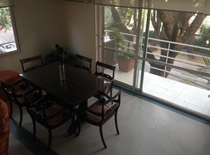 Apartment on a three-level layout (duplex-style triplex) on Av. Libertador in Acassuso, San Isidro. Refurbished 10 years ago, street-facing, with a covered balcony and terrace. The ground floor includes a living and dining area, a guest toilet, and an open-plan kitchen; the 2nd level has 2 en-suite bedrooms with 2 full bathrooms. The 3rd level includes a playroom/3rd bedroom with access to the balcony-terrace and a covered grill (parrilla). Features include 2 assigned parking spaces, a storage r