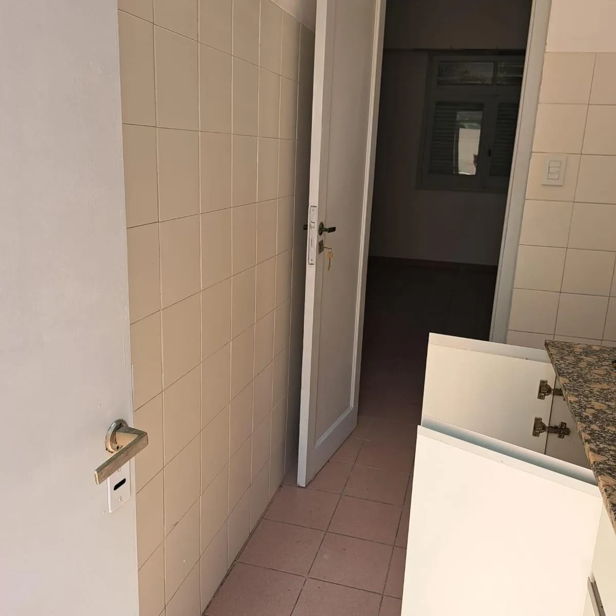 Three-room apartment with a living-dining room, two bedrooms, a bathroom, a kitchen and a laundry area. The listing states a two-year contract with quarterly adjustments using IPC.