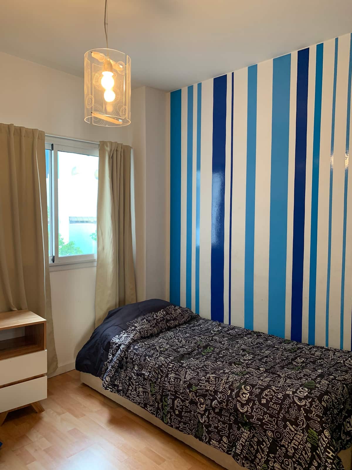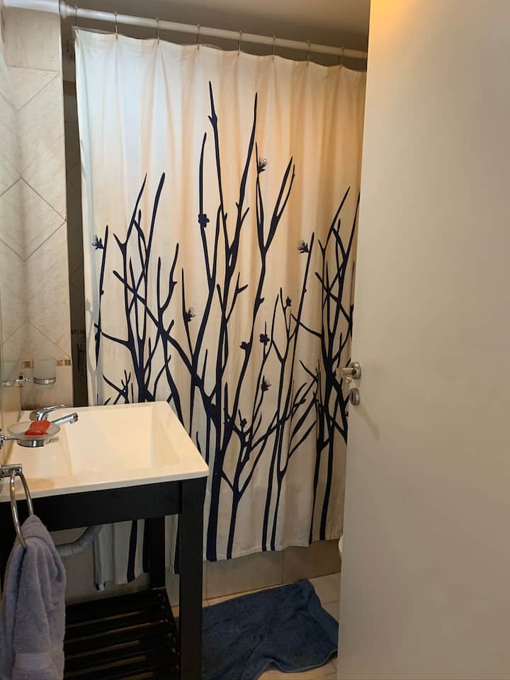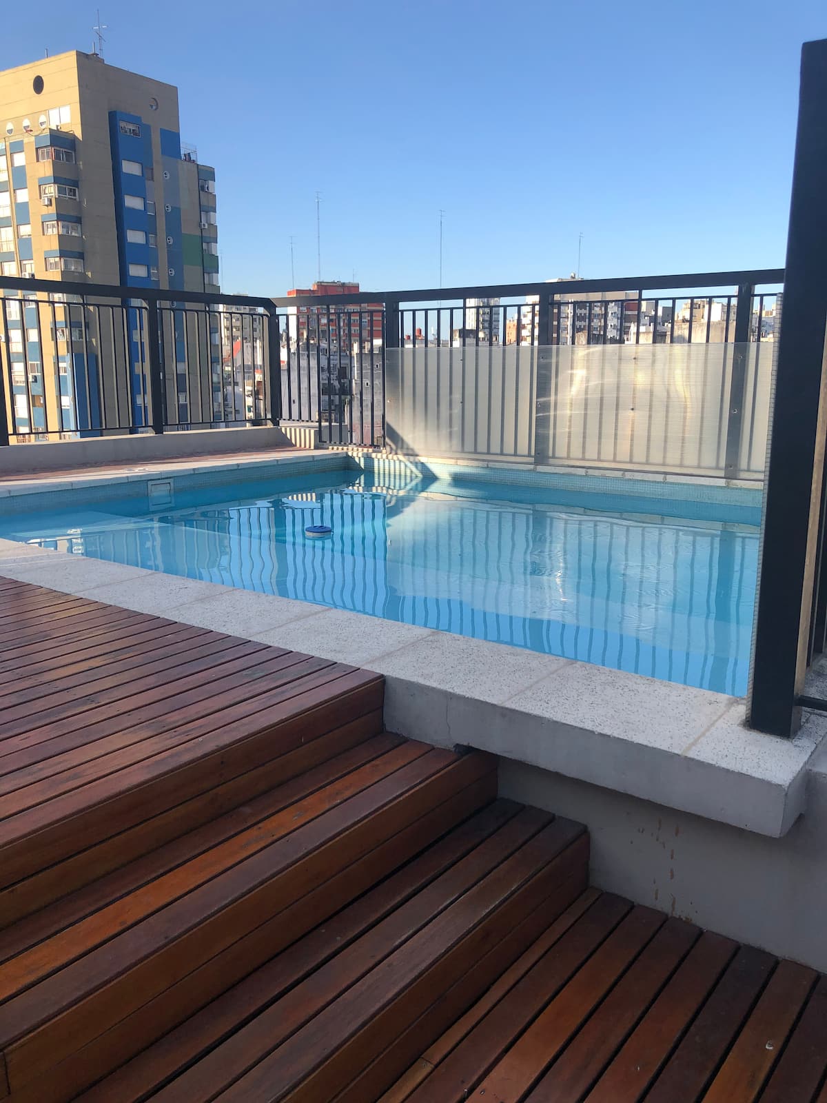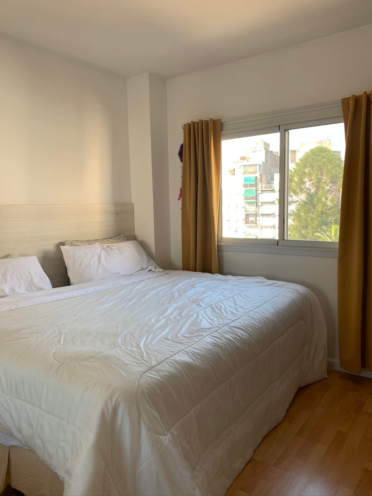Three-room apartment with 75 m², located on the street-facing side opposite Parque Centenario. It has a balcony and a view over the block’s green area. The building includes a pool with year-round access, a gym, a laundry room, and a communal room with a grill. Building fees, common-space access rules and any additional charges for longer stays are subject to regulation.