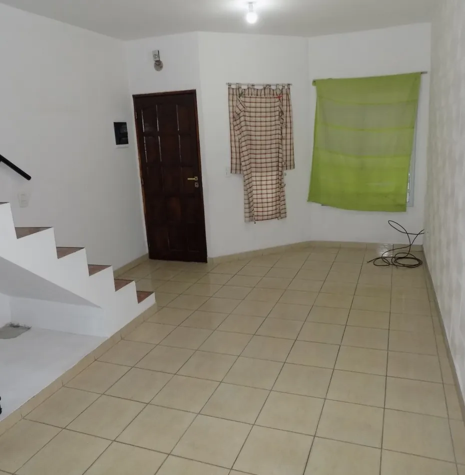 Front-facing duplex apartment with private entrance, arranged over two floors. On the ground floor it has a living-dining area, integrated kitchen, toilet, patio and laundry area. Upstairs there is a distribution hall, 2 bedrooms and a full bathroom, with electricity, natural gas and running water connected. Contract duration is 24 months with automatic quarterly rent updates based on the IPC; the guarantee type is to be agreed.