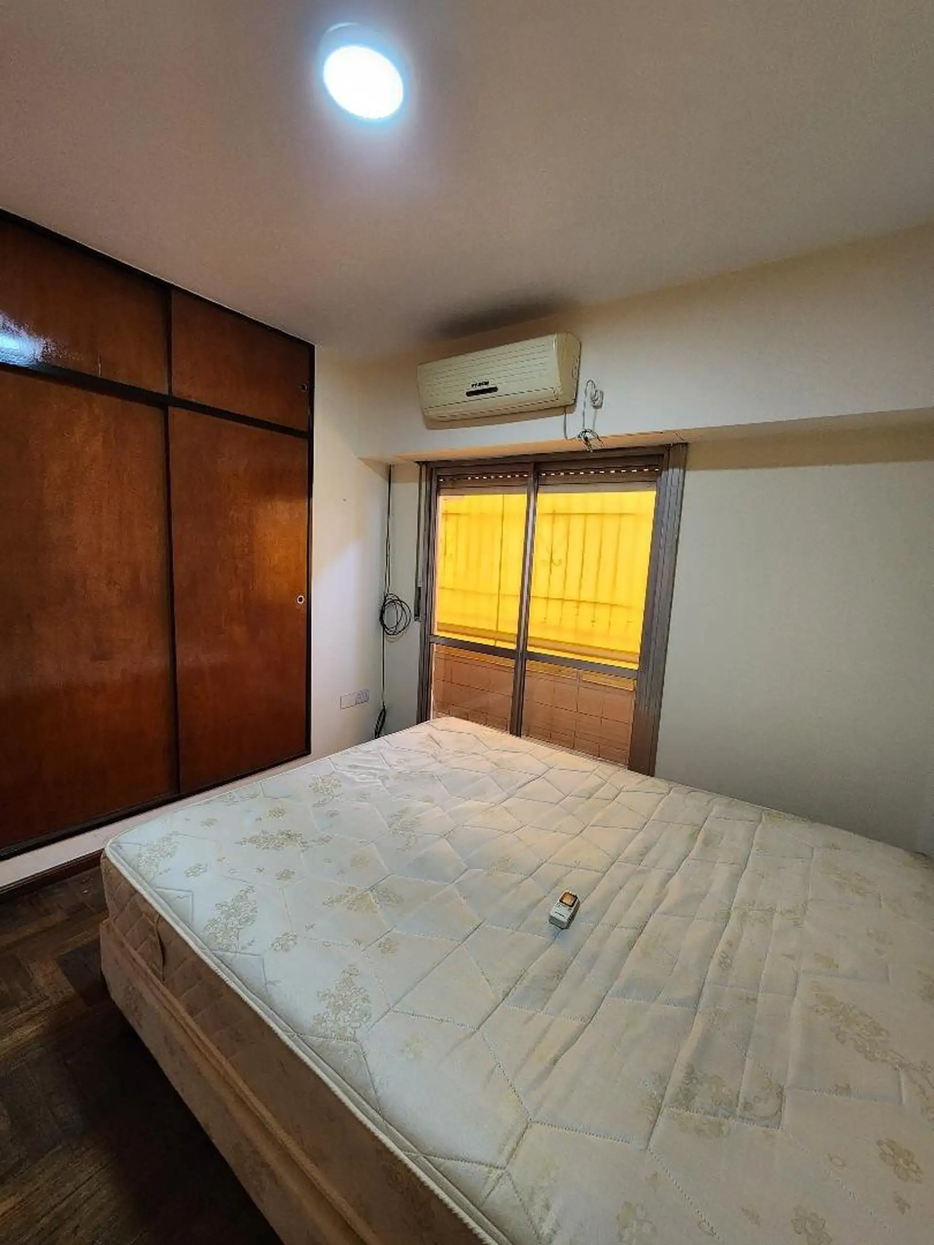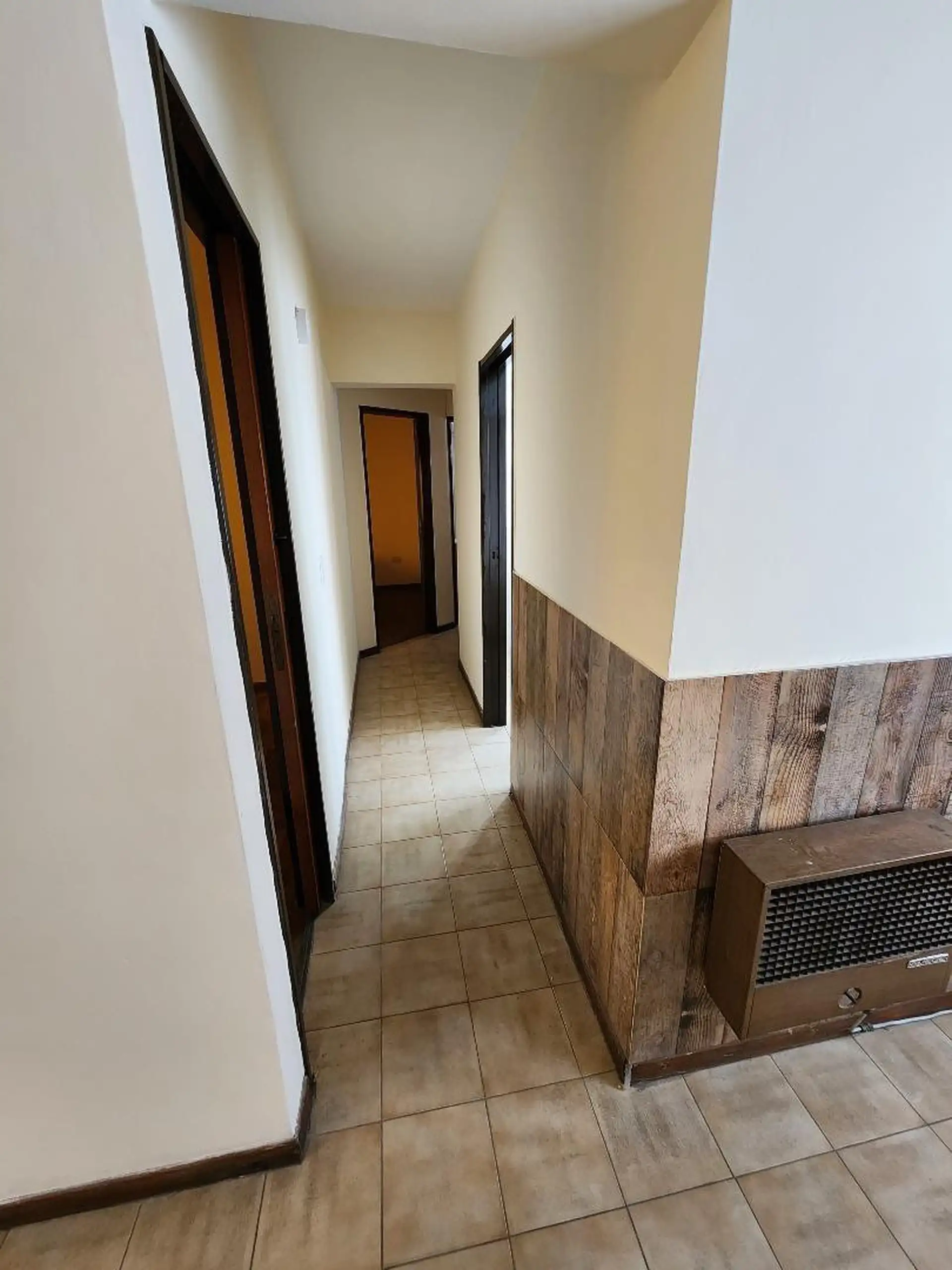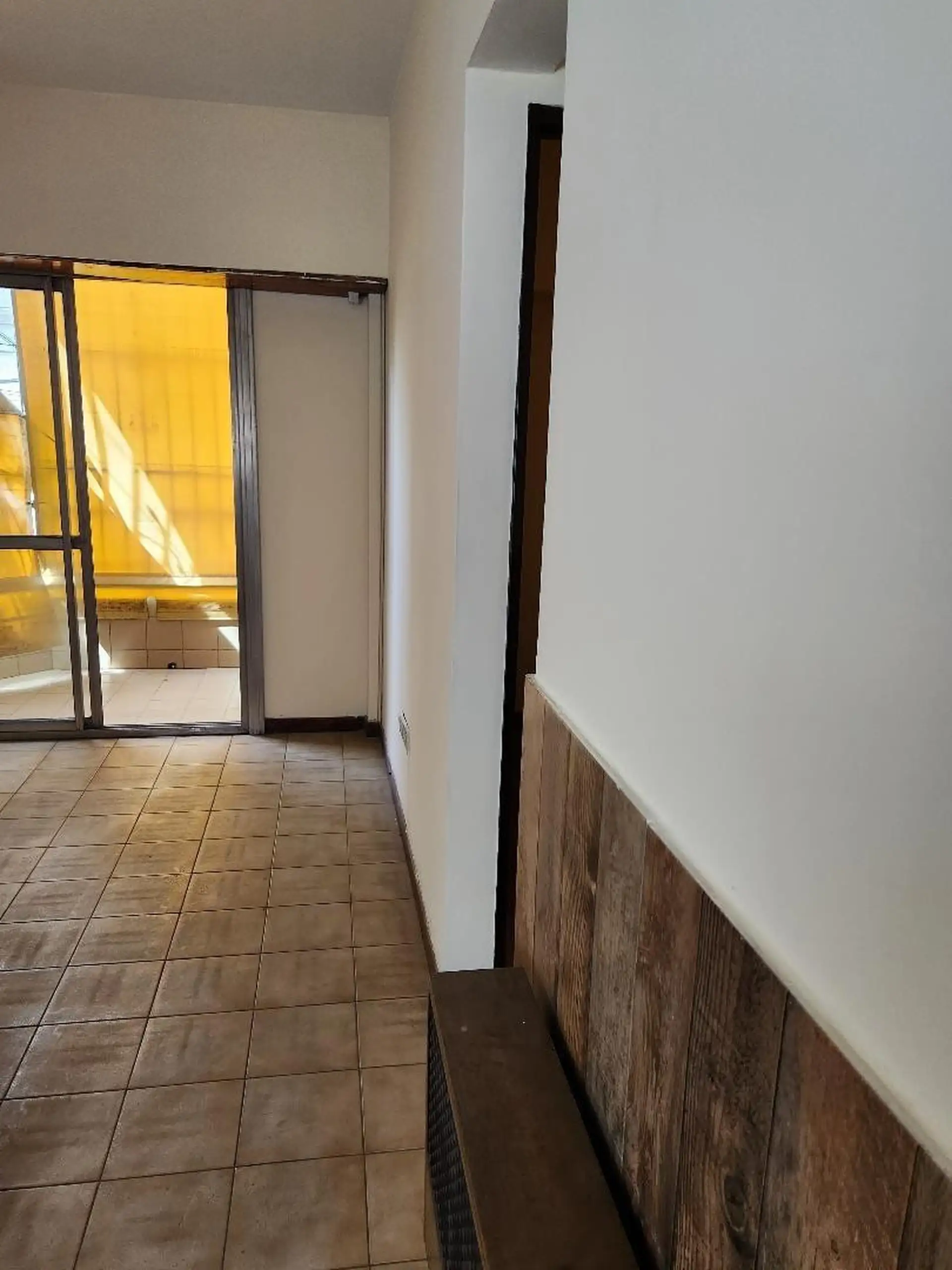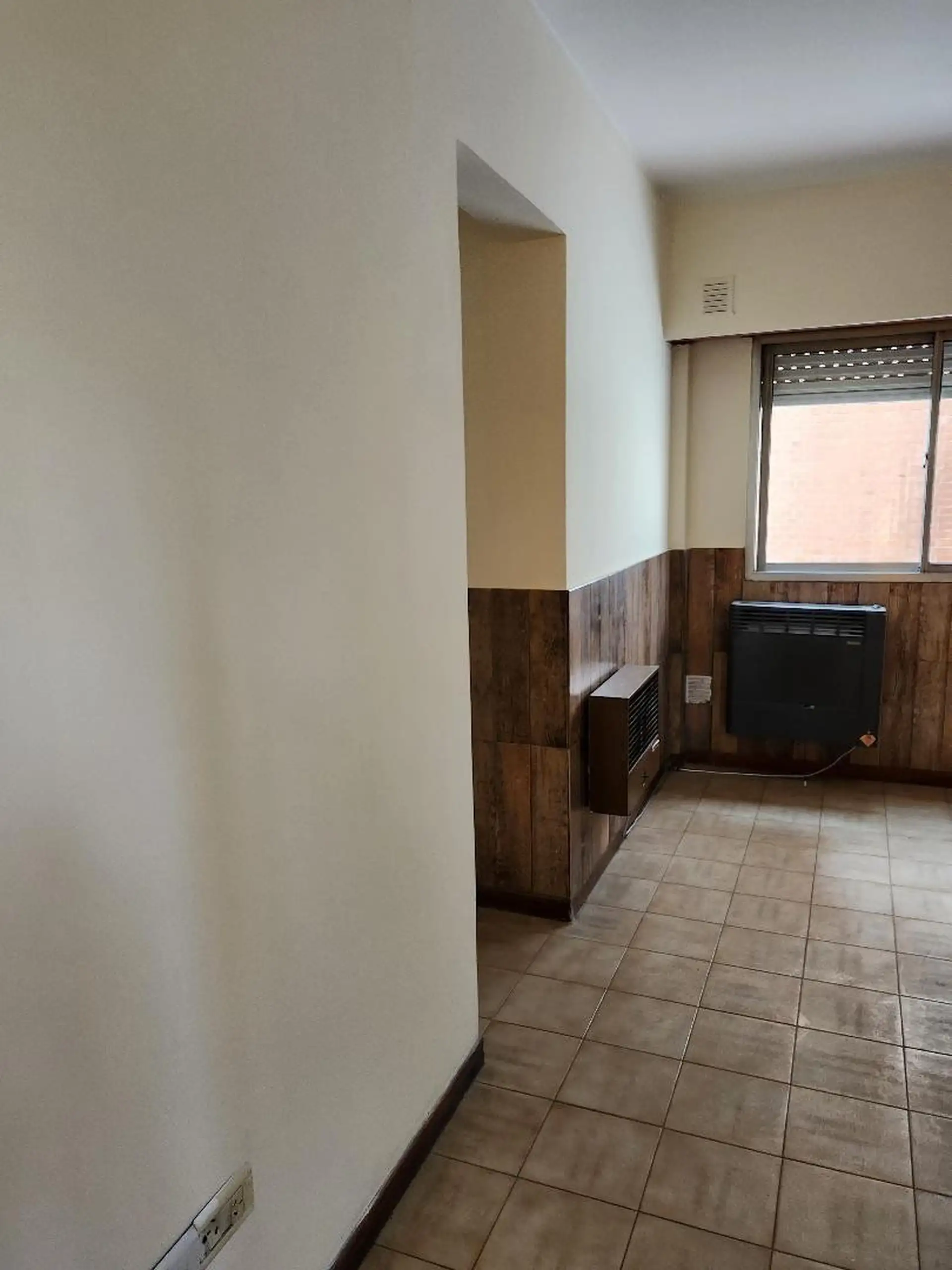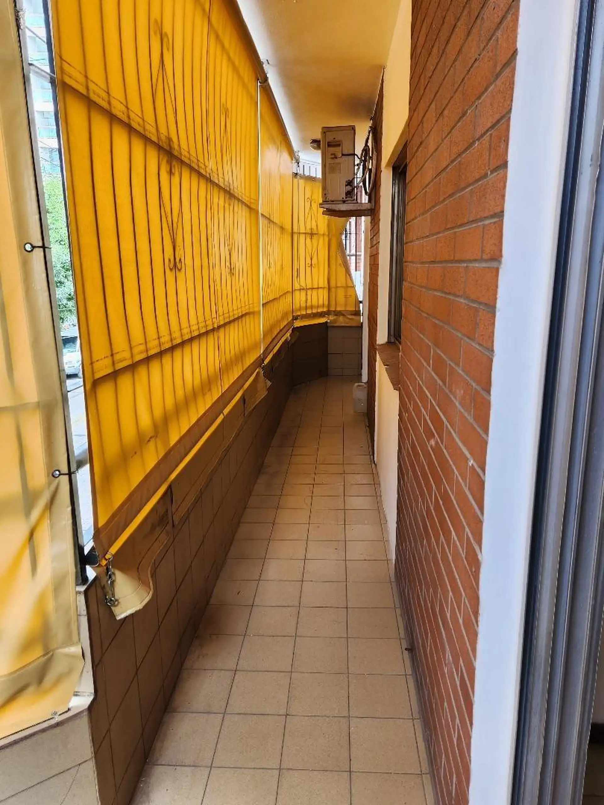 Upper-floor apartment with a living-dining room featuring ceramic flooring and a heater. It has a front long balcony enclosed with 0.90 x 7.80 m railings, an installed kitchen with a countertop and base cabinets, a water heater (calefón), and a connection for a washing machine. There are 2 bedrooms with parquet flooring and fitted closets (3 x 3 m and 2.60 x 2.80 m), plus a fully fitted bathroom. Rent is ARS 700,000 plus electricity, gas, water, TSG, and building fees; rental requires a rental g