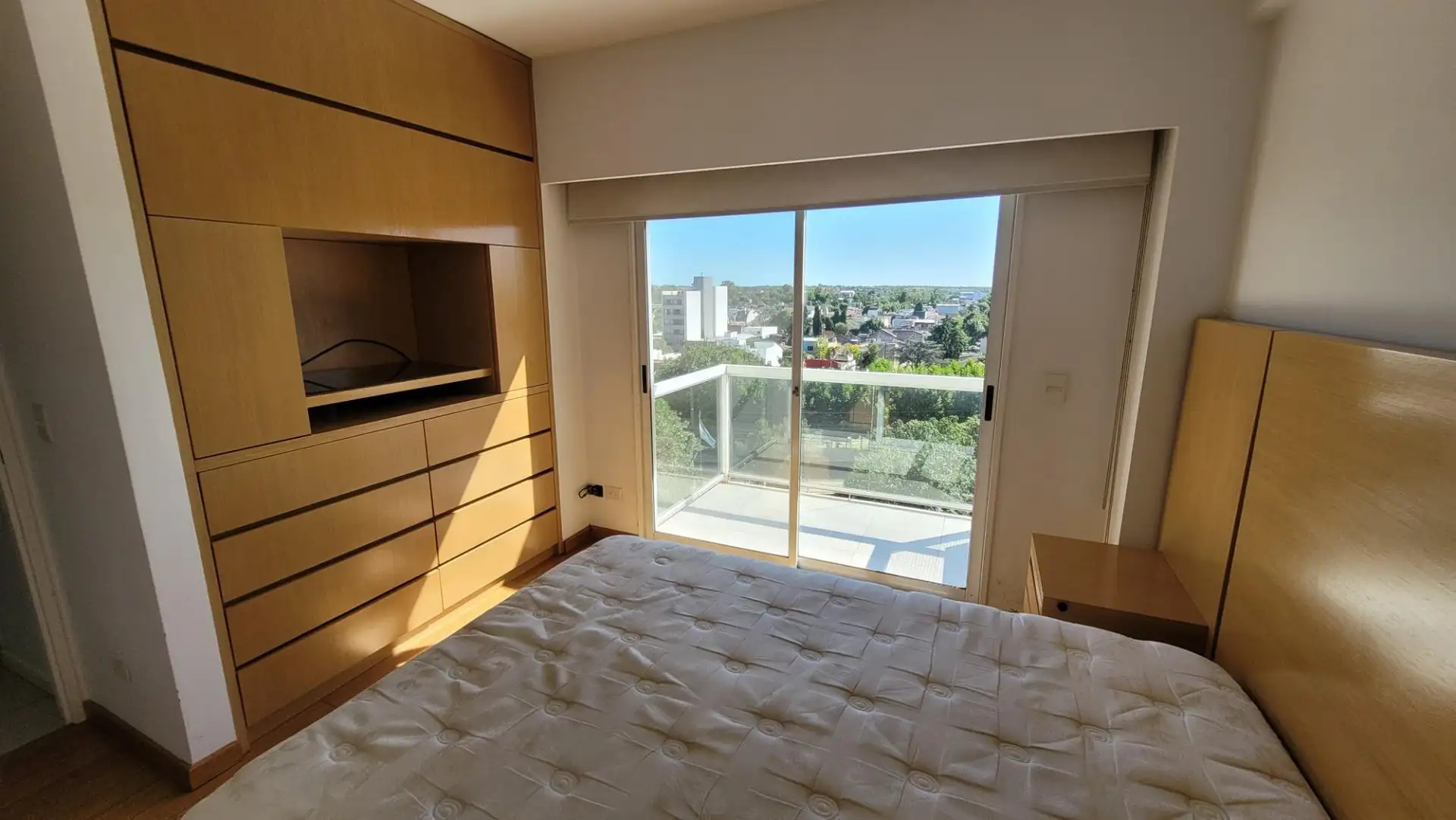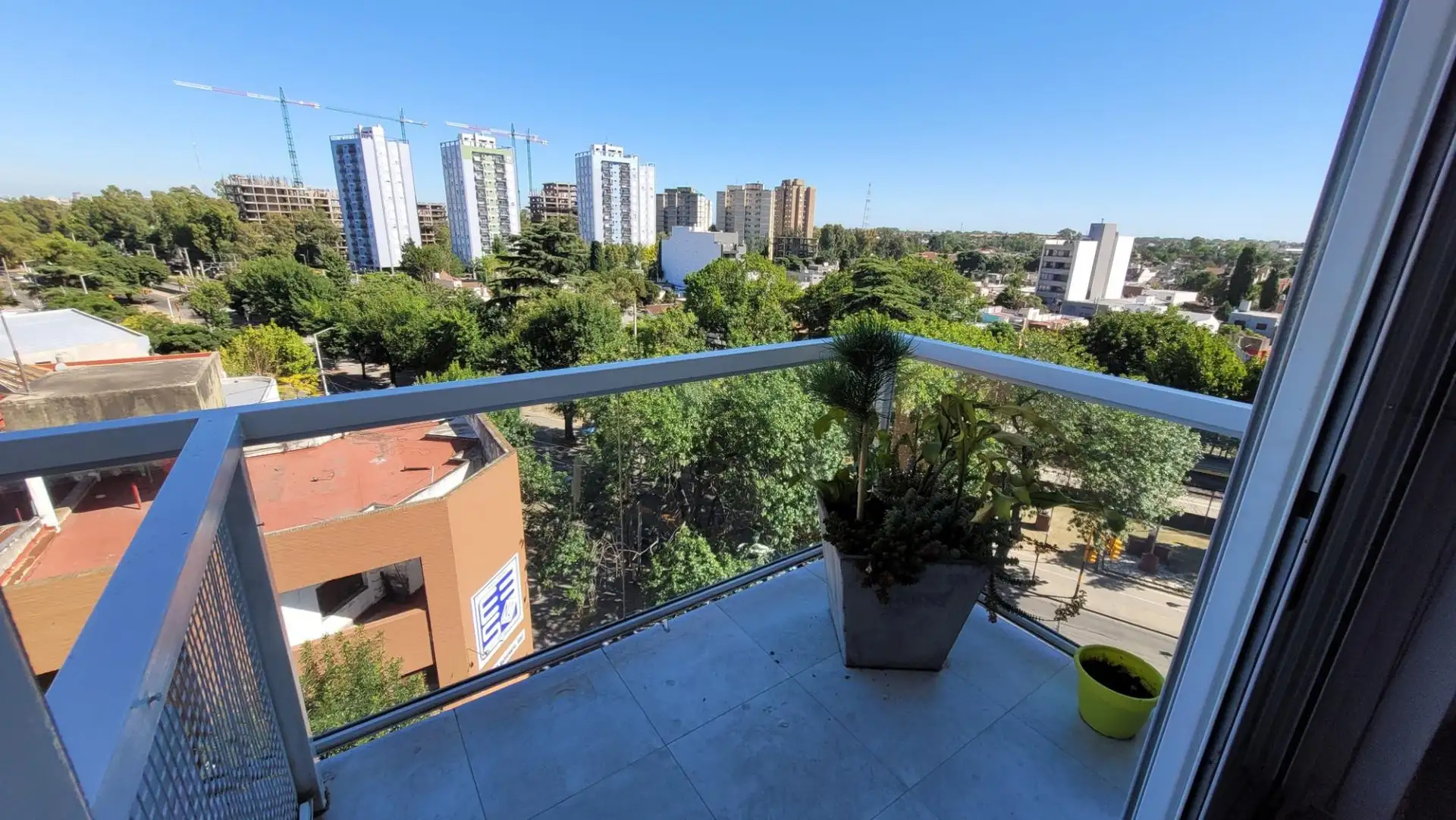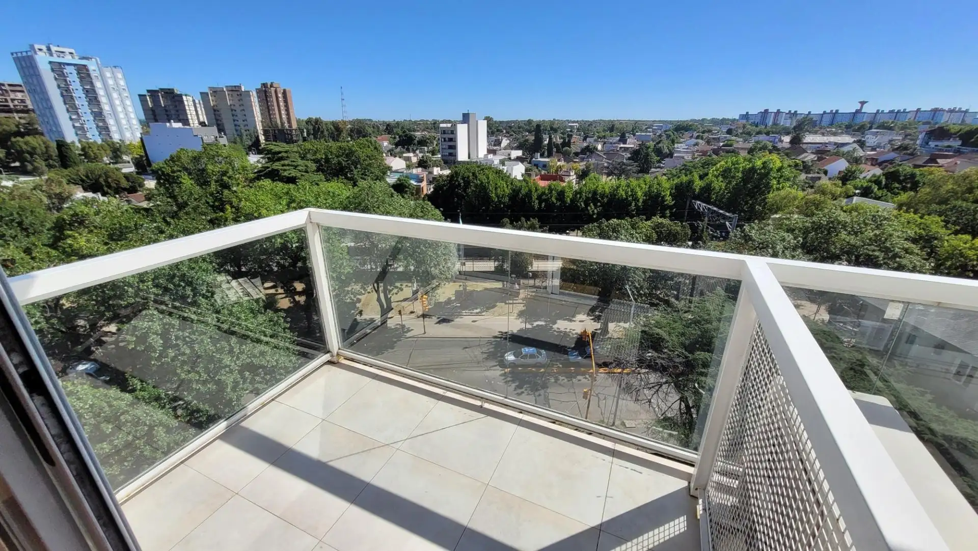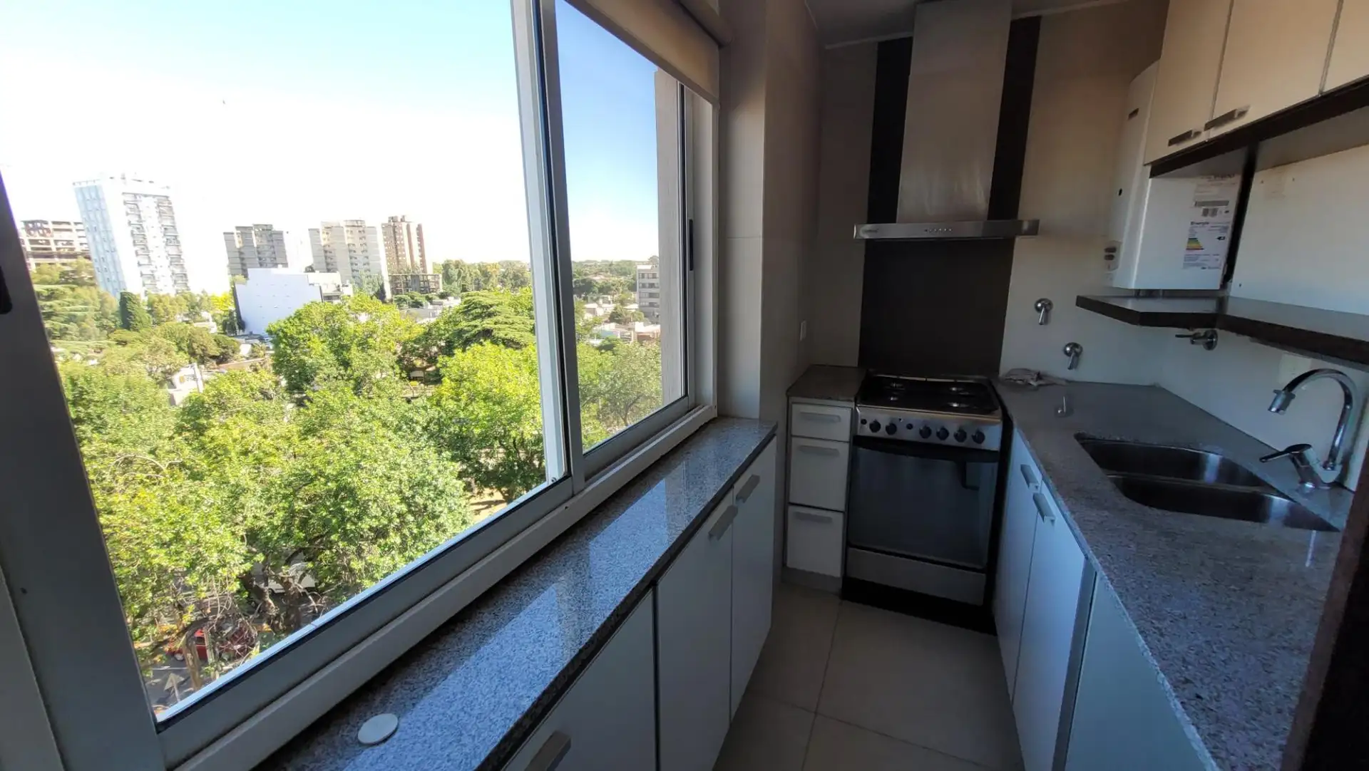 Three-room apartment with a living-dining room with porcelain stoneware floors and access to the first balcony. Separate kitchen with marble countertop, under-counter units and melamine wall cabinets, and an exhaust fan; there is no cooking appliance. First bedroom with floating floors, bed frame and built-in wardrobe, with access to the second balcony; second bedroom with floating floors and a built-in wardrobe. Full bathroom with ceramic tiles, bathtub and shower screen. The unit includes a pa