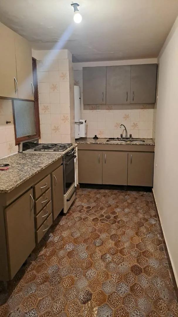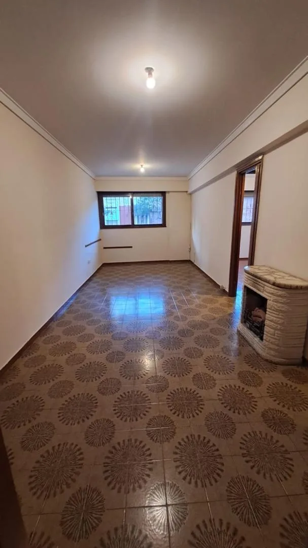 Three-room apartment on the ground floor, street-facing in Barracas. It has a living room and 2 bedrooms with built-in wardrobes, a separate laundry area with a sink, and a kitchen with fitted upper and lower cabinets, a hot-water heater, and a cooking appliance. The unit includes a small patio measuring 3.00 x 2.00 m and a fireplace that uses natural gas; ceramic floors are throughout. The listing notes building fees are not specified and the property is furnished only to the extent of the fitt