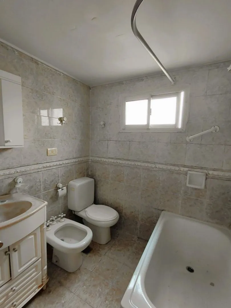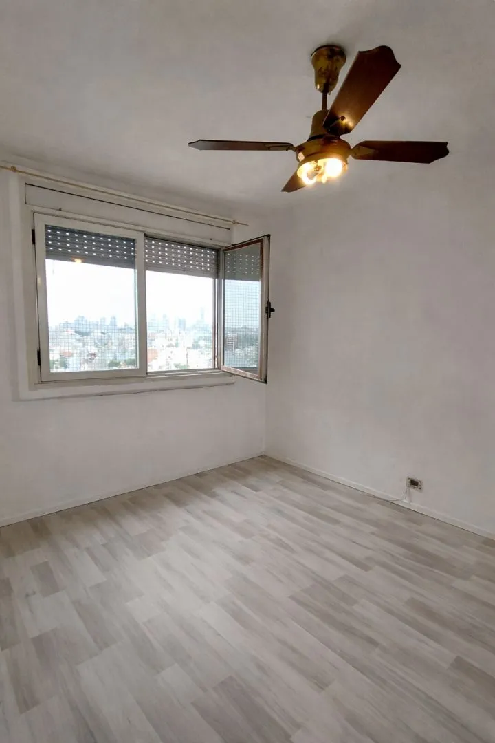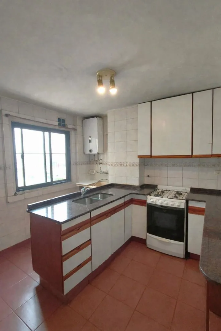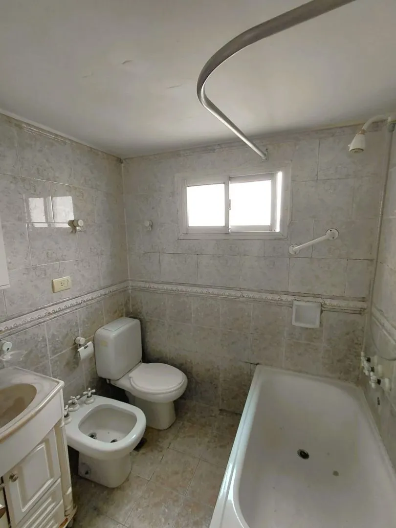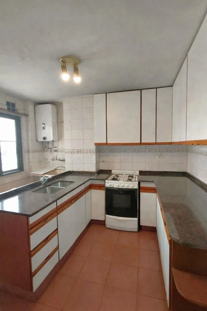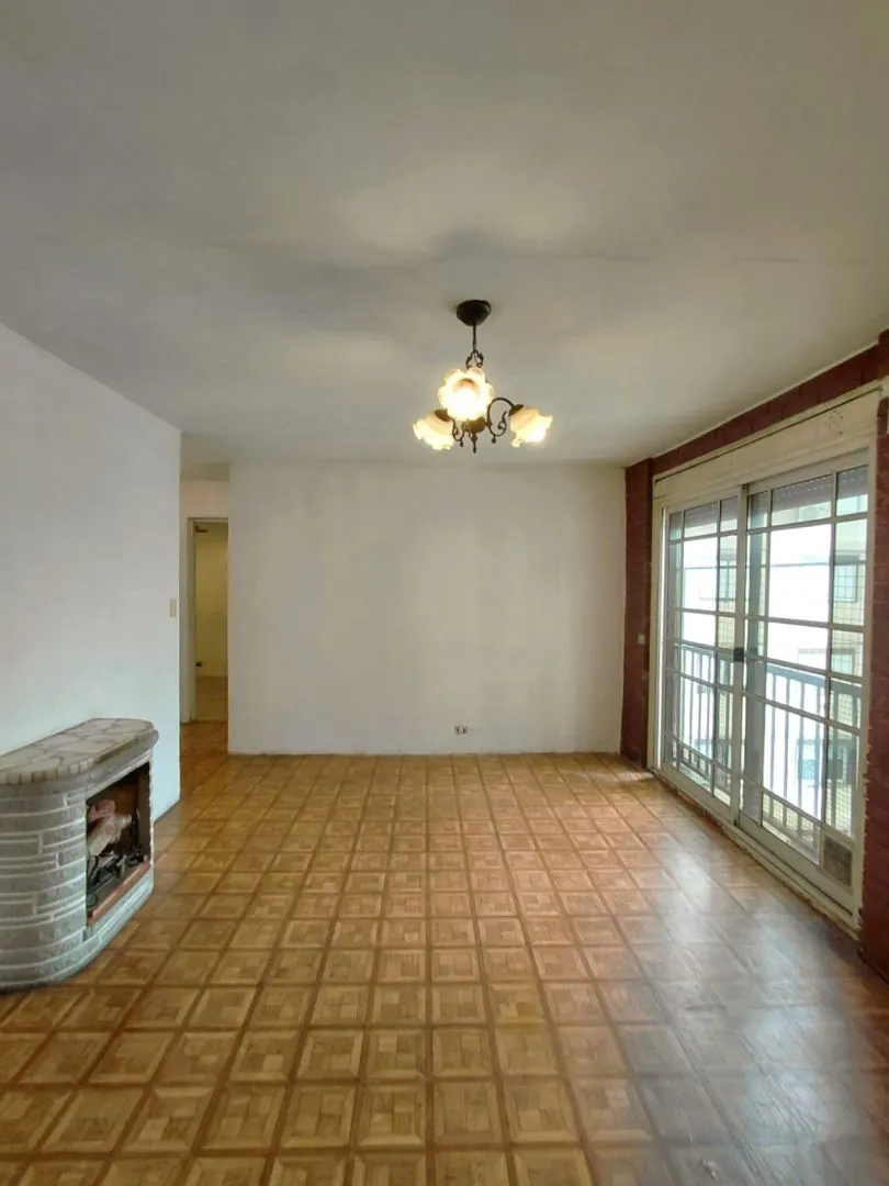 Apartment rental in Barracas, located on Av. Montes de Oca. Includes an entry hall, living-dining room with a fireplace, separate kitchen with an integrated laundry area, two bedrooms with built-in wardrobes, and a full bathroom. The listing describes the rooms as spacious, well ventilated and in good condition.