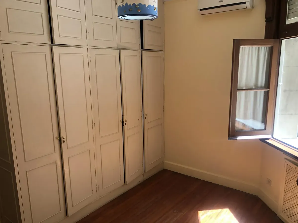 Apartment of 100 m² in a historic building on Av. Montes de Oca. It has 3 rooms with 2 bedrooms, one with a built-in wardrobe and air conditioning, plus a large living-dining room with air conditioning. Separate kitchen, maid’s room or office/dining area, a full bathroom and a toilet. Courtyard with connection for a washing machine. Rent is ARS 1,000,000 plus building fees (approximately ARS 435,000), ABL, AYSA, Metrogas and Edesur.