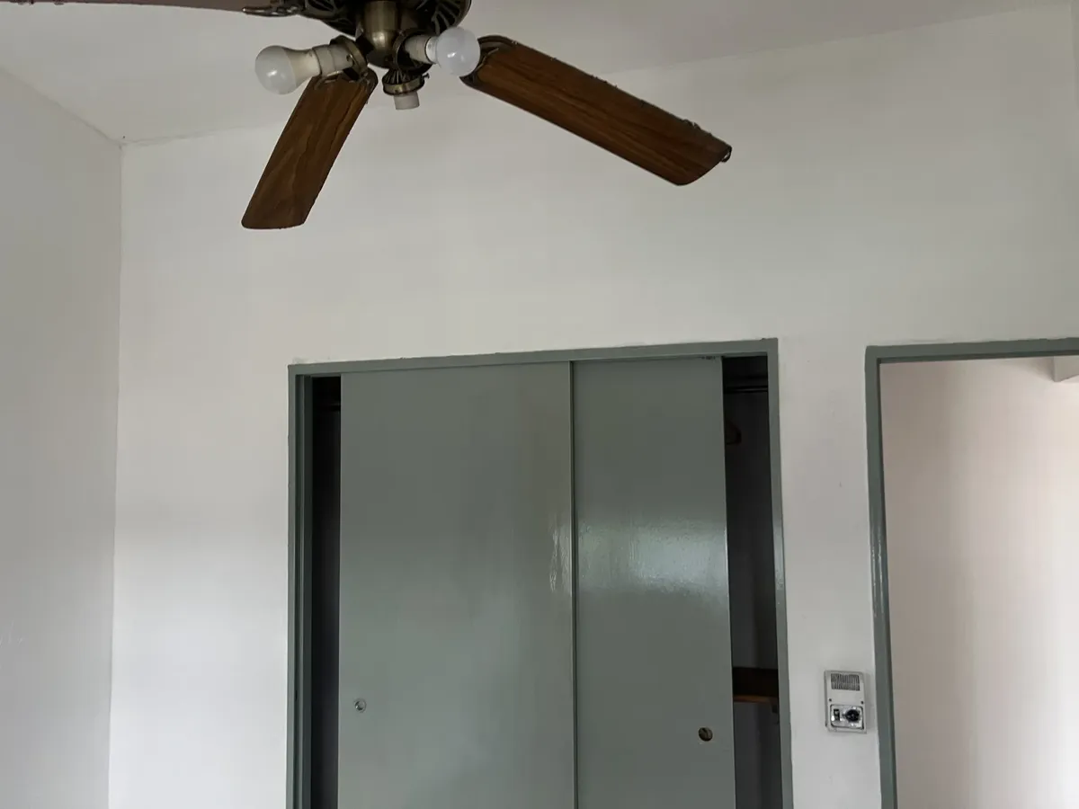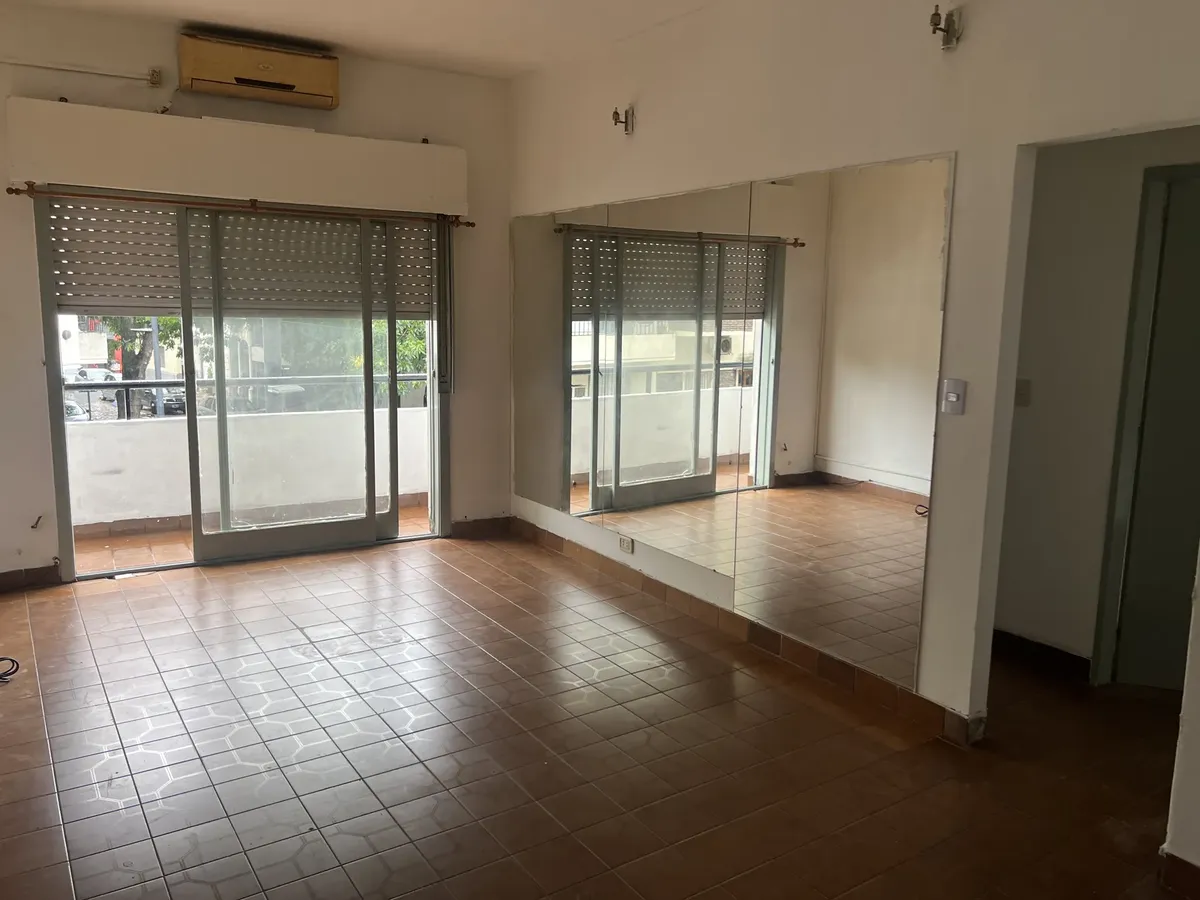 Two-bedroom apartment in Barracas with double balconies on the corner. Large living room with a window wall, air conditioning, and ceiling fans. Built-in wardrobes in both bedrooms. No building fees (sin expensas).