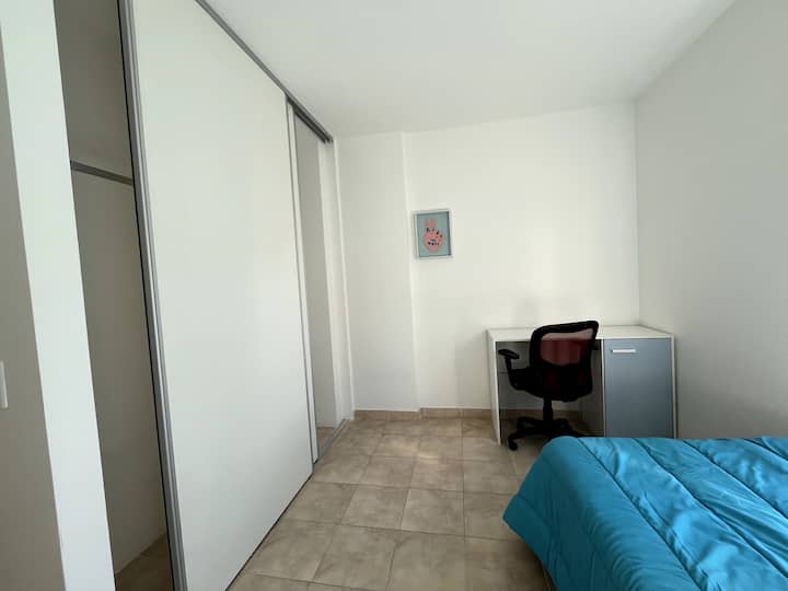 Three-room apartment in Barracas with 2 bedrooms. The listing describes a quiet area by a park with access to sports activities and a bicycle station. It is located behind the Huracán stadium, with bus lines 118, 59, and 37 and Subte H about 5 blocks away.